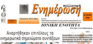 Συνάδελφοι, κυκλοφόρησε το νέο τεύχος της εφημερίδας μας “Συλλογική Ενημέρωση” Φύλλο 71 .