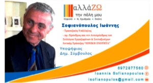 Στις εκλογές της Τοπικής Αυτοδιοίκησης στηρίζουμε τους υποψηφίους που προέρχονται από την Ιονική Οικογένεια – Ο συνάδελφος και Αντιπρόεδρος του Συλλόγου μας Ιωάννης Σοφιανόπουλος, υποψήφιος Δημοτικός Σύμβουλος στο Δήμο Κηφισιάς – Νέας Ερυθραίας – Εκάλης μαζί με τον υποψήφιο Δήμαρχο Γιώργο Σκορδίλη συνθέτουν ένα Δυναμικό ΙΟΝΙΚΟ Δίδυμο!