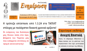 Συναδέλφισσες – Συνάδελφοι, Αύριο, Τετάρτη 10 Απριλίου 2024, ώρα 10:30, αναμένεται να ξεκινήσει στο Τριμελές[...]