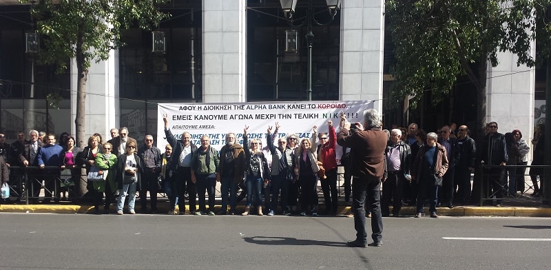 - Θα συγκαλέσουμε Συνέντευξη Τύπου για τη δημοσιοποίηση της πρωτοφανούς αυτής απόφασης της τράπεζας, για την καταγγελία των πρακτικών που χρησιμοποιεί και για να ενημερώσουμε τον ελληνικό λαό για όλα τα μείζονα θέματα που αφορούν την ανακεφαλαιοποιημένη AlphaBank και τη διοίκησή της