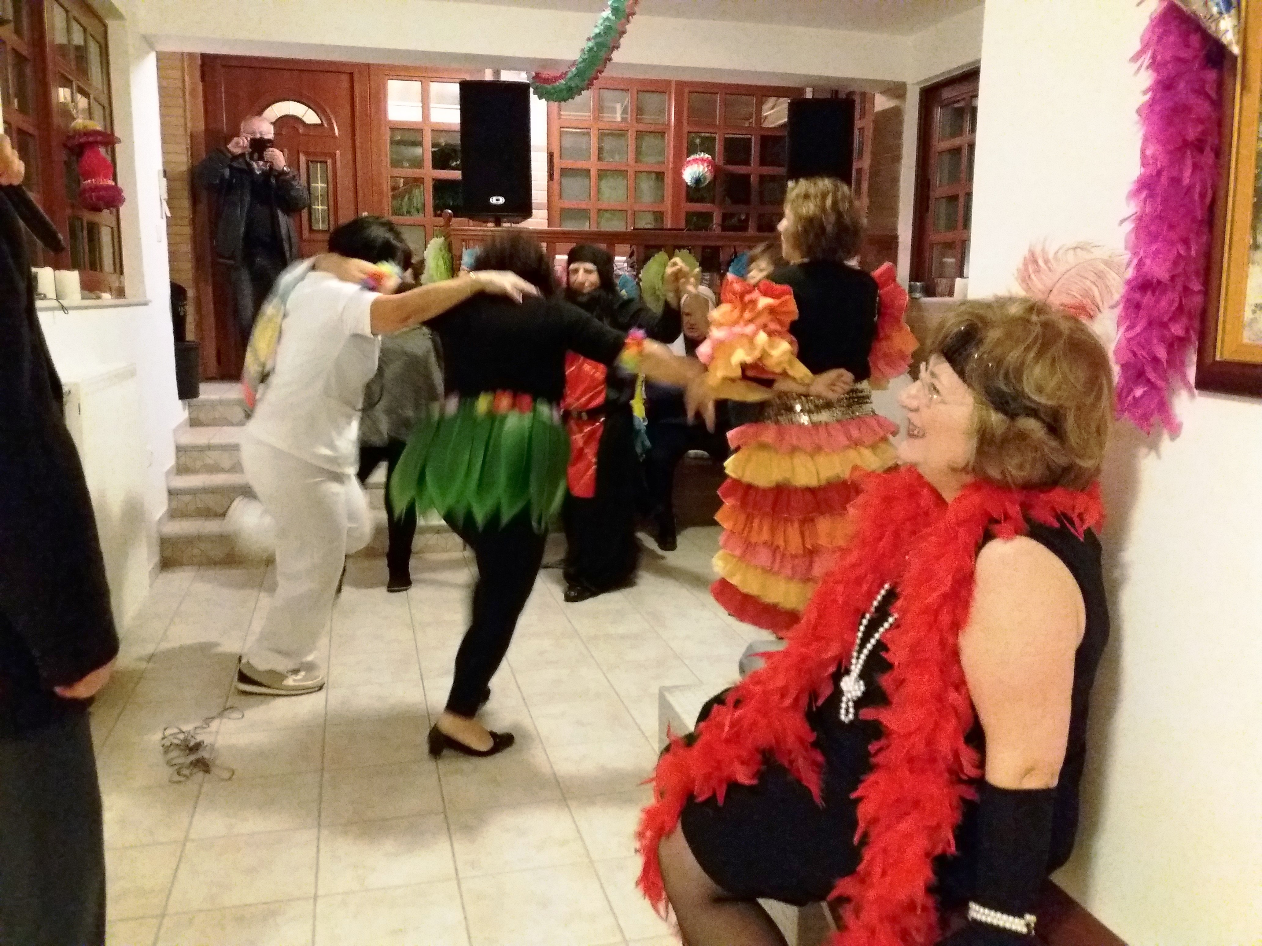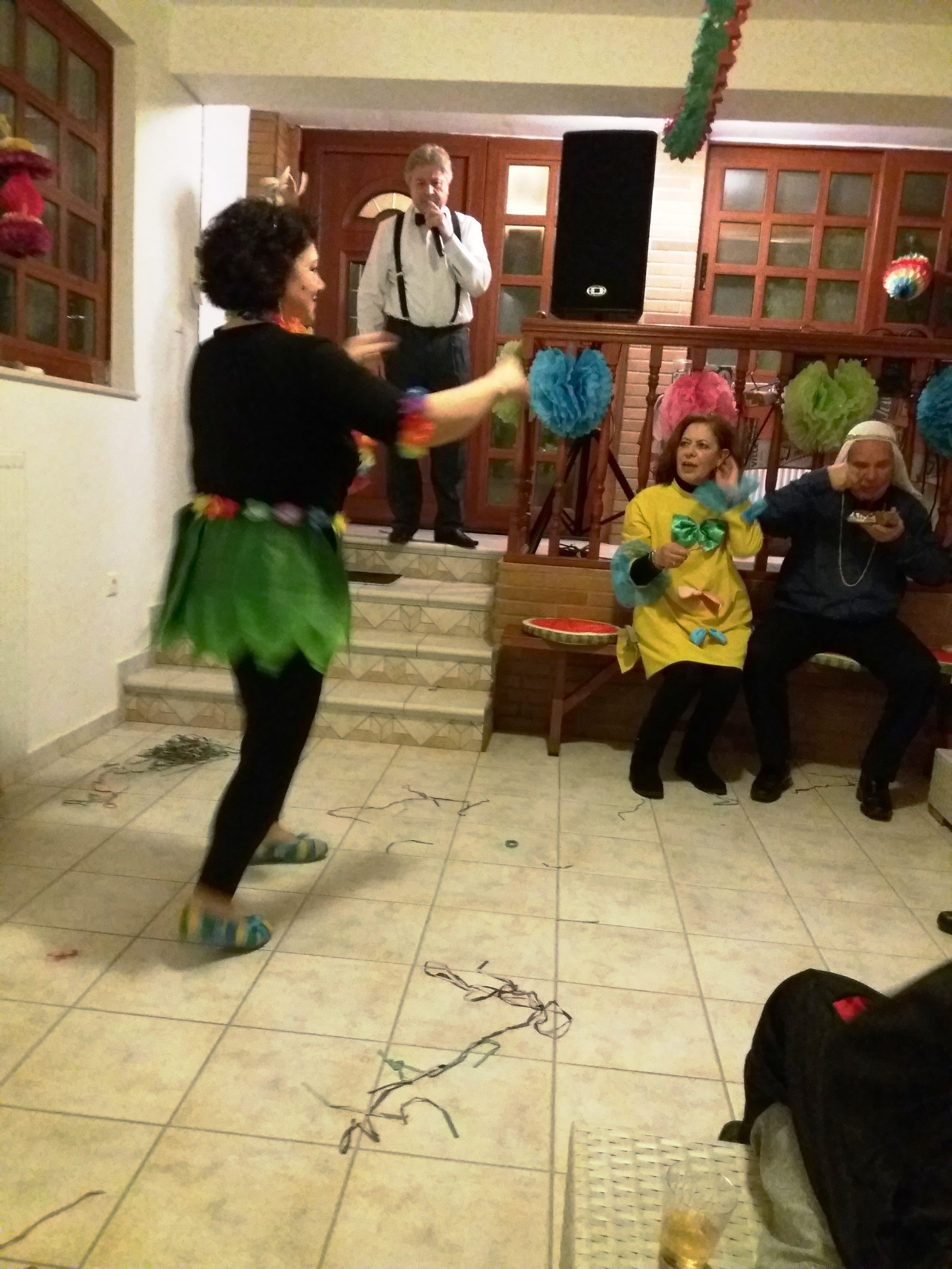 Βέβαια, δεν υπήρχε αντιπροσώπευση από τους συναδέλφους της Βόρειας Ελλάδας, που για λόγους απόστασης δεν μπόρεσαν να παραβρεθούν. Το γλέντι στη βίλα της συναδέλφου, ήταν μία προετοιμασία των συναδέλφων για την “αναμέτρηση” μασκαράδων, αύριο Παρασκευή 16/2 στο Κορδελιό στην Ιονική βραδιά στο Κέντρο “Βλαχάκια” και για την εκδρομή που θα ακολουθήσει στην ΠΓΔΜ.