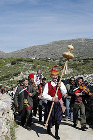 Η Αποκριά λοιπόν, που σημαίνει αποχή από το κρέας, είναι μια γιορτή προς το τέλος του χειμώνα. Παλιότερα για τους κατοίκους των χωριών ήταν μια χαρούμενη ανάπαυλα στη μονότονη, χειμωνιάτικη αγροτική και κτηνοτροφική ζωή. Και τούτο γιατί σήμαινε ατέλειωτο γλέντι, πολυφαγία, μασκάρεμα, αστεία, αθυροστομία και γενικά κέφι και σάτιρα. Όλα αυτά κορυφώνονται την τελευταία Κυριακή, την Τυρινή όπως λέγεται, και σε πολλά μέρη την Καθαρά Δευτέρα. Χαρακτηριστικό είναι το παρακάτω εύθυμο τραγουδάκι: « Τ΄ ακούτε τι παράγγειλε η Καθαρή Δευτέρα. Πέθανε ο κρέος πέθανε, ψυχορραγεί ο τύρος, σηκώνει ο πράσος την ουρά και ο κρέμμυδος τα γένια». Ή «τ΄ ακούτε τι παράγγειλε η Καθαρή Δευτέρα, τ΄ ακούσατε μαρ΄ ούλες; για λάχανα και βρούβες».