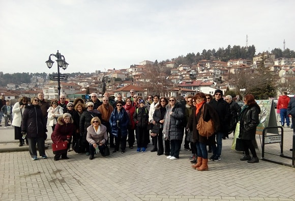 Αφού περιηγηθήκαμε στην πόλη, επιστρέψαμε στην Οχρίδα. Εντυπωσιαστήκαμε από τους 2 μεγάλους αρχαίους ναούς, την Αγία Σοφία και την Παναγία την Περίβλεπτο και ξεναγηθήκαμε σε όλα τα σημαντικά αξιοθέατα, ανάμεσά τους το αρχαίο θέατρο και το κάστρο της πόλης. Περιπλανηθήκαμε στα στενά πλακόστρωτα δρομάκια με τα γραφικά σπίτια με τα μπαλκονάκια και ανεβήκαμε στα πιο ψηλά σημεία της πόλης που είναι πανοραμικά χτισμένη στις όχθες, για να απολαύσουμε τη θέα της Λίμνης. Πολλοί μάλιστα κάθισαν σε κάποιες από τις πολλές ταβέρνες που βρίσκονταν στα σοκάκια και απόλαυσαν φρέσκα ψάρια από τη Λίμνη και τις γαστρονομικές επιλογές των γειτόνων.