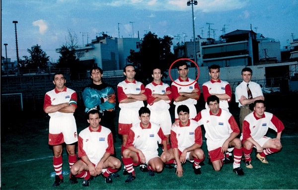 Ο συνάδελφος είχε γεννηθεί στην Αυστραλία, αλλά ήρθε στην Ελλάδα σε πολύ μικρή ηλικία. Εκτός από τη δραστηριότητά του στην τράπεζα, η μεγάλη του αγάπη υπήρξε το ποδόσφαιρο και μάλιστα το ταλέντο του τού επέτρεψε να αγωνιστεί σε σειρά ομάδων (Βρασιές Αγίου Ανδρέα, Παναρκαδικός, Παναργειακός, ΑΕΚ Τρίπολης, Αμφιάλη, Παναιγιάλειος, Ασπρόπυργος, Αίγινα, Φωστήρας), ενώ παράλληλα είχε συνδράμει και την ομάδα της Ιονικής να κάνει πρωταθλητισμό και να κερδίσει πολλούς τίτλους στις παντραπεζικές διοργανώσεις.