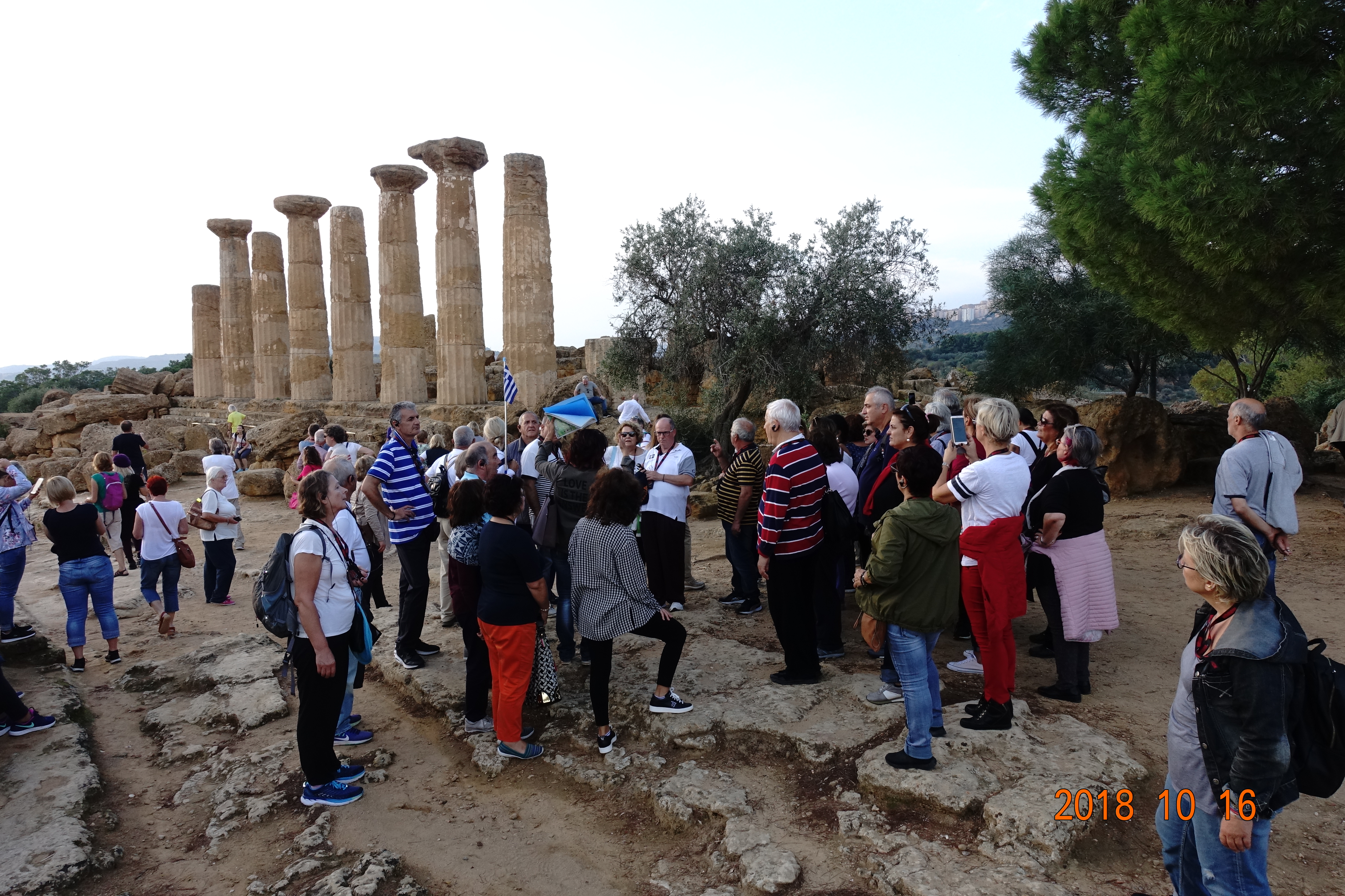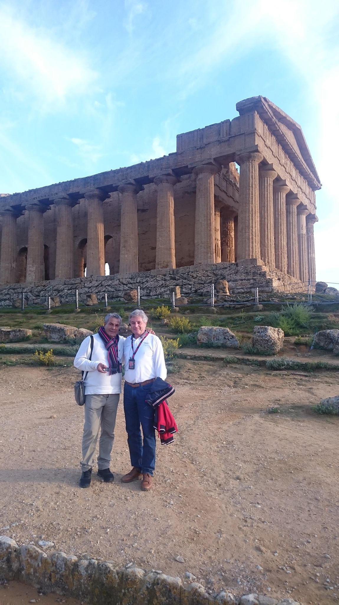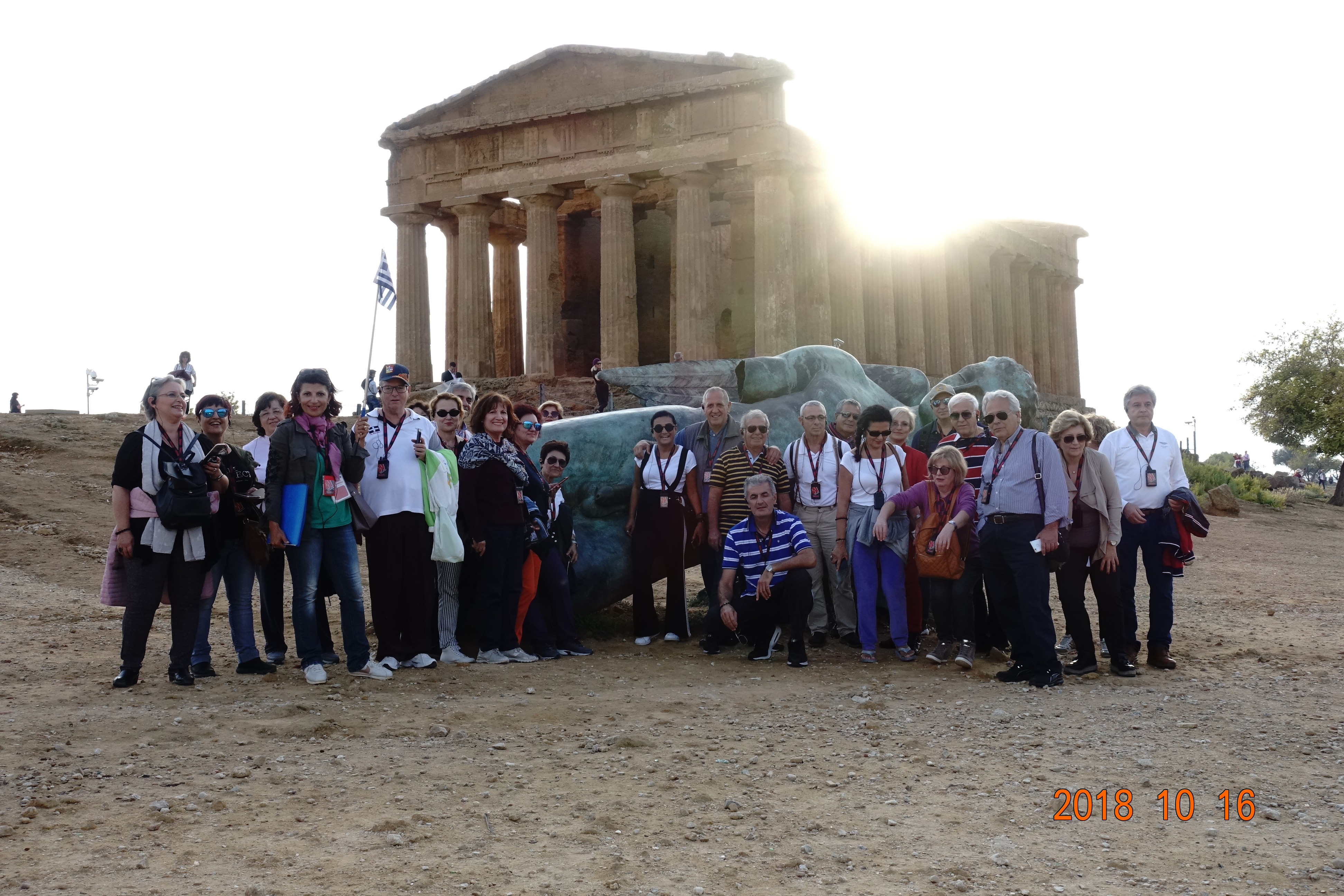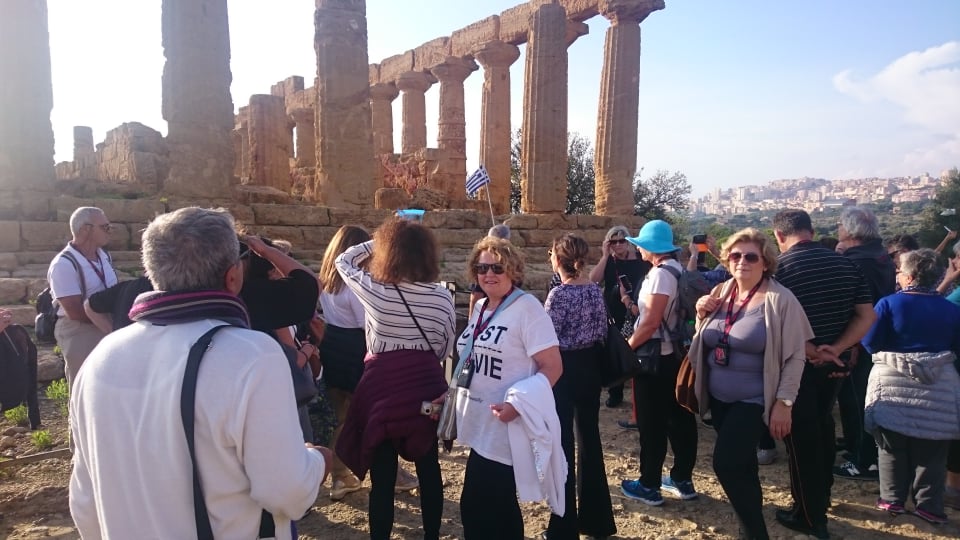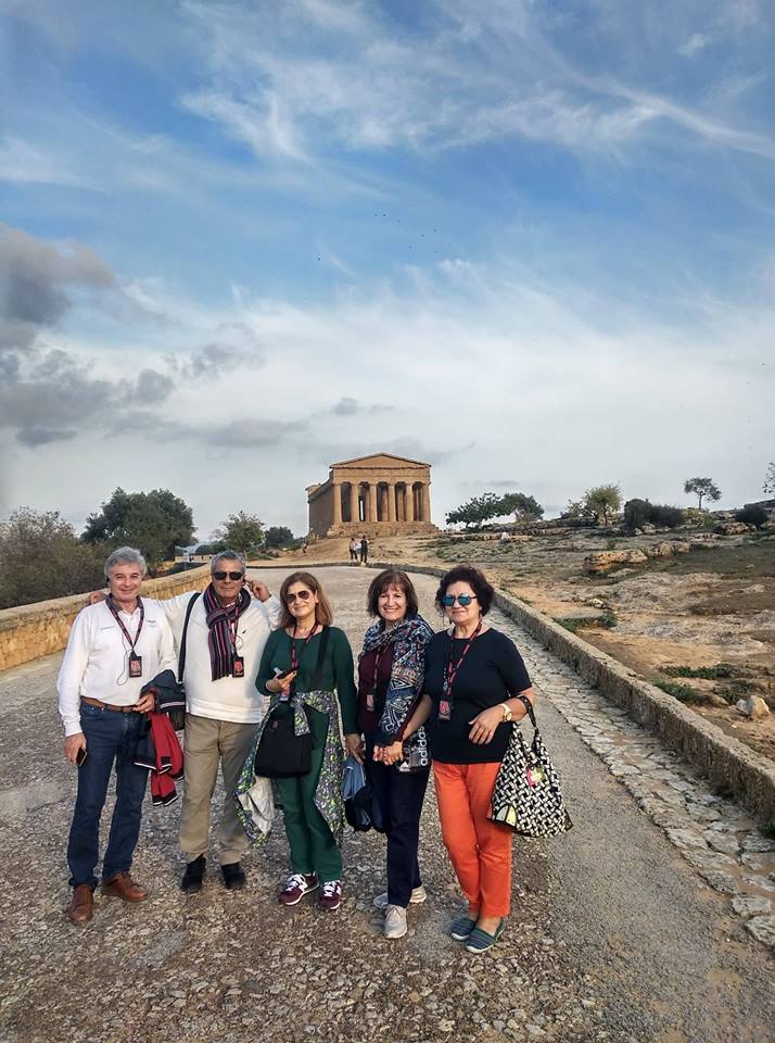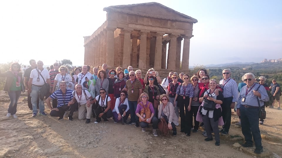 Εν συνεχεία αναχωρήσαμε για τον Ακράγαντα, το σημερινό Αγκριτζέντο. Η κοιλάδα των Ναών, όπως ονομάζεται, δικαιολόγησε πλήρως το προσωνύμιό της, αφού μας άφησε άναυδους με το εκπληκτικό θέαμα που αντικρίσαμε. Σε μία τεράστια έκταση όπου κάποτε ήταν χτισμένη η αρχαία ελληνική πόλη του αρχαίου Ακράγαντα – μίας από τις πλουσιότερες και επιφανέστερες αποικίες της Μεγάλης Ελλάδας, που μάλιστα αριθμούσε τουλάχιστον 200.000 κατοίκους – σήμερα υπάρχουν τα ερείπια των αρχαίων ελληνικών ναών. Ειδικά για τη συγκεκριμένη επίσκεψή μας μάς συνόδευσε η διαπιστευμένη και εξειδικευμένη στην ιστορία του Ακράγαντα Ελληνίδα ξεναγός που διαμένει μόνιμα εκεί η κ. Παπουτσάκη, η οποία μας εξήγησε ότι σε αυτήν την έκταση υπήρχαν τουλάχιστον 10 ναοί, εκ των οποίων σώζονται σε πολύ κατάσταση τα ερείπια των 5 που έχουν χαρακτηριστεί ως Μνημείο Παγκόσμιας Ιστορικής Κληρονομιάς. Πραγματικά, η παρουσία μας σε αυτόν το μοναδικό χώρο αποτυπώθηκε στο μυαλό όλων, αφού περπατώντας ανάμεσα στα ερείπια των αρχαίων ναών, διακατέχεσαι από δέος και συγκίνηση για την παρουσία του ελληνικού στοιχείου.