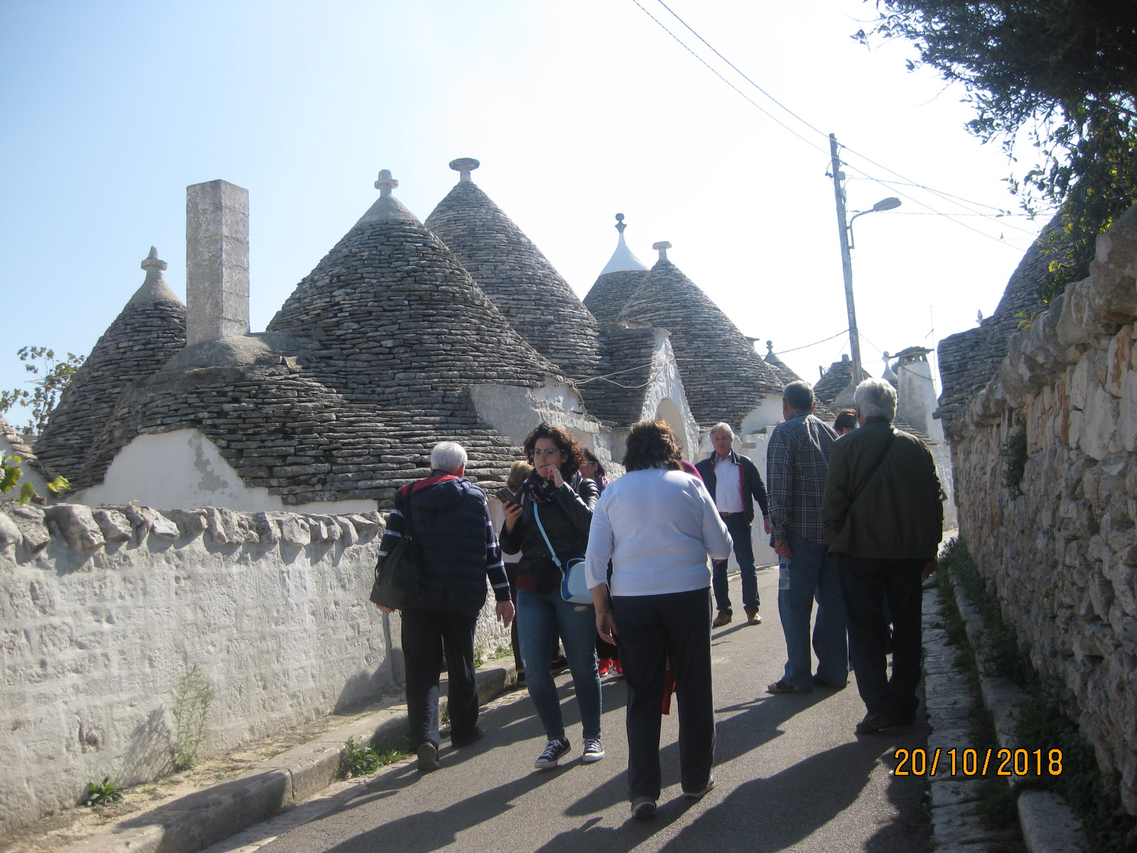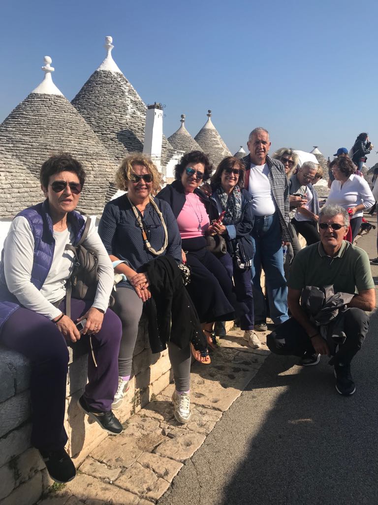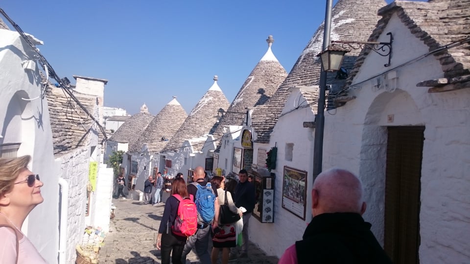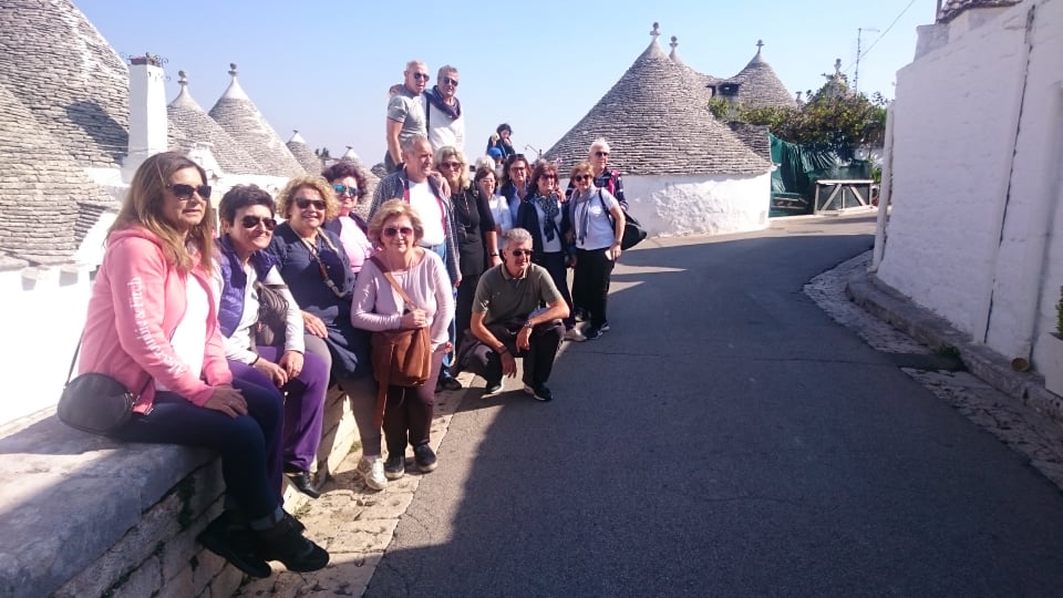 Προτελευταίος μας σταθμός ήταν το μοναδικό Αλμπερομπέλο, μία κωμόπολη βγαλμένη από παραμύθι, επίσης χαρακτηρισμένη ως Μνημείο Παγκόσμιας Κληρονομίας της UNESCO. Το Αλμπερομπέλο είναι φημισμένο για τα λευκά σπίτια με σκεπές σε σχήμα τρούλου, όπου η ιστορία του και οι ρίζες του χάνονται στα βάθη των αιώνων, καθιστώντας το τοπίο μαγευτικό. Τα σπίτια μάλιστα είναι κτισμένα κολλητά το ένα στο άλλο, που όπως μας εξήγησαν αποτελούσε έναν πανούργο τρόπο των εργατών της φτωχικής αυτής περιοχής προκειμένου να μην πληρώνουν φόρους, καθώς όταν ερχόταν η περίοδος καταγραφής των σπιτιών ήταν κτισμένα κατά τέτοιο τρόπο (ξηρολιθιά) ώστε να είναι εύκολο να τα γκρεμίσουν και να τα επανασυναρμολογήσουν όταν περνούσε ο έλεγχος! Αυτά τα παραμυθένια σπιτάκια μας ενθουσίασαν και για μία ακόμα φορά στην εκδρομή μας νιώσαμε σαν παιδιά χαμένα σε μία παραμυθούπολη!