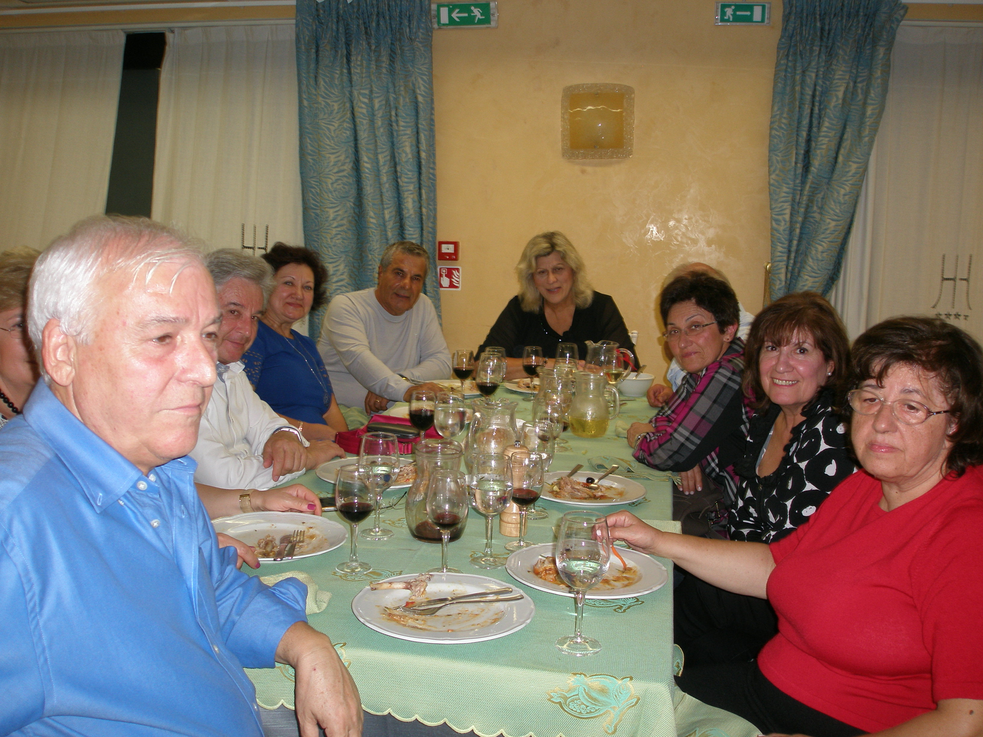 Το βράδυ επιστρέψαμε στο ξενοδοχείο μας, όχι όμως για ξεκούραση, αφού στο roof garden ήταν προγραμματισμένο γλέντι που πραγματοποιούμε σε κάθε εκδρομή μας και αποτελεί πλέον μία αναπόσπαστη παράδοση των ταξιδιωτικών εμπειριών μας. Οι φωνές των συναδέλφων Μανώλη Αντωνιάδη και Θανάση Σβάρνα από τη Θεσσαλονίκη και του Πλούταρχου πυροδότησαν το τραγούδι και το χορό μέχρι αργά το βράδυ. Πρωταγωνίστρια στο γλέντι και κυρίως στο χορό… μέχρι τελικής πτώσεως – όπως πάντα – η συναδέλφισσά μας Αναστασία Αναστασίου, η επονομαζόμενη ΑΑ!