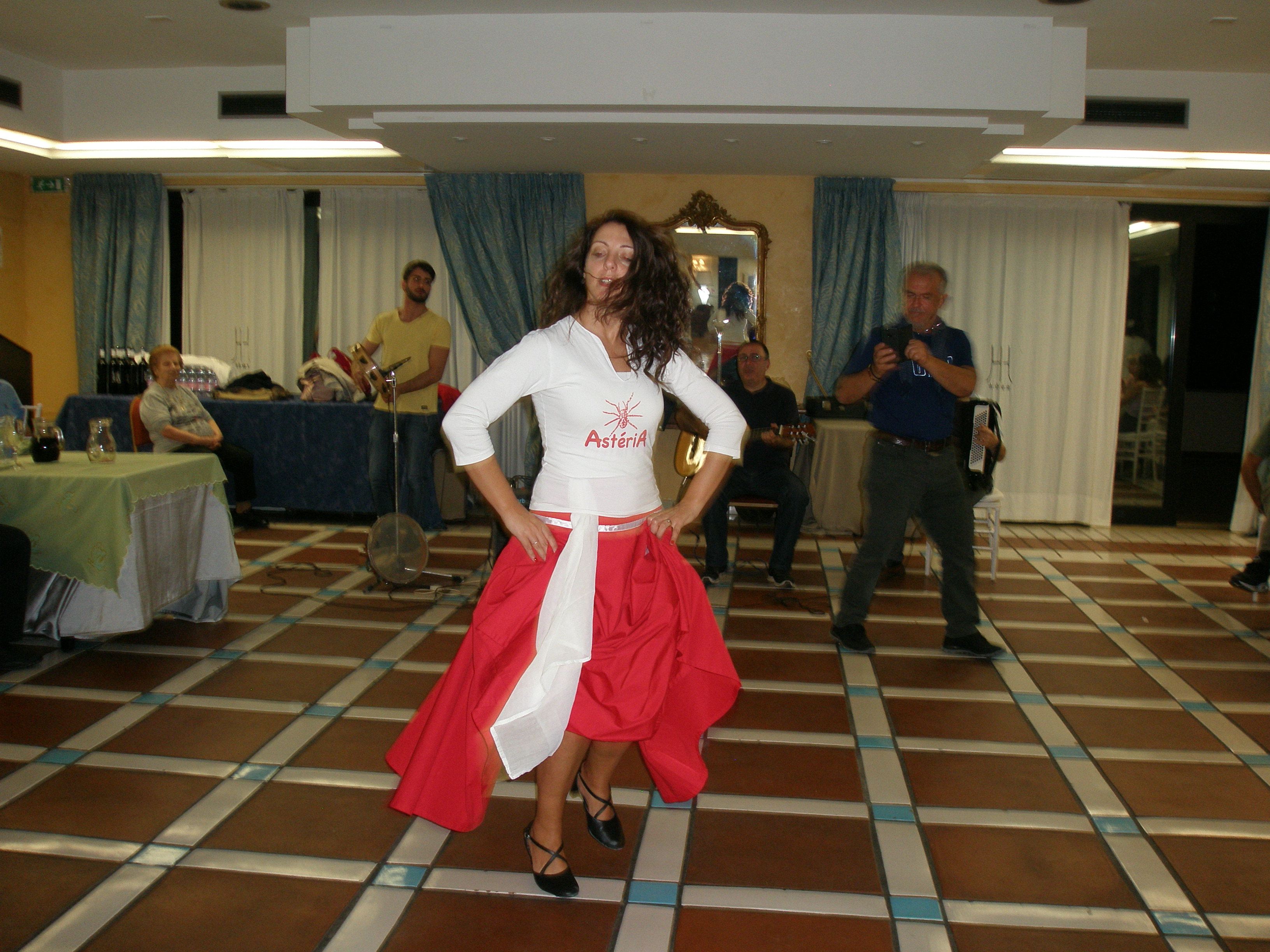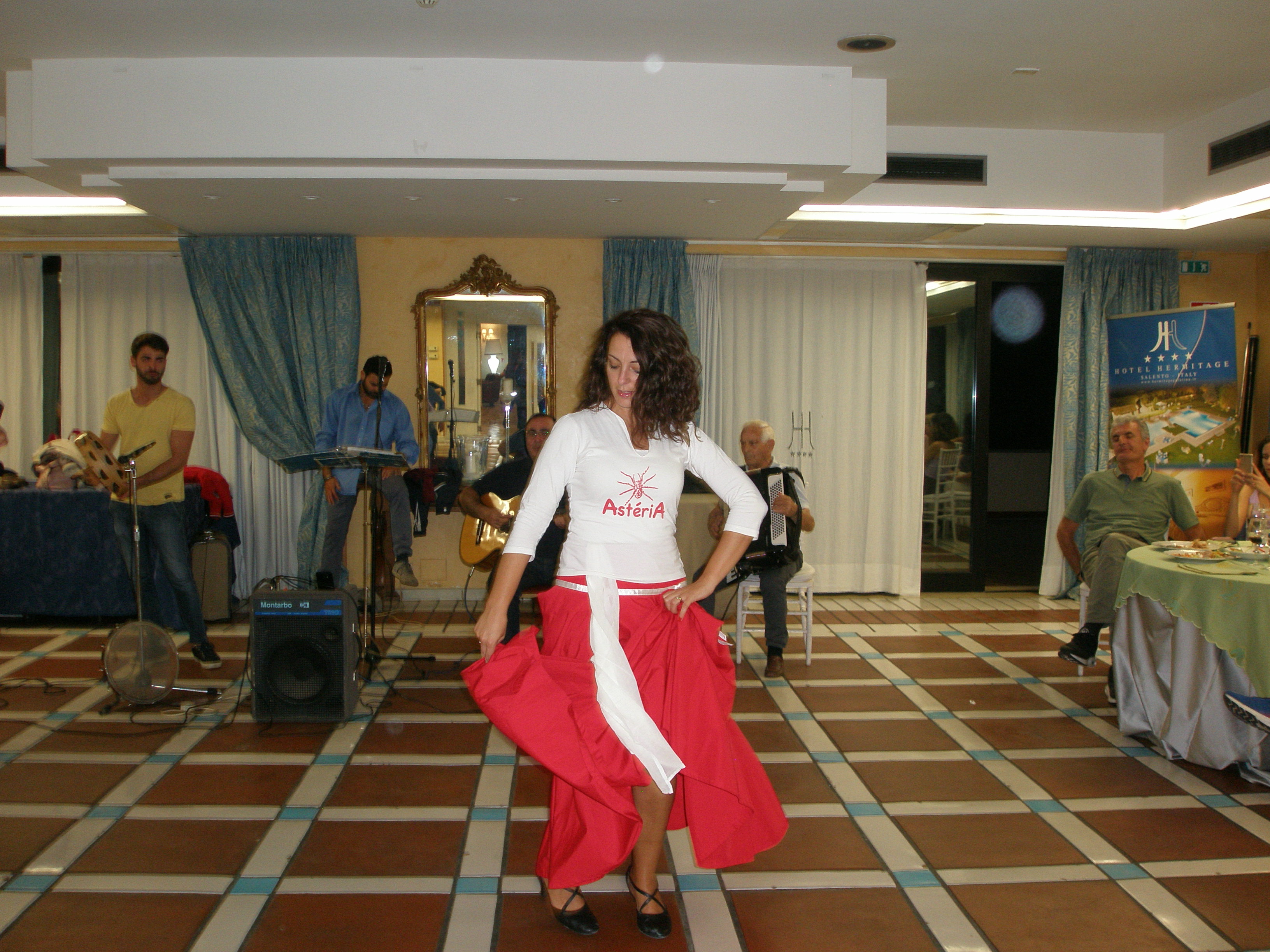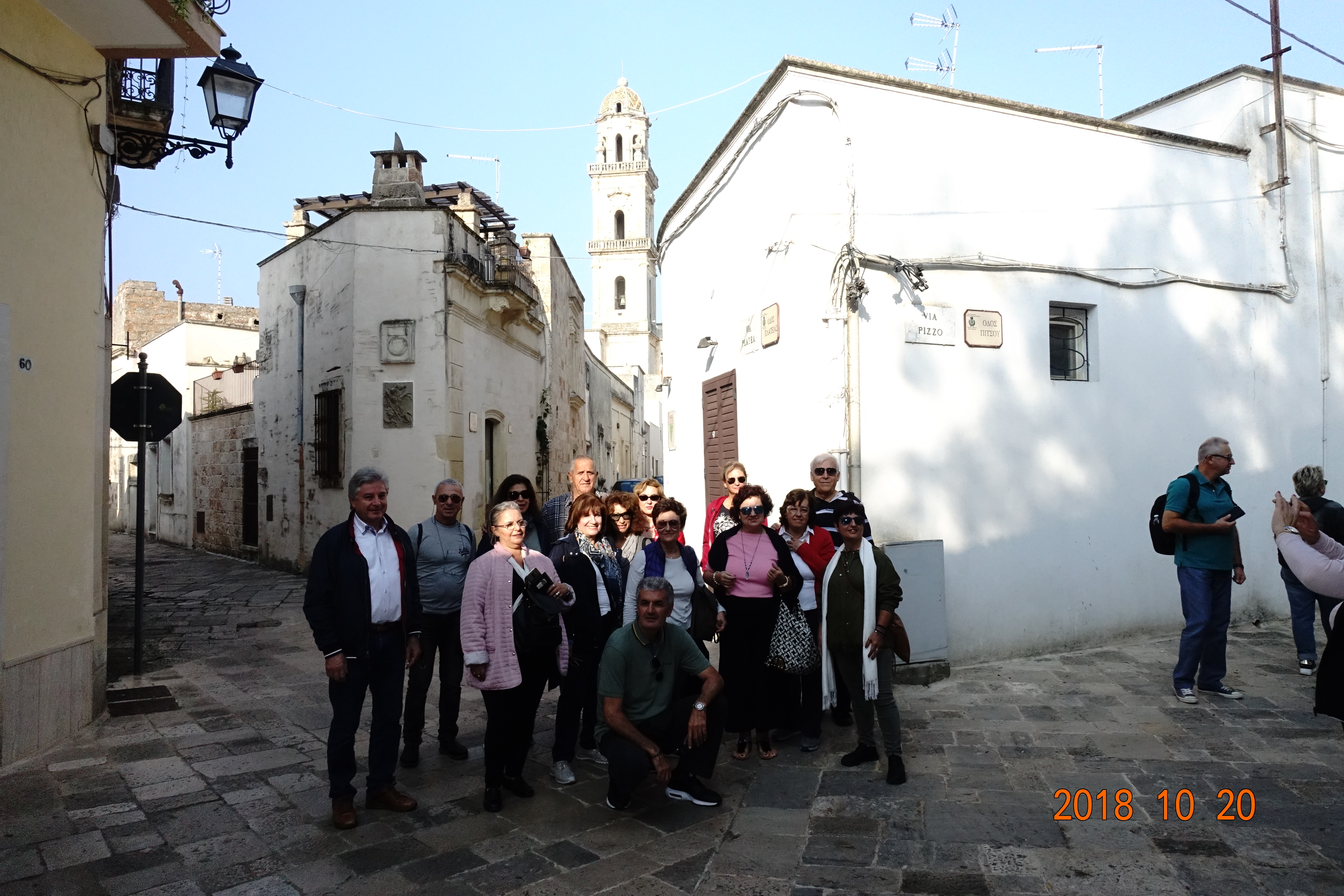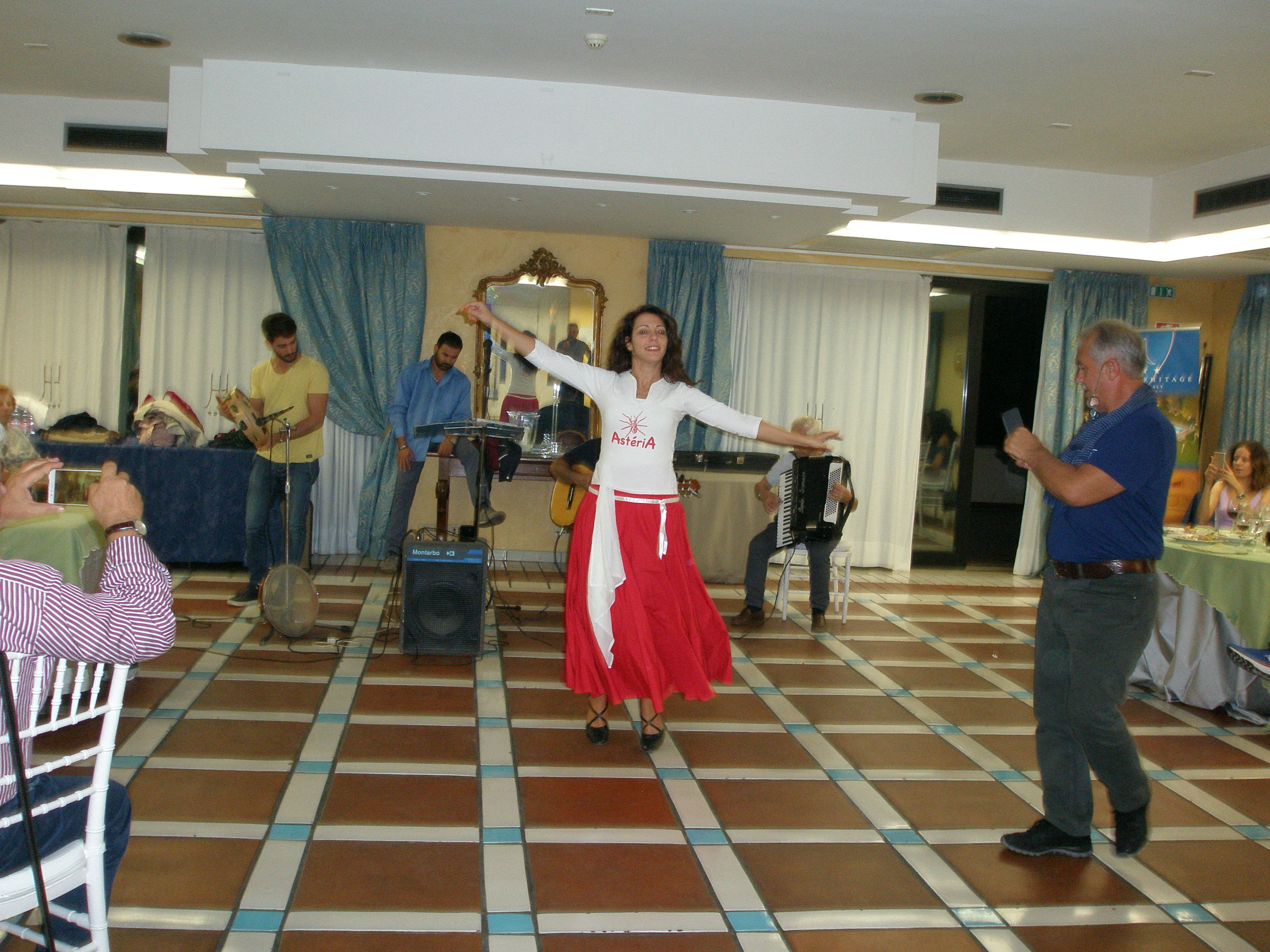 Και επειδή αυτό το μοναδικό στο είδος του «μουσείο» άξιζε να το θαυμάσουμε φωτισμένο, μείναμε στο Λέτσε μέχρι το βράδυ. Μετά, αποχωρήσαμε για το προάστιο της Γκαλατίνας, όπου μας περίμενε το δείπνο μας συνοδεία της Ταραντέλας (από τον Τάραντα), της παραδοσιακής μουσικής και του χορού των ελληνόφωνων χωριών της Κάτω Ιταλίας. Μία πολύ ενδιαφέρουσα πληροφορία είναι ότι σύμφωνα με την παράδοση η Ταραντέλα ουσιαστικά αναπαριστά την έκσταση που προκαλούσε σε κάποιον η συγκεκριμένη μουσική σε όποιον είχε τσιμπηθεί από την αράχνη ταραντούλα, προκειμένου να χορέψει μέχρι λιποθυμίας, αλλά στο τέλος να ιαθεί! Η τελευταία μας νύχτα διανυκτέρευση στην Ιταλία, στα ελληνόφωνα χωριά, εξελίχθηκε σε μία υπέροχη βραδιά, καθώς το γευστικό φαγητό και η εξαιρετική, παραδοσιακή μουσική μας άφησαν όλους με μια γλυκιά ανάμνηση από την παρουσία μας στη γείτονα χώρα.