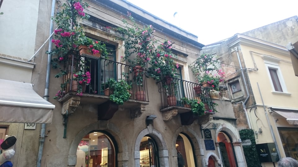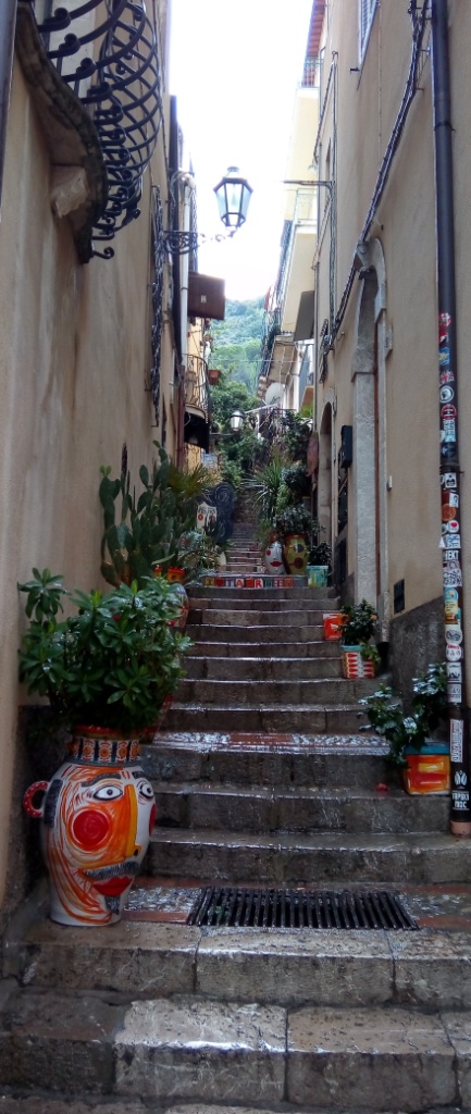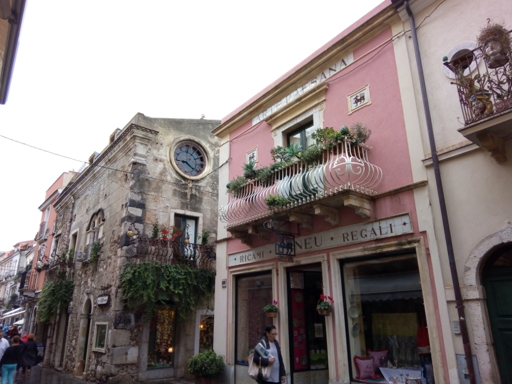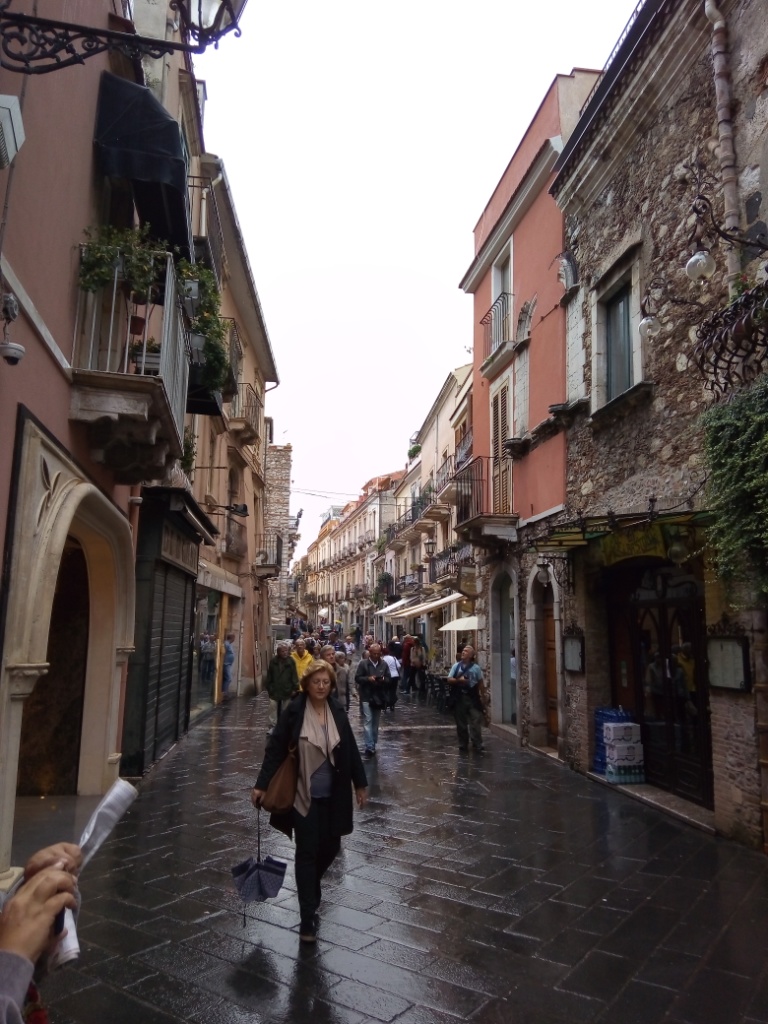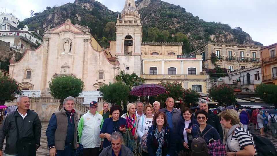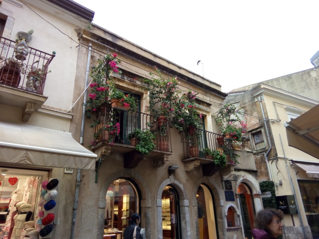 Αφού πήραμε το πλούσιο πρωινό μας στον μπουφέ του ξενοδοχείου ξεκινήσαμε για την ιστορική Ταορμίνα, μία πόλη σκαρφαλωμένη κυριολεκτικά στην πλαγιά του βουνού με πανέμορφη θέα τόσο προς την Αίτνα όσο και προς τη θάλασσα. Περιηγηθήκαμε και απολαύσαμε το ιστορικό της κέντρο με τα απαράμιλλης ομορφιάς πλακόστρωτα δρομάκια και τα πανέμορφης αρχιτεκτονικής διατηρημένα σπίτια με τα μικρά μπαλκονάκια διανθισμένα με λουλούδια και γλάστρες.