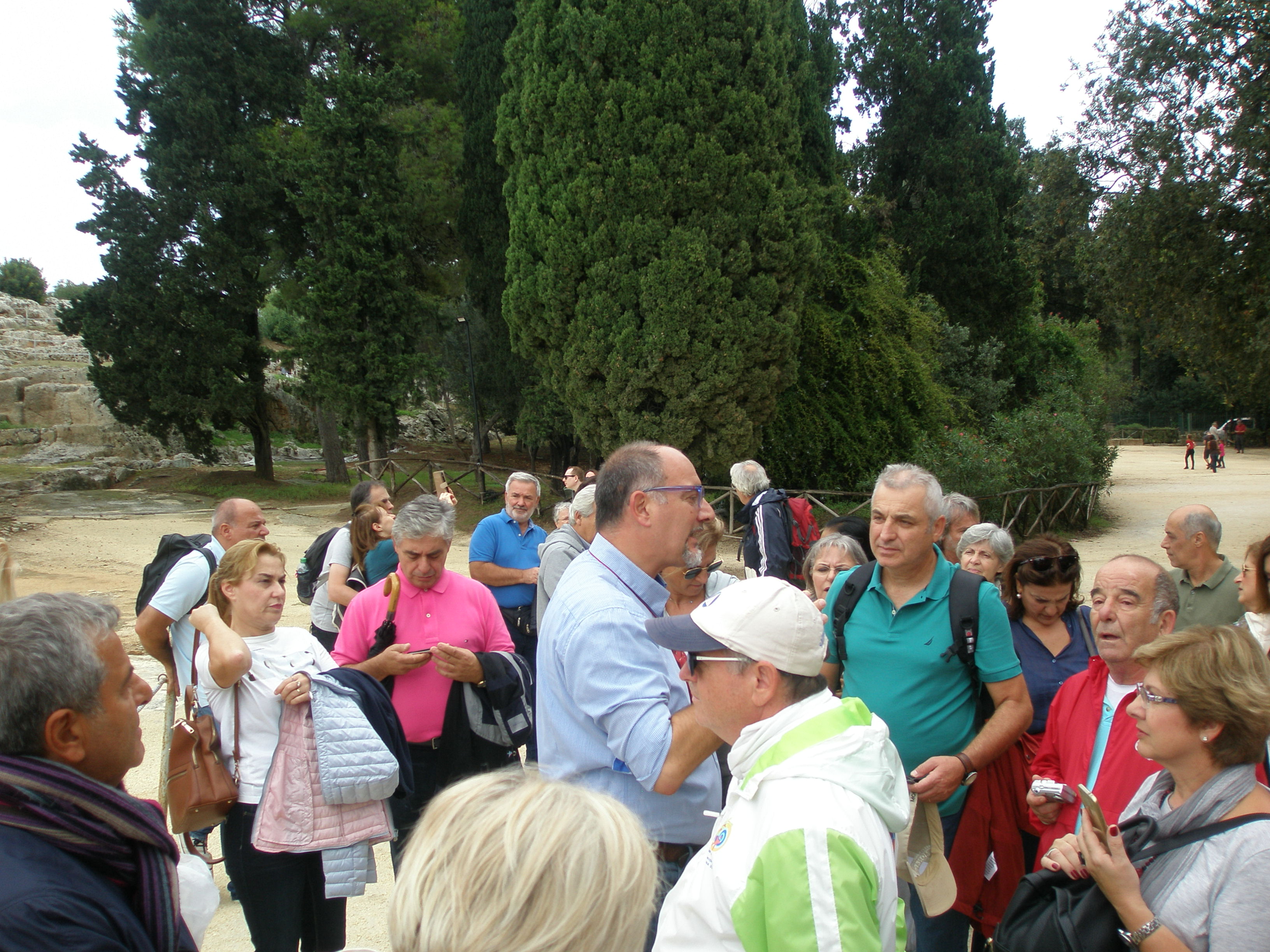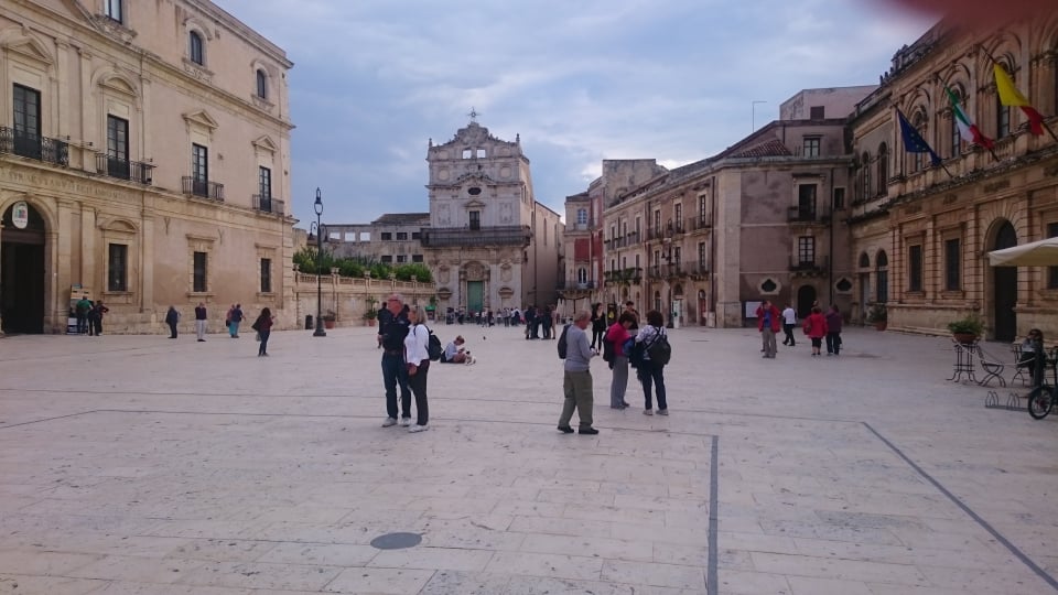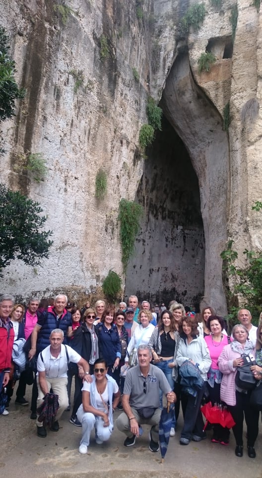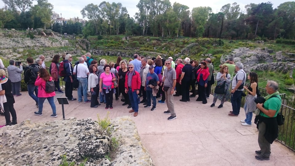 Μαζί μας όλες τις μέρες που περάσαμε στη Σικελία ήταν και ο Matteo Miano, διδάσκων καθηγητής πανεπιστημίου στην ελληνική φιλολογία και μεγάλος φιλέλληνας που γνωρίζει άριστα την ελληνική γλώσσα και ιστορία, αλλά και κάθε λεπτομέρεια για τον ελληνισμό της Κάτω Ιταλίας, δηλαδή της Μεγάλης Ελλάδας. Αφού ήπιαμε τον καφέ μας σε ύψος περίπου 2.000 μέτρων κατεβήκαμε με προορισμό το επίκεντρο της Μεγάλης Ελλάδας, την αρχαία ελληνική αποικία των Συρακουσών. Αφού επισκεφθήκαμε τα εντυπωσιακά ερείπια του κέντρου της αρχαίας πόλης και θαυμάσαμε το αρχαίο θέατρο, το αυτί του Διονύσου, τη ρωμαϊκή αρένα και τα ερείπια του μεγάλου αρχαιοελληνικού ναού, πάντα με την υπέροχη ξενάγηση του Ματέο, εν συνεχεία επισκεφθήκαμε το ιστορικό κέντρο της πόλης, την Ορτυγία (που έχει πάρει το όνομά της από τα πολλά ορτύκια που βρήκαν εκεί οι αρχαίοι Έλληνες), όπου μας μάγεψαν τα όμορφα σοκάκια και τα γραφικά κτίρια της πόλης (σε πολλούς γνωστά και από την ταινία «Μαλένα» που έχει γυριστεί εκεί).