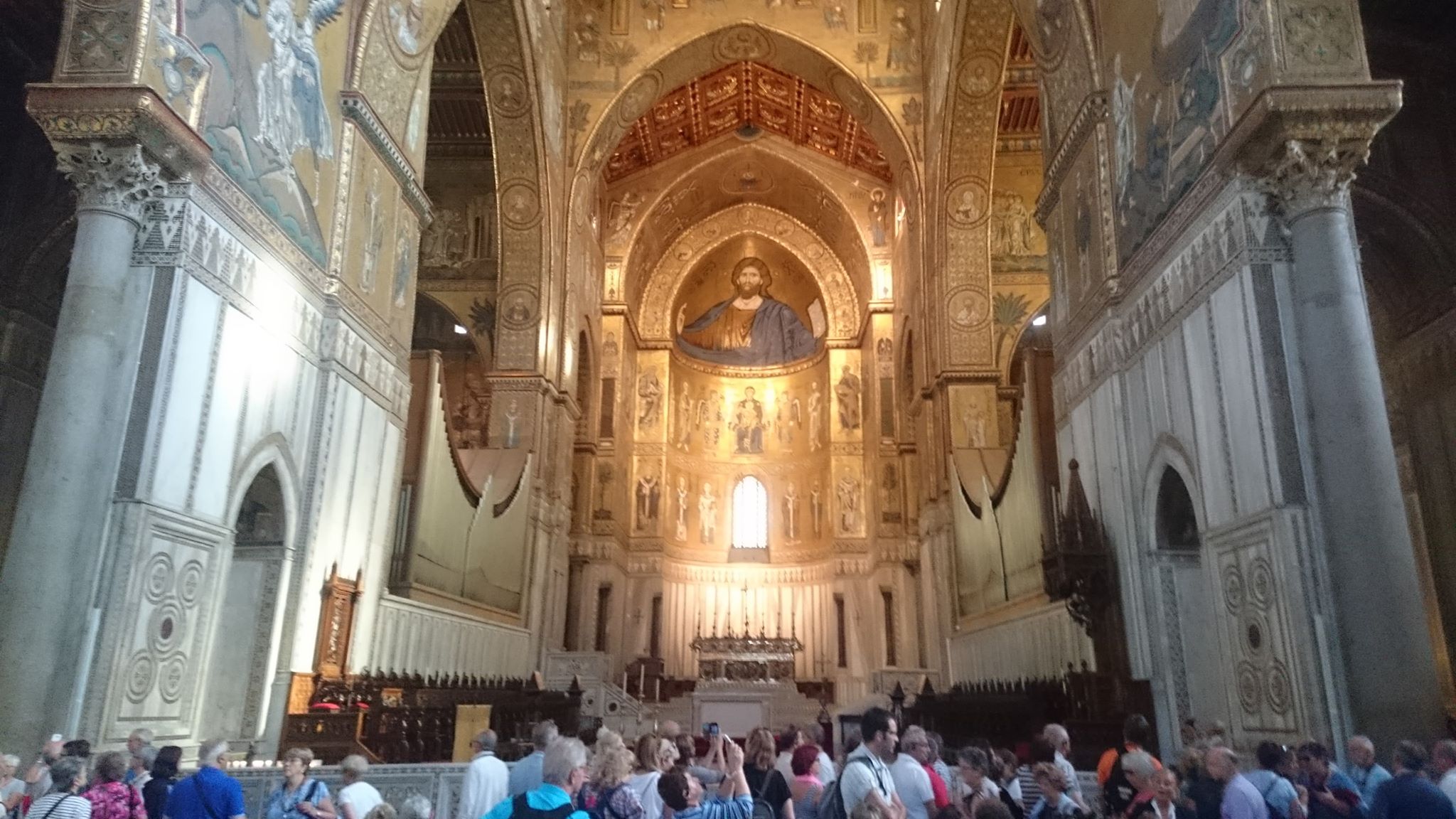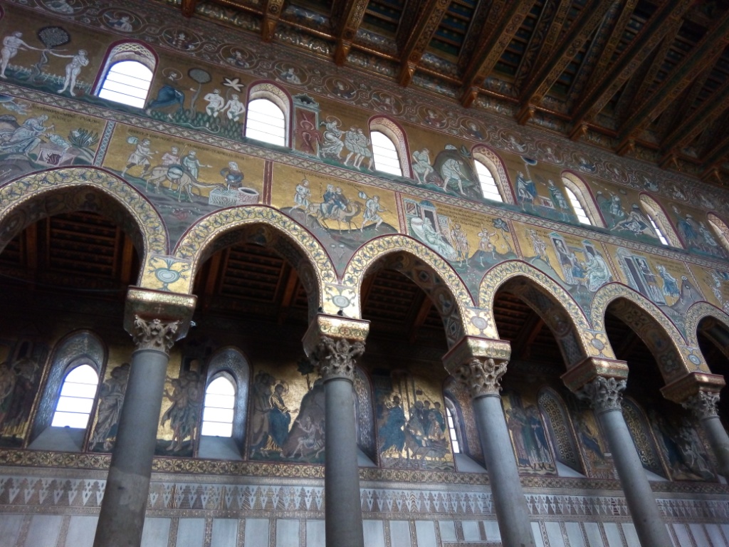 Η μέρα μας ξεκίνησε με την επίσκεψή μας στο Μονρεάλε, με κυριότερο αξιοθέατο τον καθεδρικό ναό με την υπέροχη ψηφιδωτή τοιχογραφία που επενδύει το ναό. Η διάσταση και το μεγαλείο της ομορφιάς της τοιχογραφίας δεν μπορεί να περιγραφεί με λέξεις και ίσως με τις φωτογραφίες που παρατίθενται στη συνέχεια να μπορέσετε να πάρετε μία μικρή γεύση…