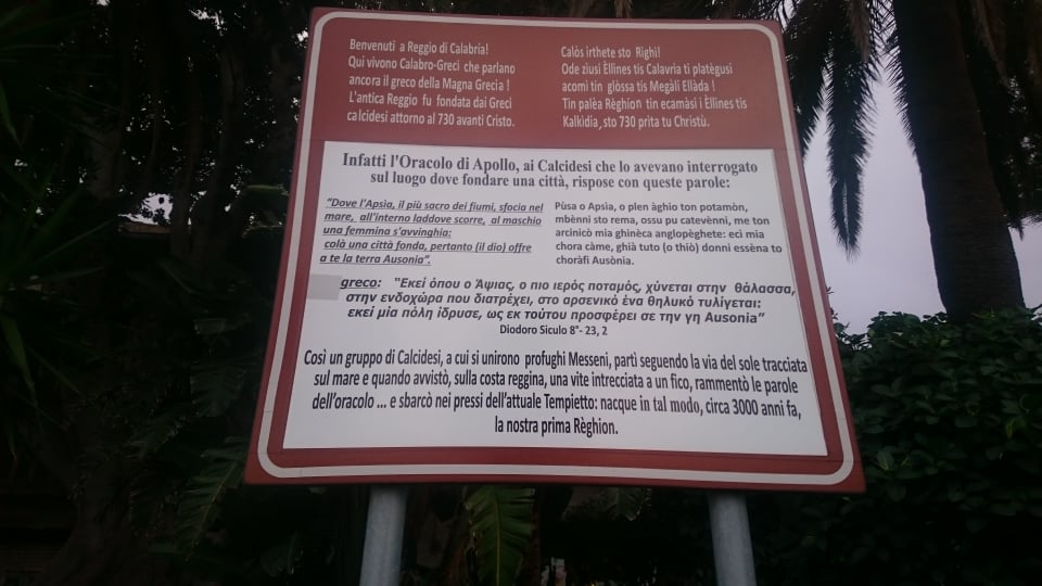Στη συνέχεια αναχωρήσαμε για τη Μεσίνα καθώς είχε έρθει η ώρα να αφήσουμε πίσω μας τη Σικελία για να περάσουμε στη Νότια Ιταλία, με πρώτο σταθμό το αρχοντικό Ρήγιο (σύγχρονο Ρέτζιο ντι Καλάμπρια). Η όμορφη πόλη με την εξαιρετική ρυμοτομία μας υποδέχτηκε με τα πανέμορφα νεοκλασικά αρχοντικά της κτίρια, ωστόσο αυτό που μας έκανε ιδιαίτερη εντύπωση ήταν το Εθνικό Μουσείο της Μεγάλης Ελλάδας, αφού… σφύζει από ελληνικό πολιτισμό! Εκτός των ελληνικών επιγραφών και ευρημάτων, μεταξύ των κορυφαίων εκθεμάτων θαυμάσαμε τους ξακουστούς πολεμιστές του Ριάτσε, δύο μοναδικά έργα αρχαίας ελληνικής τέχνης μπρούντζινα αγάλματα, εφάμιλλα του Ηνίοχου των Δελφών που ο νεαρός πολεμιστής αποδίδεται είτε στον ίδιο τον Φειδία είτε σε μαθητή της σχολής του, στα οποία οι λεπτομέρειες του σώματος απεικονίζονται με κάθε λεπτομέρεια στους μυς, τις φλέβες, και όλα τα χαρακτηριστικά της ανθρώπινης ανατομίας, αφήνοντάς μας πραγματικά άναυδους.
