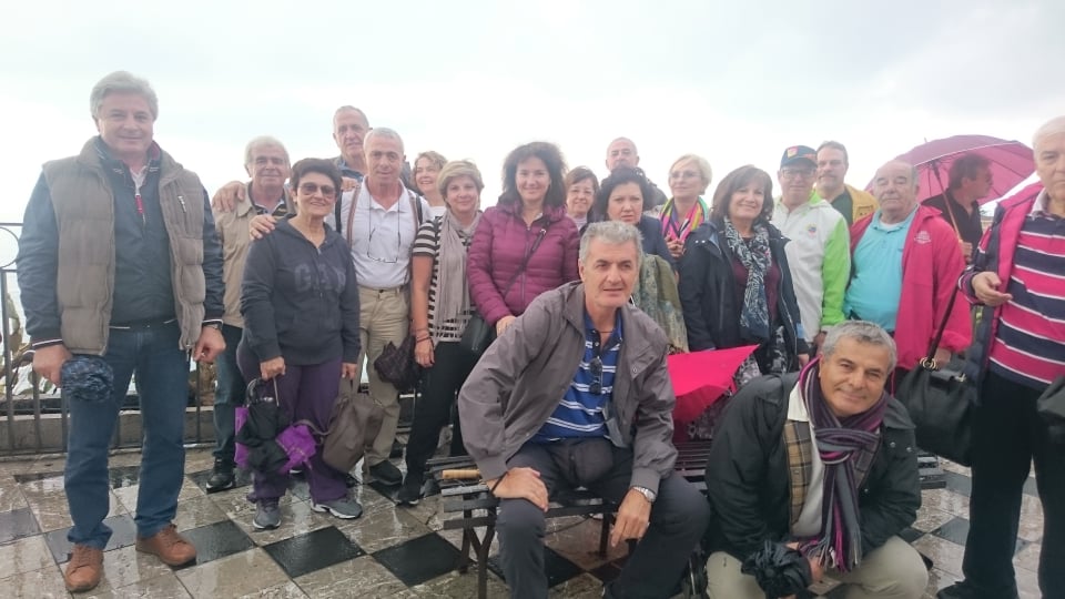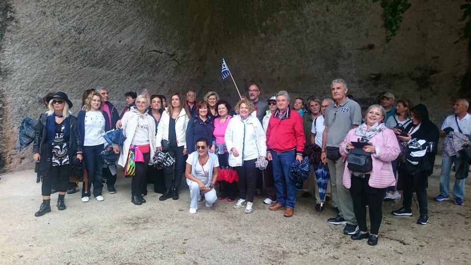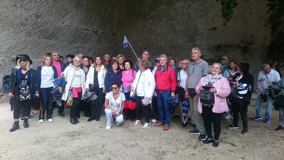 Η εκκίνηση έγινε όπως πάντα στην αφετηρία όλων των εκδρομικών μας δραστηριοτήτων, κάτω από τα γραφεία του Συλλόγου μας στην πλατεία Κοτζιά με πολύ κέφι και διάθεση. Μας καλωσόρισε ο αρχηγός της εκδρομής μας, Παναγιώτης Κοκκινίδης, καθηγητής γαλλικής φιλολογίας και άριστος γνώστης της ιστορίας και της αρχαιολογίας, ο οποίος μας συνόδευσε όλες τις μέρες της εκδρομής, δίνοντας λύσεις σε όσα προβλήματα μας παρουσιάστηκαν και τον ευχαριστούμε ιδιαιτέρως για την παρουσία και την υποστήριξή του. Η διαδρομή μέχρι την Πάτρα είχε τις απαραίτητες ενδιάμεσες στάσεις για ξεκούραση, αλλά και για την επιβίβαση και άλλων συναδέλφων, πάντα συνοδεία πειραγμάτων, ανεκδότων, «ηχηρής» διάθεσης και των εκπληκτικών ερμηνειών του συνάδελφου Πλούταρχου Κούσουλα. Στο Κιάτο, ο συνάδελφός μας Αναστάσιος Γεώργας με τη σύζυγό του ήρθαν εφοδιασμένοι με τελάρα με σταφύλι παραγωγής τους που μας δρόσιζαν καθ’ όλη τη διάρκεια της εκδρομής και τον ευχαριστούμε!