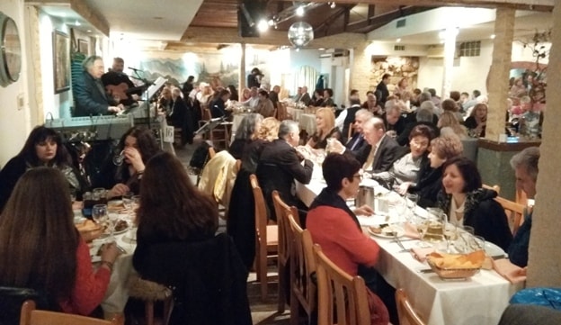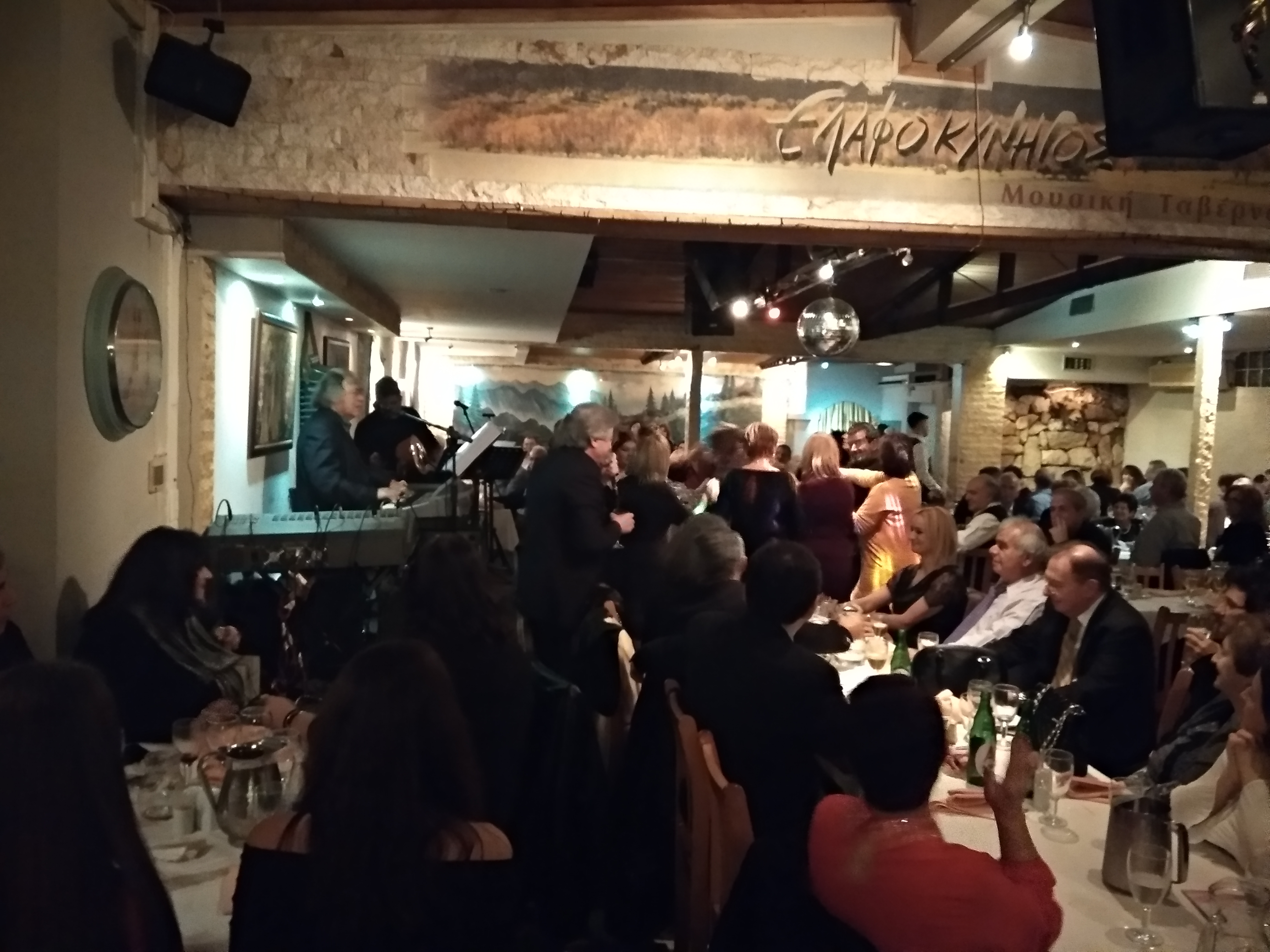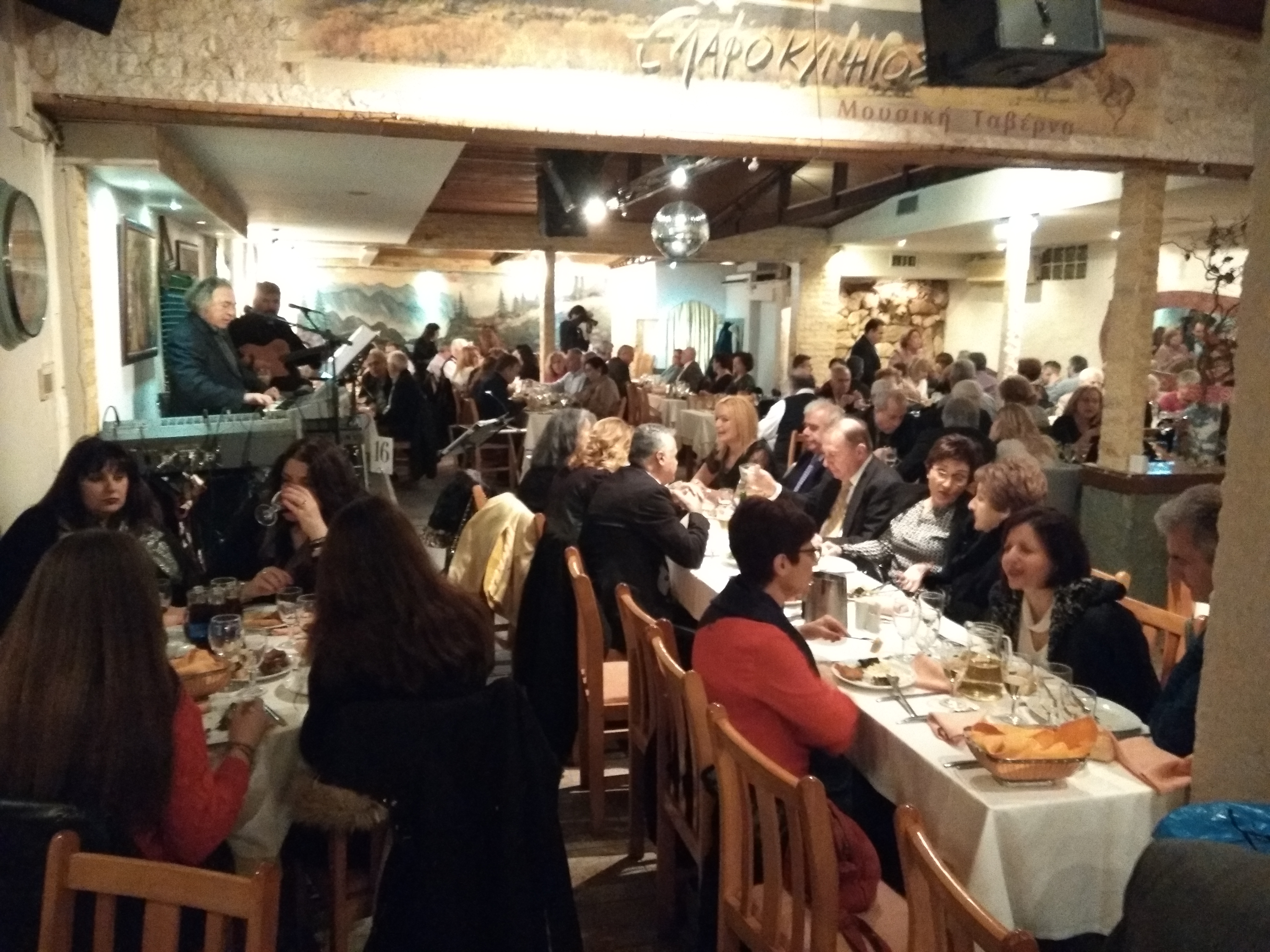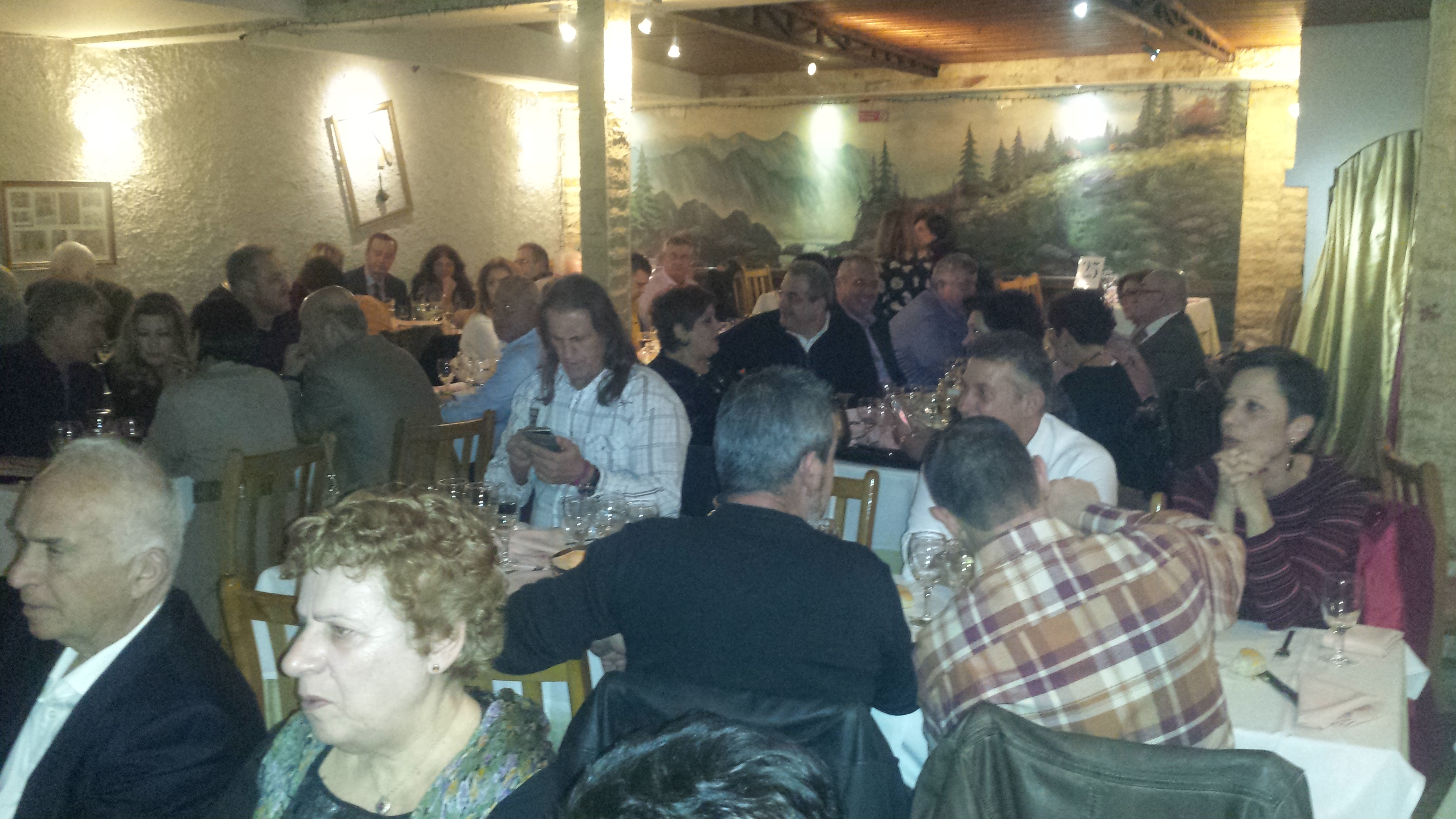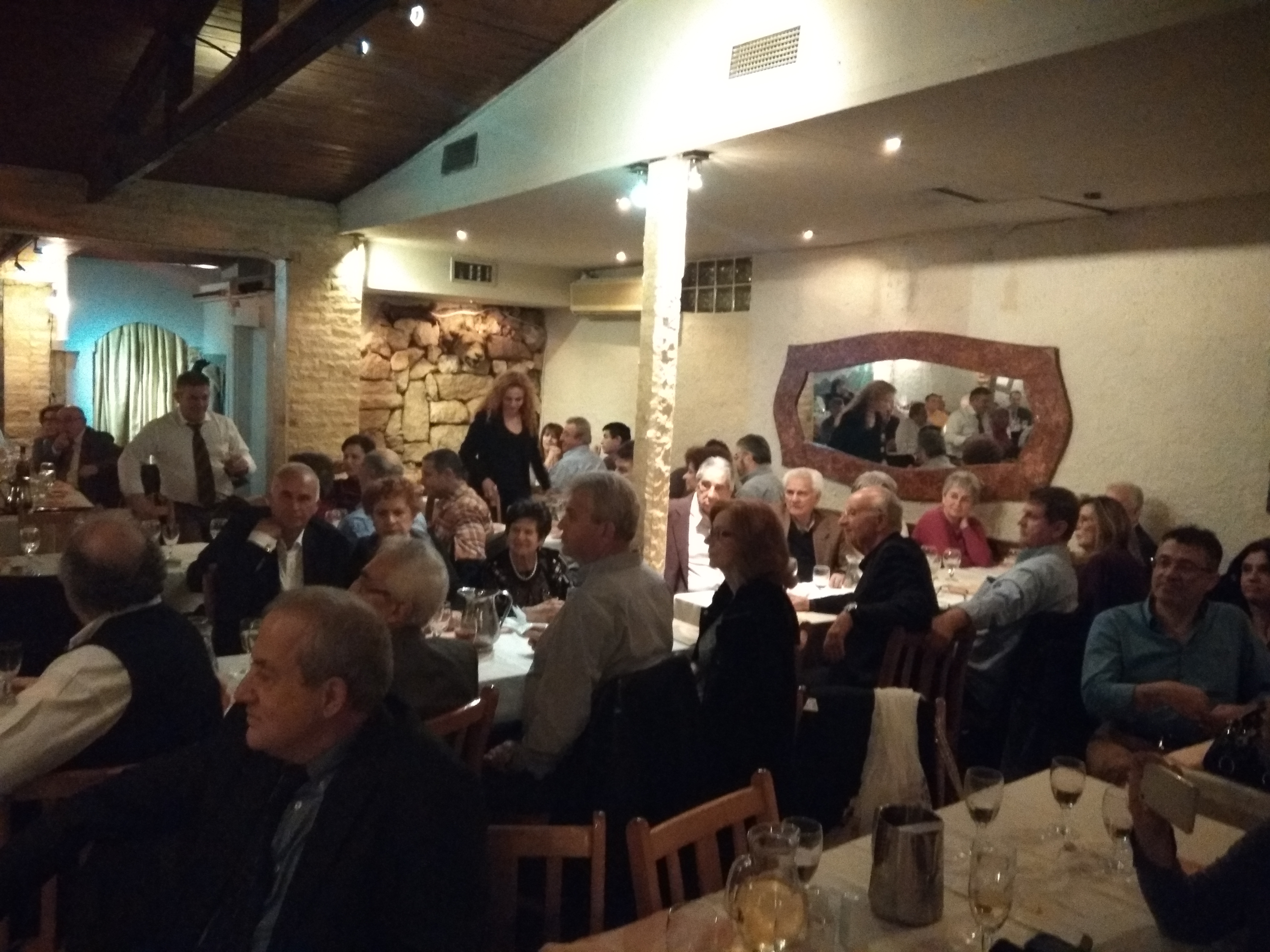 Οι συνάδελφοι που συμμετείχαν άρχισαν να καταφτάνουν λίγο μετά τις 8.30 μ.μ. και να γεμίζουν το κέντρο που είχαμε κλείσει για την εκδήλωσή μας. Η βραδιά ξεκίνησε… χαλαρά, με τα απολαυστικά εδέσματα που μας προσέφεραν και βέβαια με άφθονο κρασί για να δημιουργηθεί η κατάλληλη ατμόσφαιρα για το γλέντι που θα ακολουθούσε!