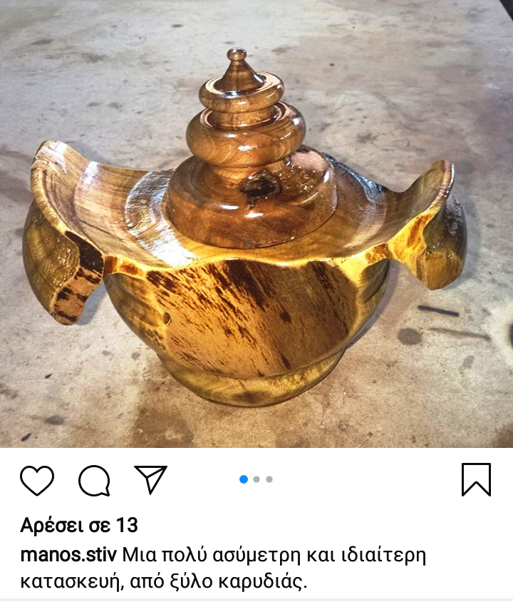 Ο συνταξιούχος συνάδελφός μας Μάνος Στιβανάκης που είχε υπηρετήσει στο Κεντρικό, την Ιπποκράτους, τη Διεύθυνση Οικονομικών Υπηρεσιών, τη Διεύθυνση Διοικητικών Υπηρεσιών, τη Διεύθυνση Γενικών Λειτουργιών, τη Διεύθυνση Γενικών Υπηρεσιών και Προμηθειών και τη Διεύθυνση Λειτουργικής Υποστήριξης, ασχολείται – όπως θα διαπιστώσετε με ιδιαίτερη επιτυχία – με την ξυλουργική, δημιουργώντας εκπληκτικές χειροποίητες ξυλοδημιουργίες!