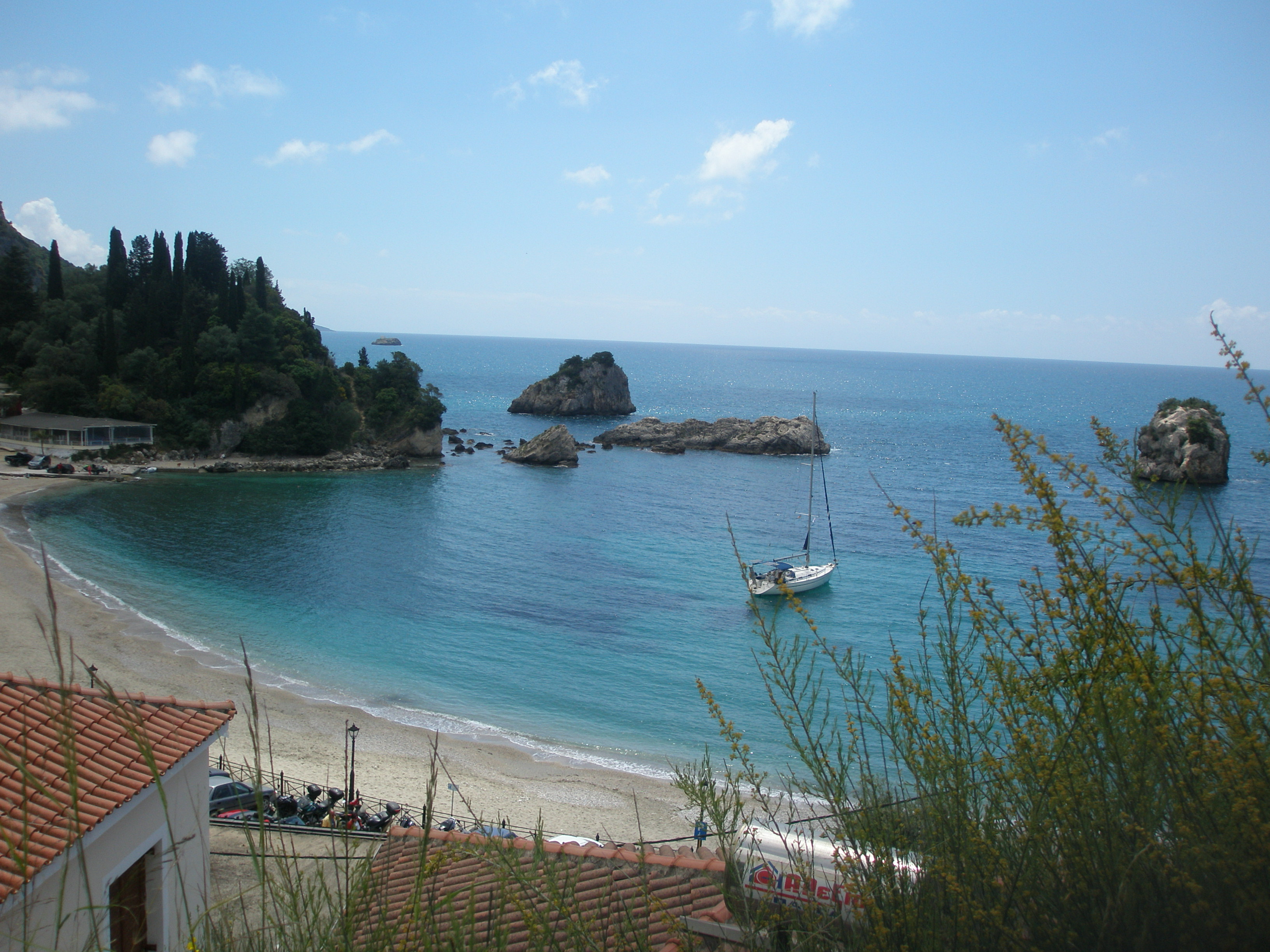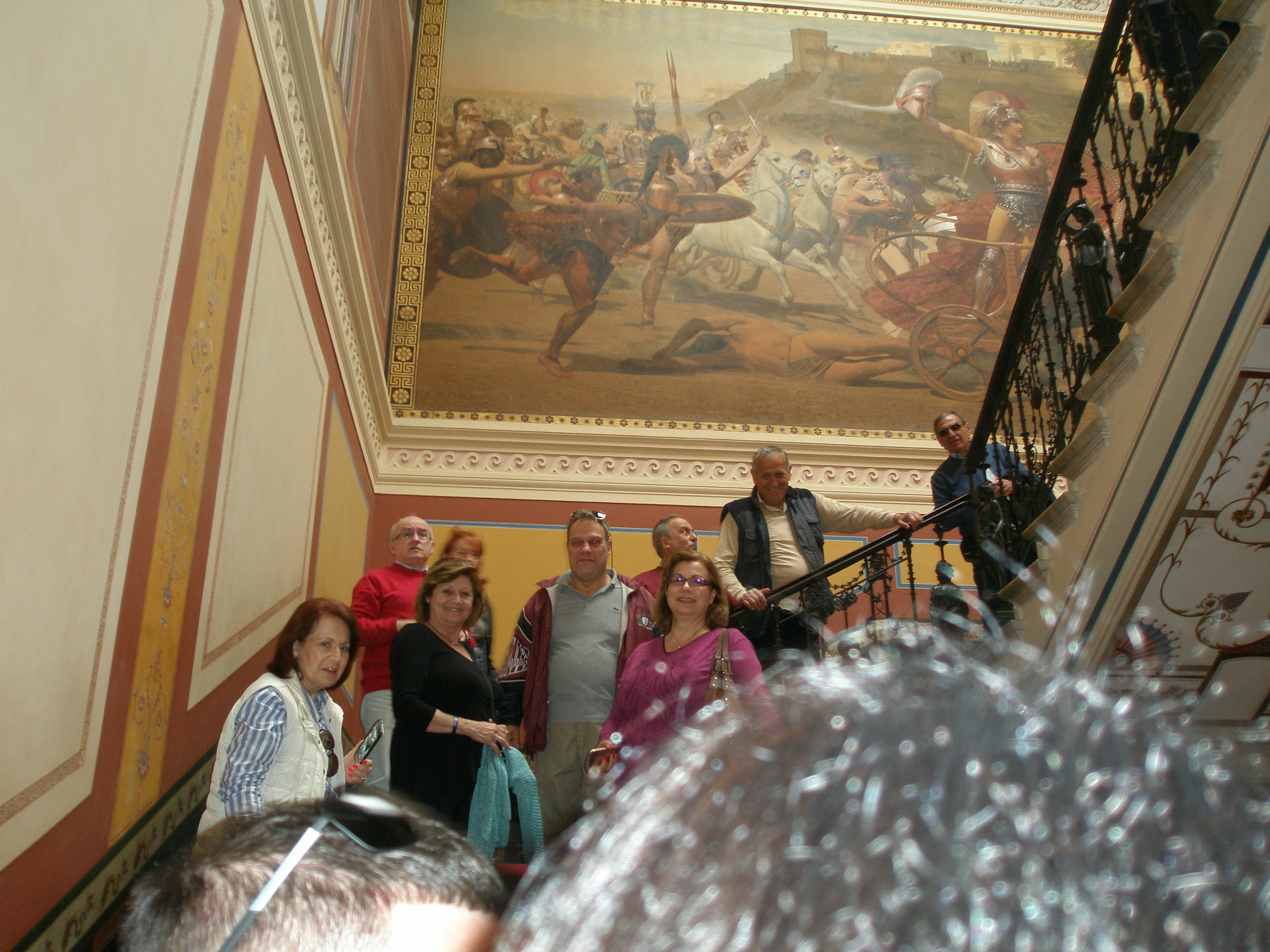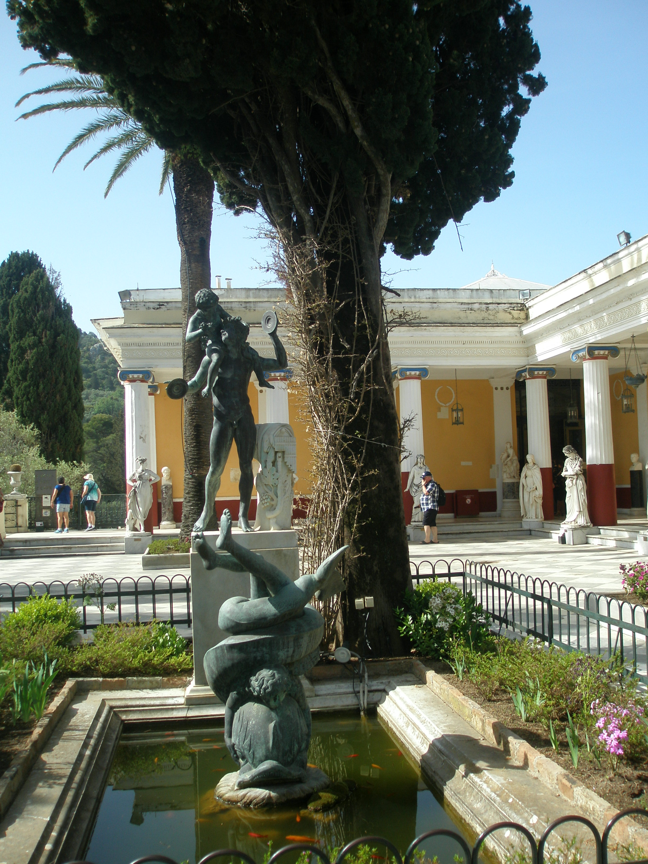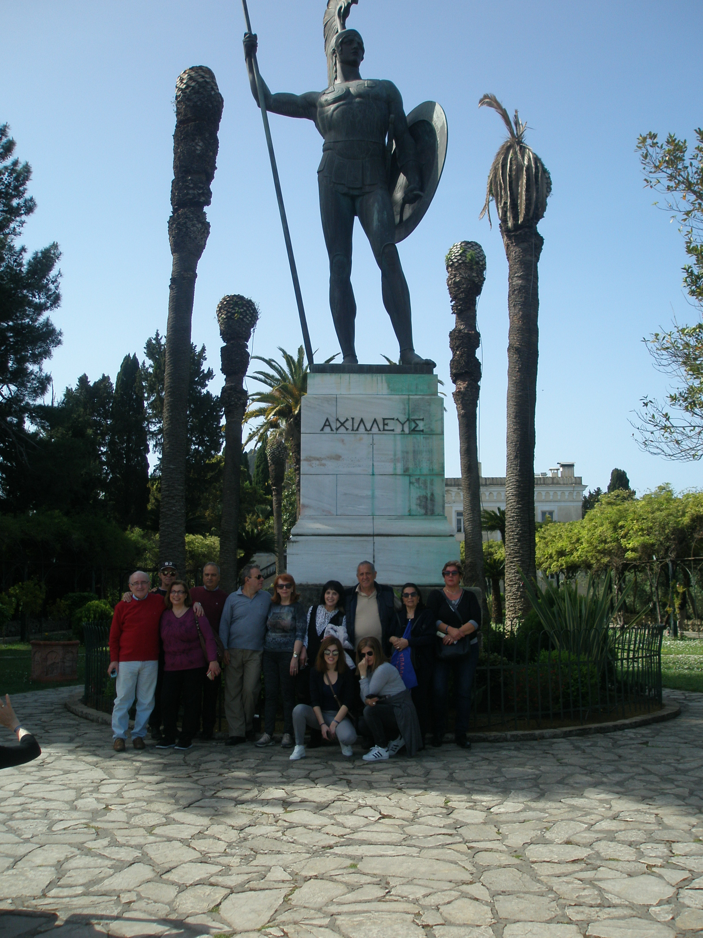 Το πλούσιο πρωινό μας σε μπουφέ μας περίμενε για να πάρουμε δυνάμεις για το πλήρες πρόγραμμα που θα ακολουθούσε. Πήραμε το δρόμο που πηγαίνει στην πόλη της Κέρκυρας, αλλά πρώτος μας σταθμός ήταν το ξακουστό Αχίλλειο, μία από τις γνωστότερες βασιλικές επαύλεις της Ευρώπης και ίσως το σημαντικότερο αξιοθέατο αρχιτεκτόνημα της Κέρκυρας σε ένα από τα πιο όμορφα σημεία του νησιού, στο οποίο είχε καταφύγει η πασίγνωστη Πριγκίπισσα Σίσυ για να απομακρυνθεί από τις ραδιουργίες του παλατιού στη Βιέννη… Η εξαιρετική θέση του Αχιλλείου με την υπέροχη θέα, οι… ατελείωτοι κήποι με τα αγάλματα, τα υπέροχα συντριβάνια και κάθε είδους κομψοτεχνήματα, μας ενθουσίασαν και μας έκαναν να φανταστούμε την αυτοκρατορική ζωή σε αυτό το ειδυλλιακό περιβάλλον… Μέσα στους χώρους του παλατιού, τόσο ο υπερπολυτελής διάκοσμος όσο και οι υπέροχοι πίνακες -με προεξέχοντα αυτόν που απεικονίζει τον Αχιλλέα στο άρμα να σέρνει τον Έκτορα- μας μετέφεραν νοερά σε μία άλλη εποχή…