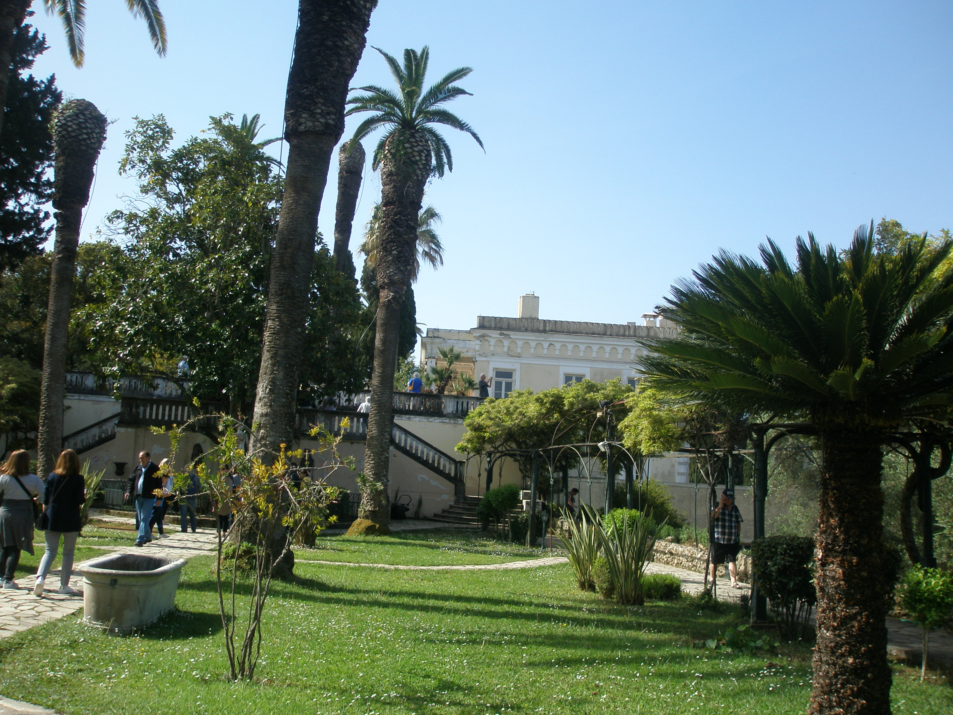 Υπό τις οδηγίες των συναδέλφων μας πλέον, κατεβήκαμε στην εξοχική κατοικία της τέως ελληνικής βασιλικής οικογένειας, το Μεν Ρεπό, με την πυκνή βλάστηση που απαρτίζεται από σπάνια φυτά και δέντρα από όλο τον κόσμο. Μετά τα θερινά ανάκτορα είχε φτάσει η ώρα να επιστρέψουμε στο ξενοδοχείο μας για να γευματίσουμε και να ξεκουραστούμε. Το απόγευμα πλέον επισκεφθήκαμε για πρώτη φορά από την άφιξή μας στο νησί, την πόλη της Κέρκυρας, προκειμένου να ζήσουμε από κοντά το μοναδικό θέαμα που προσφέρουν τα έθιμα της Μεγάλης Παρασκευής.
