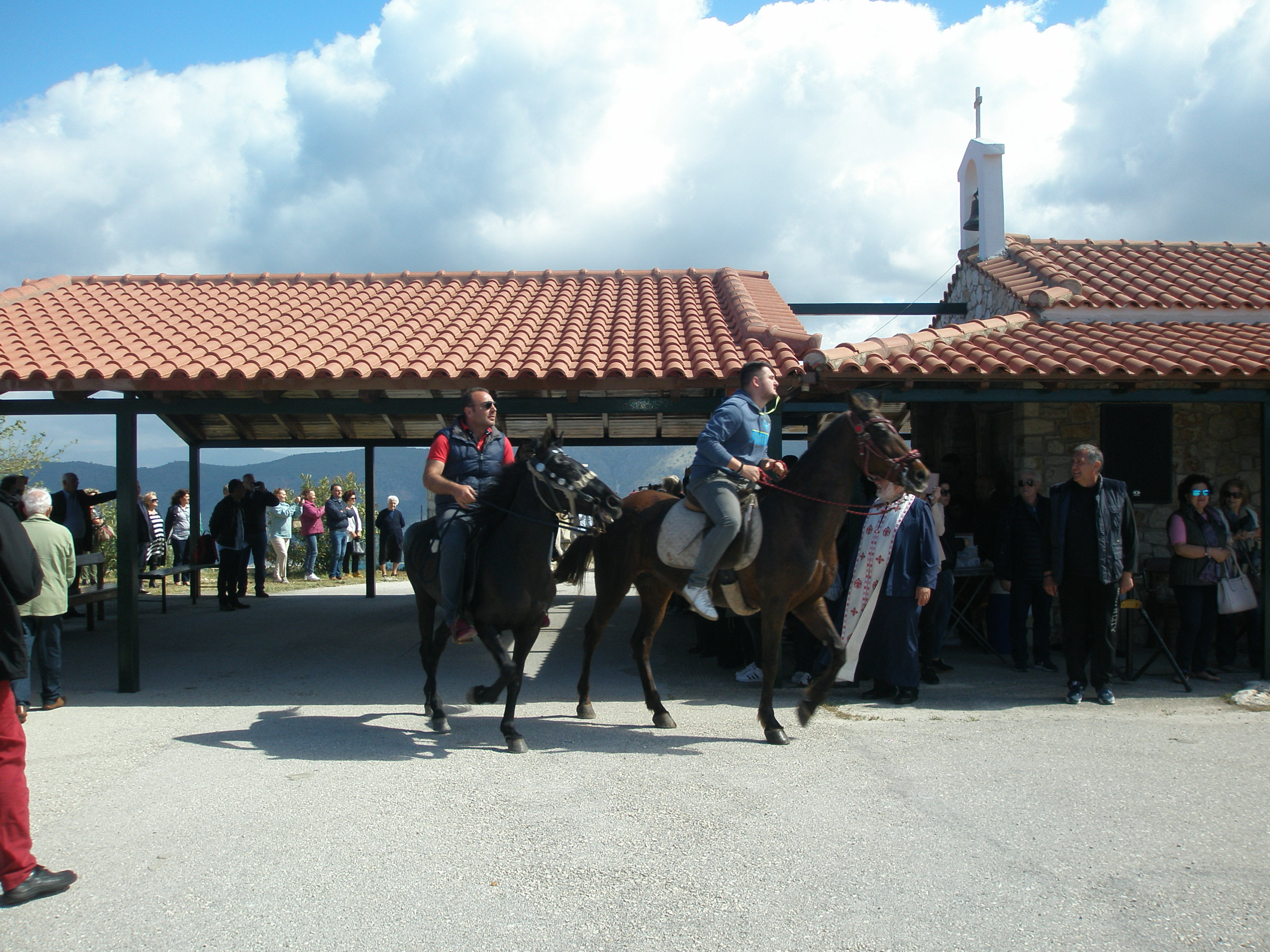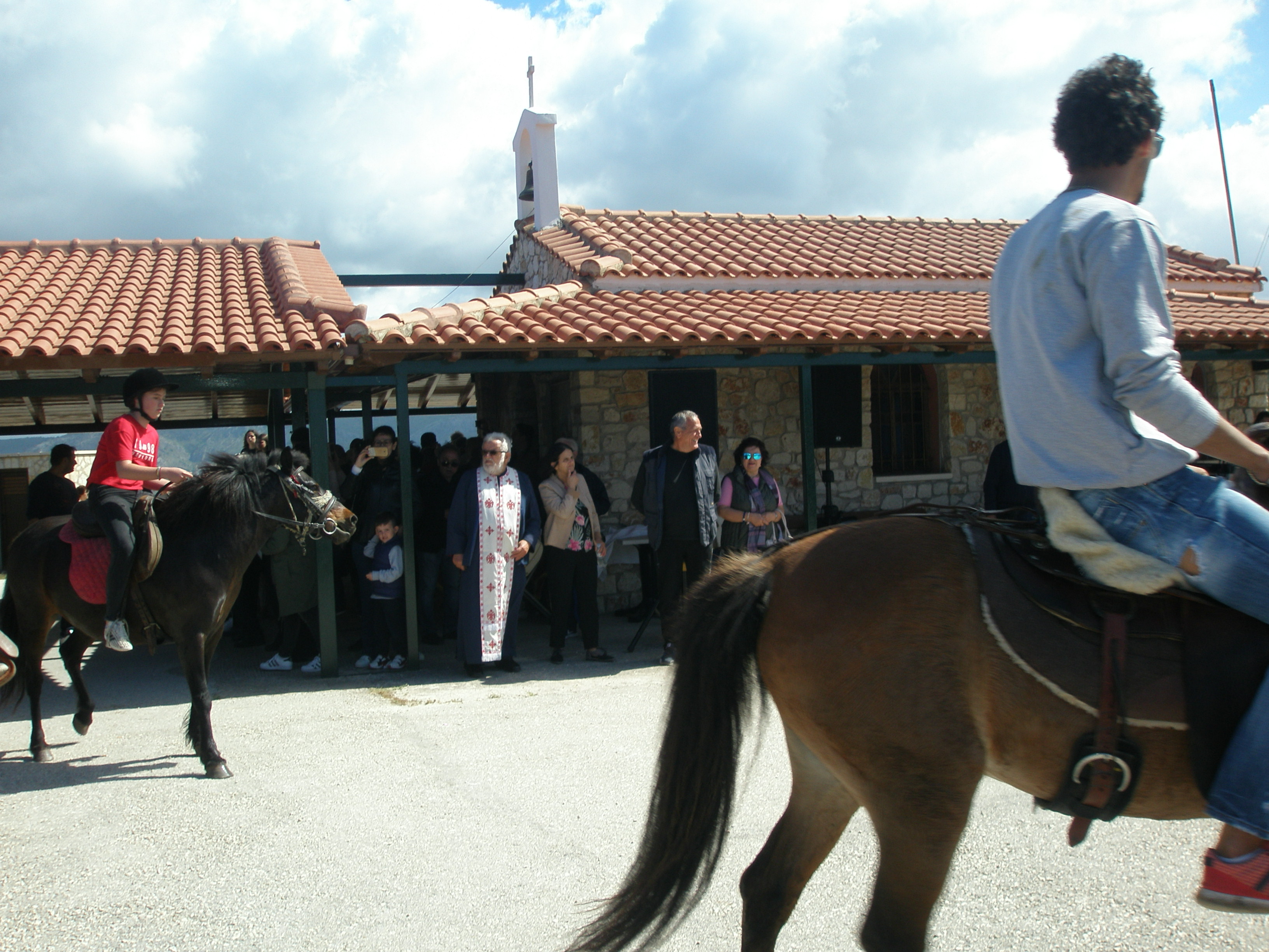 Βέβαια, λόγω και του εορτασμού του Αγίου Γεωργίου, σκοπός μας ήταν να επισκεφθούμε τον Ιερό Ναό Αγίου Γεωργίου της περιοχής, να προσκυνήσουμε, αλλά και να παρακολουθήσουμε ένα μοναδικό τελετουργικό με άλογα και καβαλάρηδες που ξεκινούν από τα Σύβοτα και ανεβαίνουν το δρόμο προς την εκκλησία μεταφέροντας με τα άλογα εικόνες του Αγίου Γεωργίου. Αφού περιφέρονται γύρω από το Ναό, προσκυνούν την εικόνα του Αγίου Γεωργίου και αφήνουν τις εικόνες στην εκκλησία. Πρόκειται σίγουρα για ένα ιδιαίτερο έθιμο που δε συναντά συχνά κάποιος και ήταν μία ξεχωριστή εμπειρία για όλους μας.