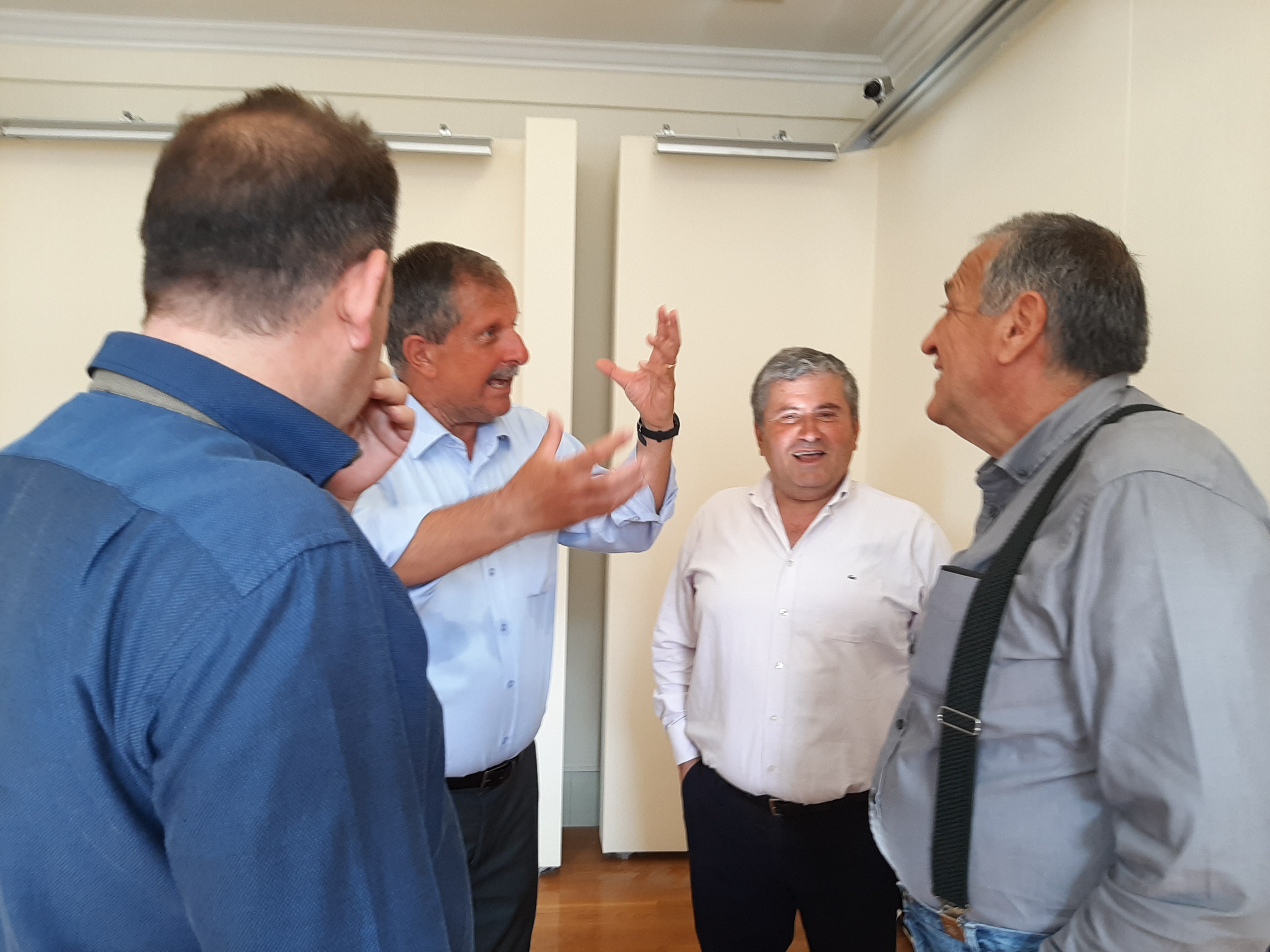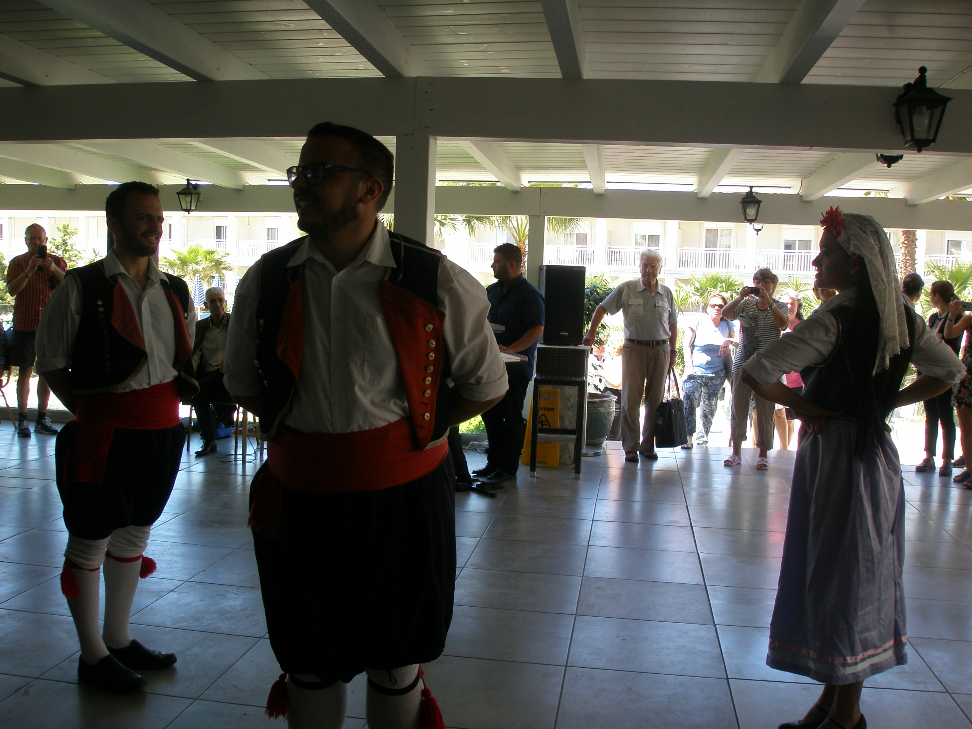 Εκεί μας περίμεναν οι εκλεκτοί συνάδελφοί μας Σπύρος Λαμάκιας, Απόστολος Καραμπίκας και Χρήστος Γεωργάκης, οι οποίοι μας έδωσαν πληροφορίες για το νησί και απάντησαν σε όλες τις απορίες που εκφράσαμε σαν… μικρά παιδιά, αλλά κυρίως στη συνέχεια διετέλεσαν χρέη ξεναγού και μας παρείχαν εξυπηρέτηση σε ό,τι χρειαζόμασταν! Θέλουμε να τους ευχαριστήσουμε θερμά γιατί η συμβολή τους στην επιτυχημένη εκδρομή και την καλοπέρασή μας ήταν ανεκτίμητη!