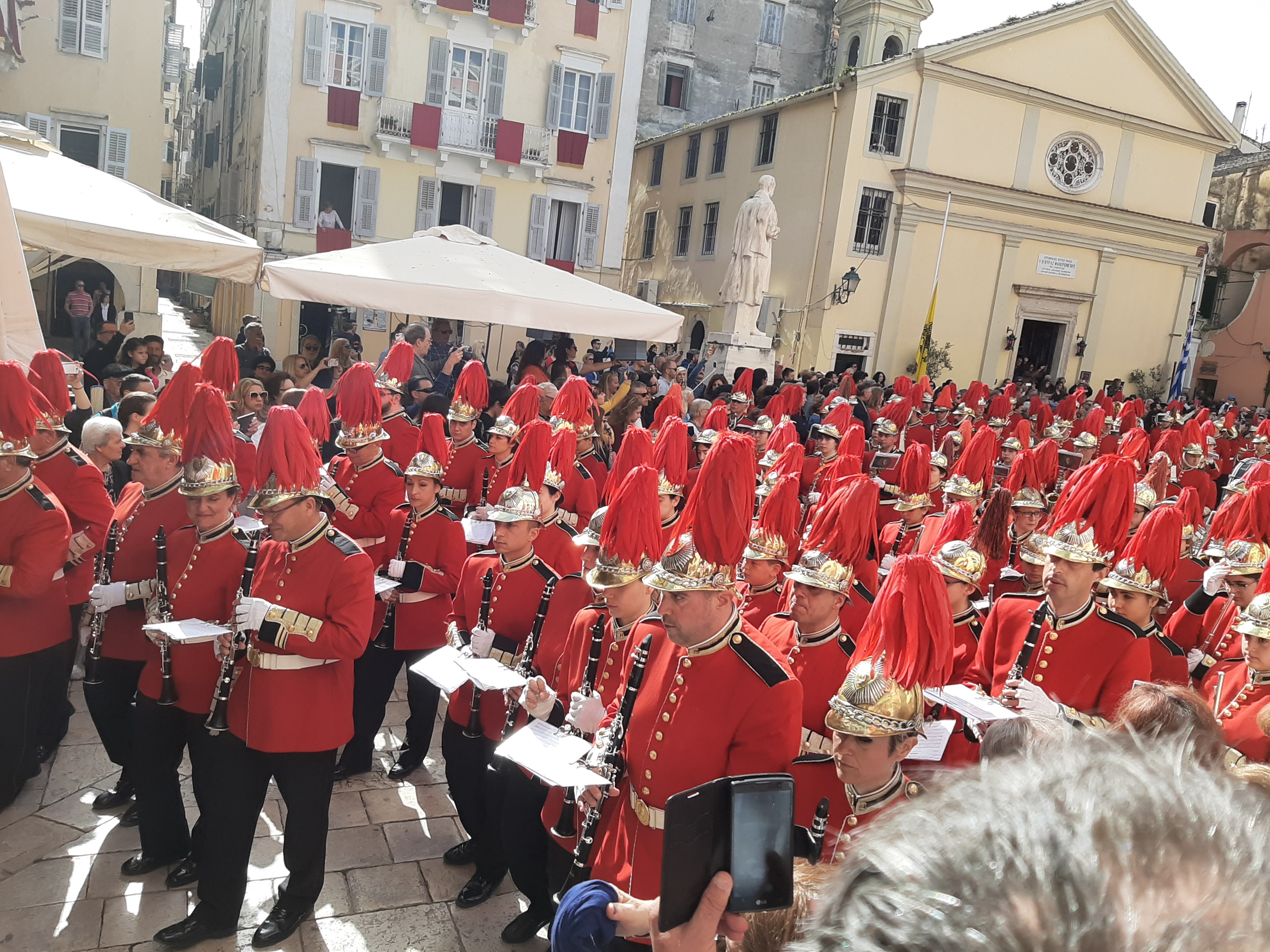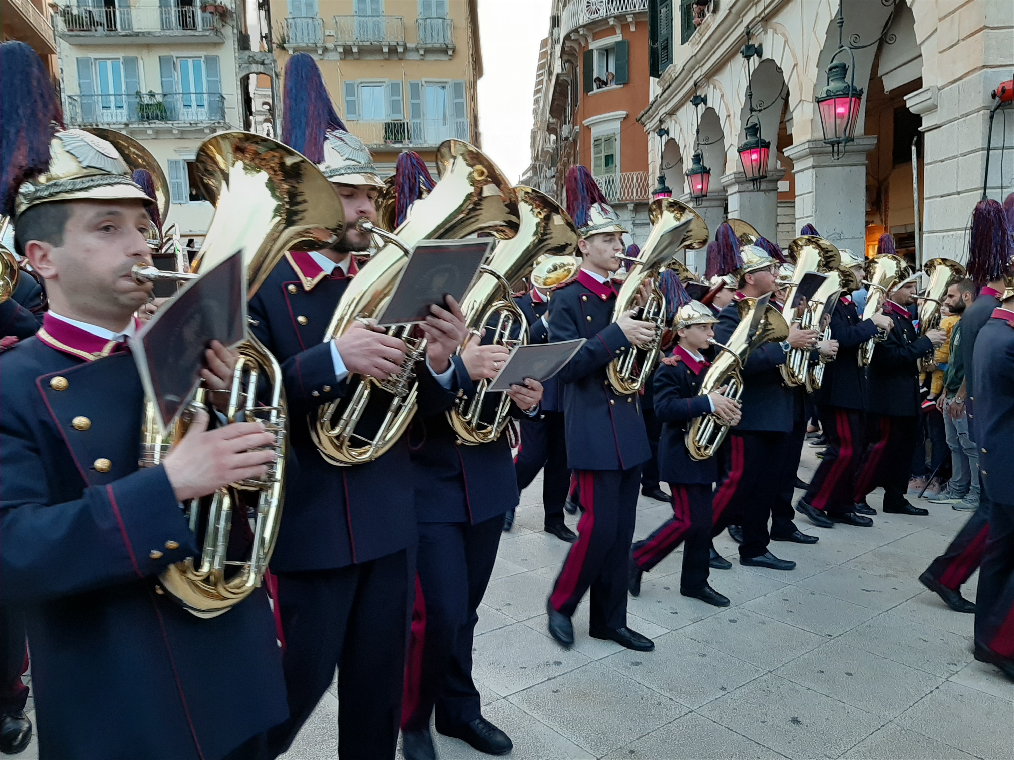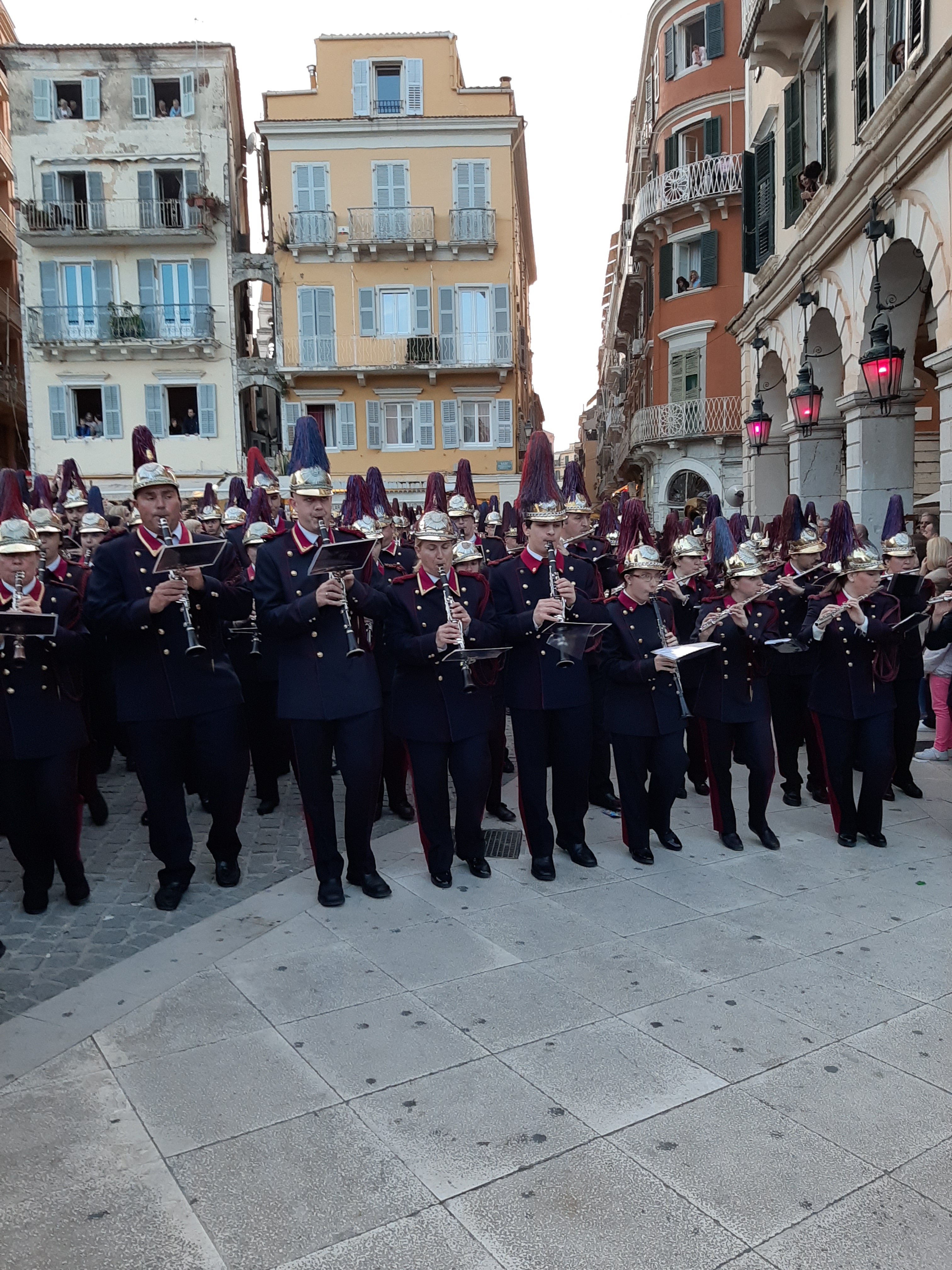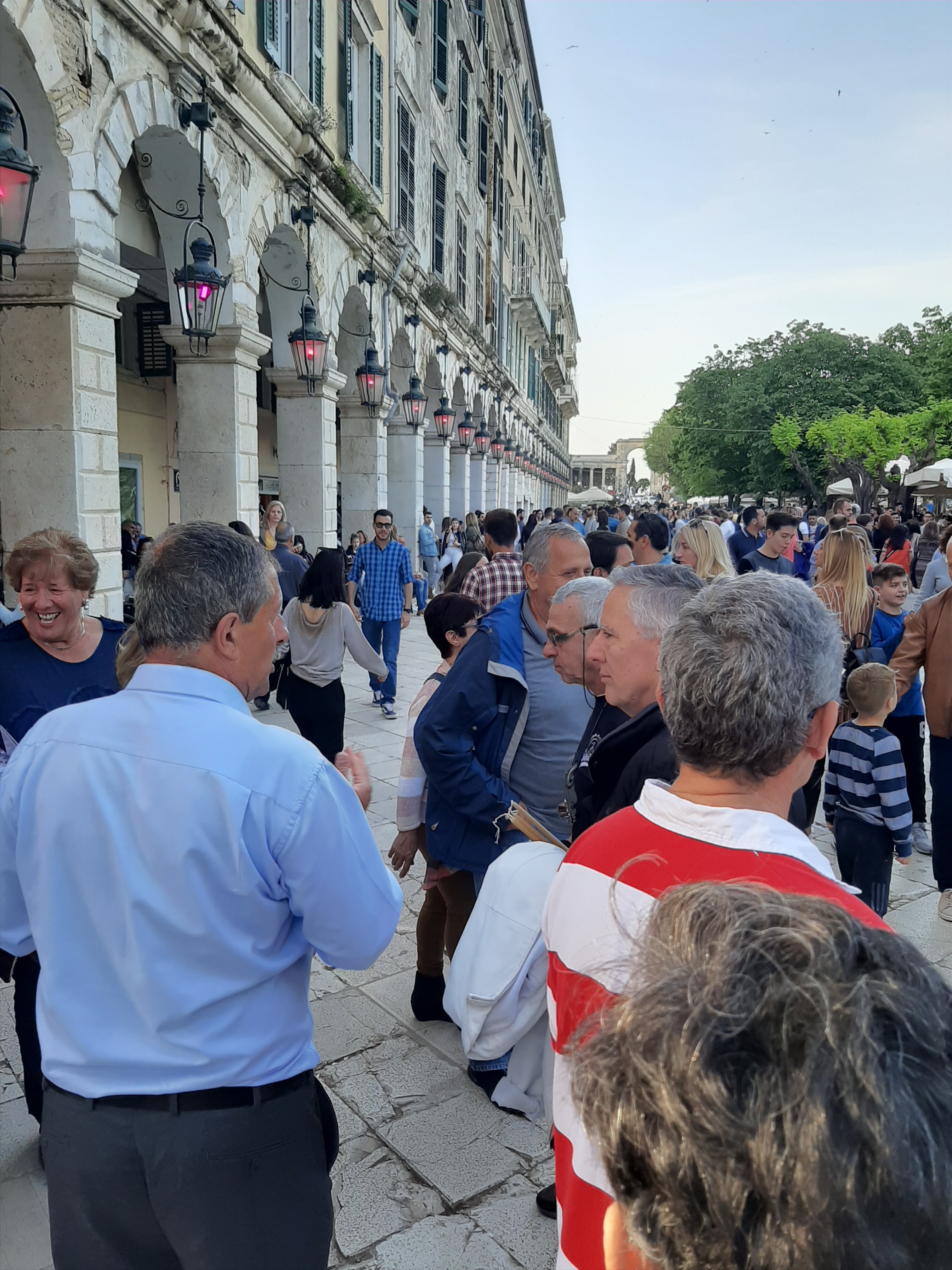 Στη συνέχεια ο συνάδελφος Λαμάκιας που έχει βαθιά γνώση των πολιτιστικών της Κέρκυρας μιας και έχει ο ίδιος ενεργή συμμετοχή, μας εξήγησε για τις τρεις φιλαρμονικές της Κέρκυρας – την Παλαιά, Καποδίστρια, Μάντζαρος – που παρά τις οικονομικές δυσκολίες συνεχίζουν να συντηρούνται με τεράστιες προσπάθειες από τους ανθρώπους του νησιού που έχει τεράστια πολιτιστική και μουσική παράδοση, να διατηρούν ένα εξαιρετικά υψηλό επίπεδο λόγω του πολύ αυστηρού πλαισίου λειτουργίας τους, αλλά και να… κονταροχτυπιούνται αφού η αντιπαλότητά τους αναμένει αναλλοίωτη με το πέρασμα των χρόνων! Μάλιστα, όπως μας εξήγησε ο συνάδελφος, θεωρείται αδιανόητο ένα μέλος της μίας φιλαρμονικής ορχήστρας να «πάρει μεταγραφή» για την άλλη! Ωστόσο εμάς σαν εξωτερικούς παρατηρητές δε μας επηρεάζουν αυτά και αντίθετα μας απέμενε να απολαύσουμε και τις τρεις φιλαρμονικές που έχουν όλες διακριθεί με μεγάλα διεθνή βραβεία και, όπως διαπιστώσαμε αργότερα, δίνουν πράγματι ένα καταπληκτικό μουσικό χρώμα σε όλες τις πασχαλινές εκδηλώσεις της Κέρκυρας!