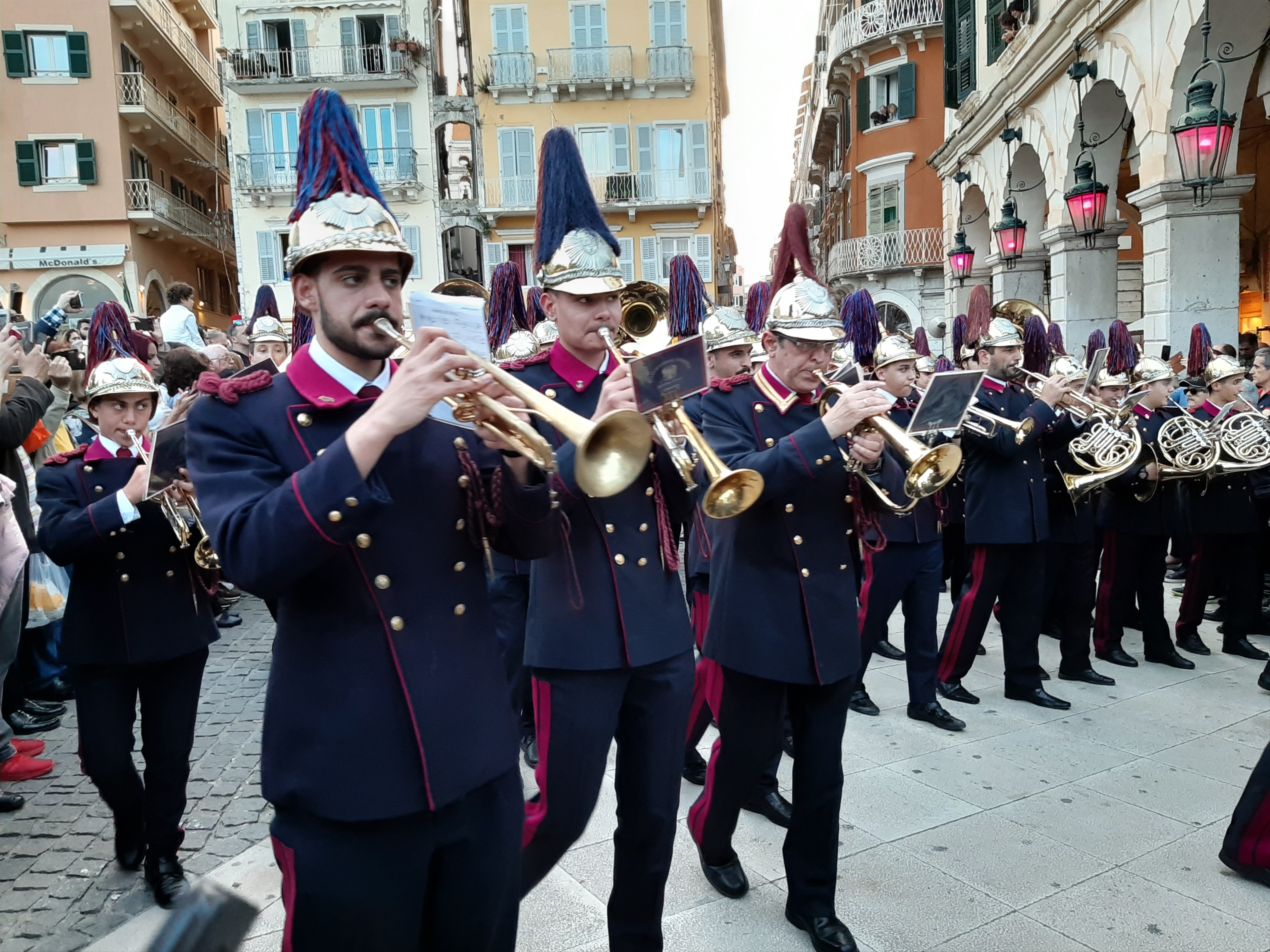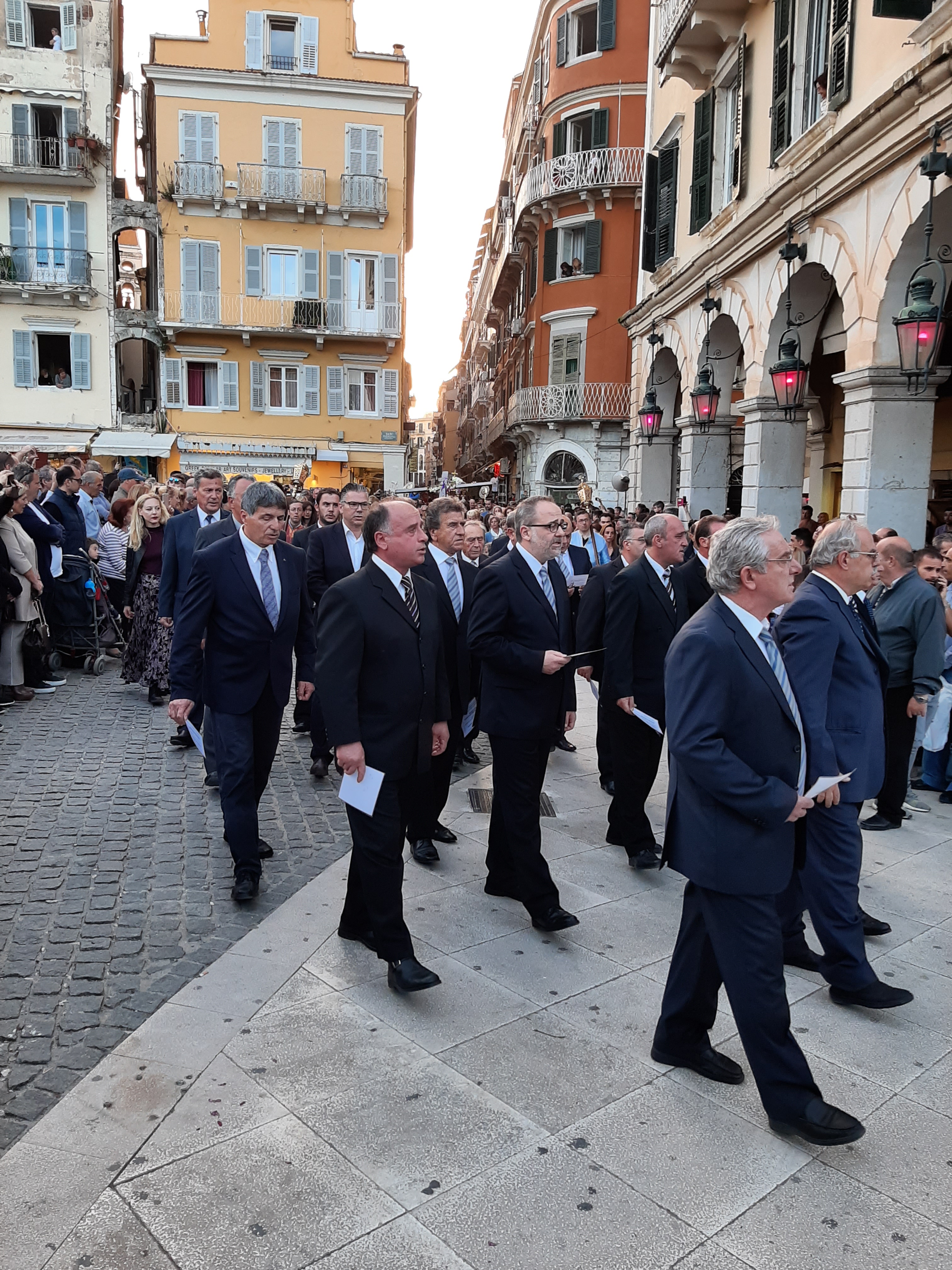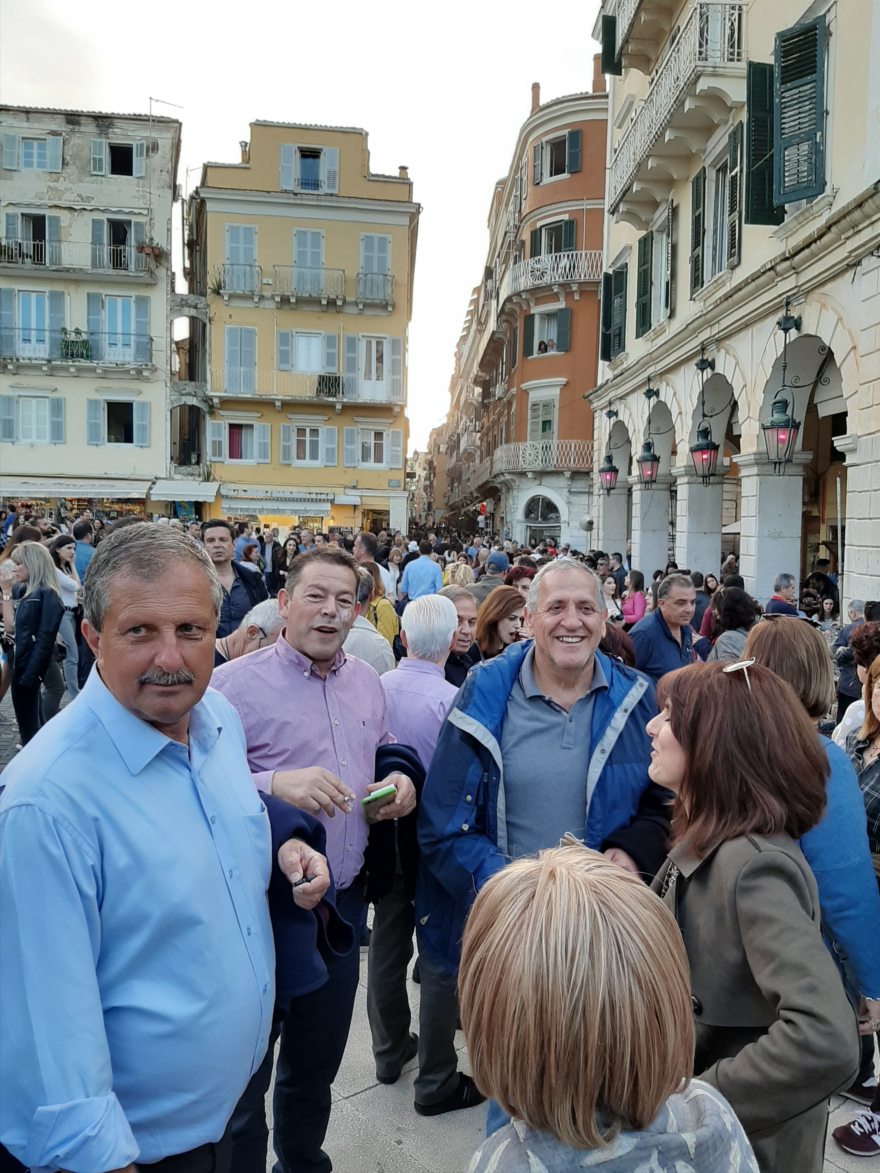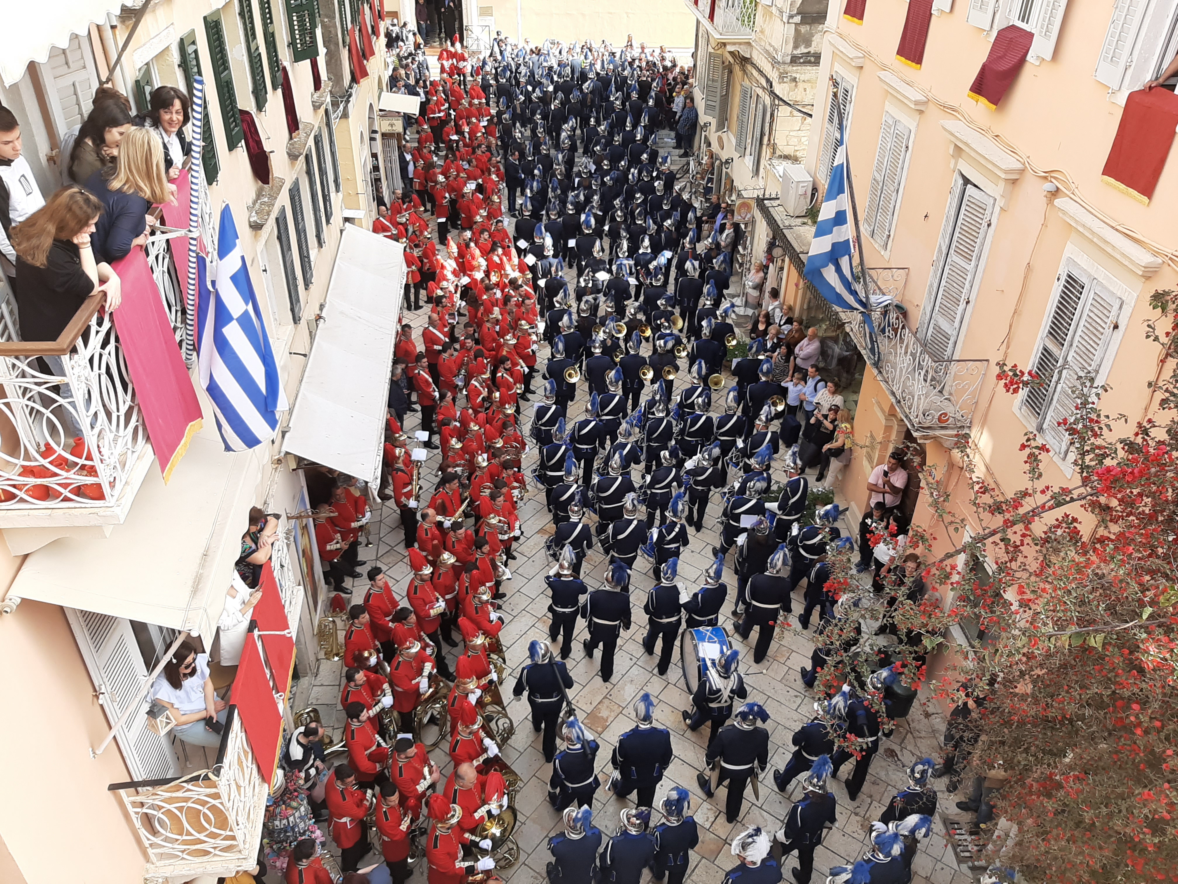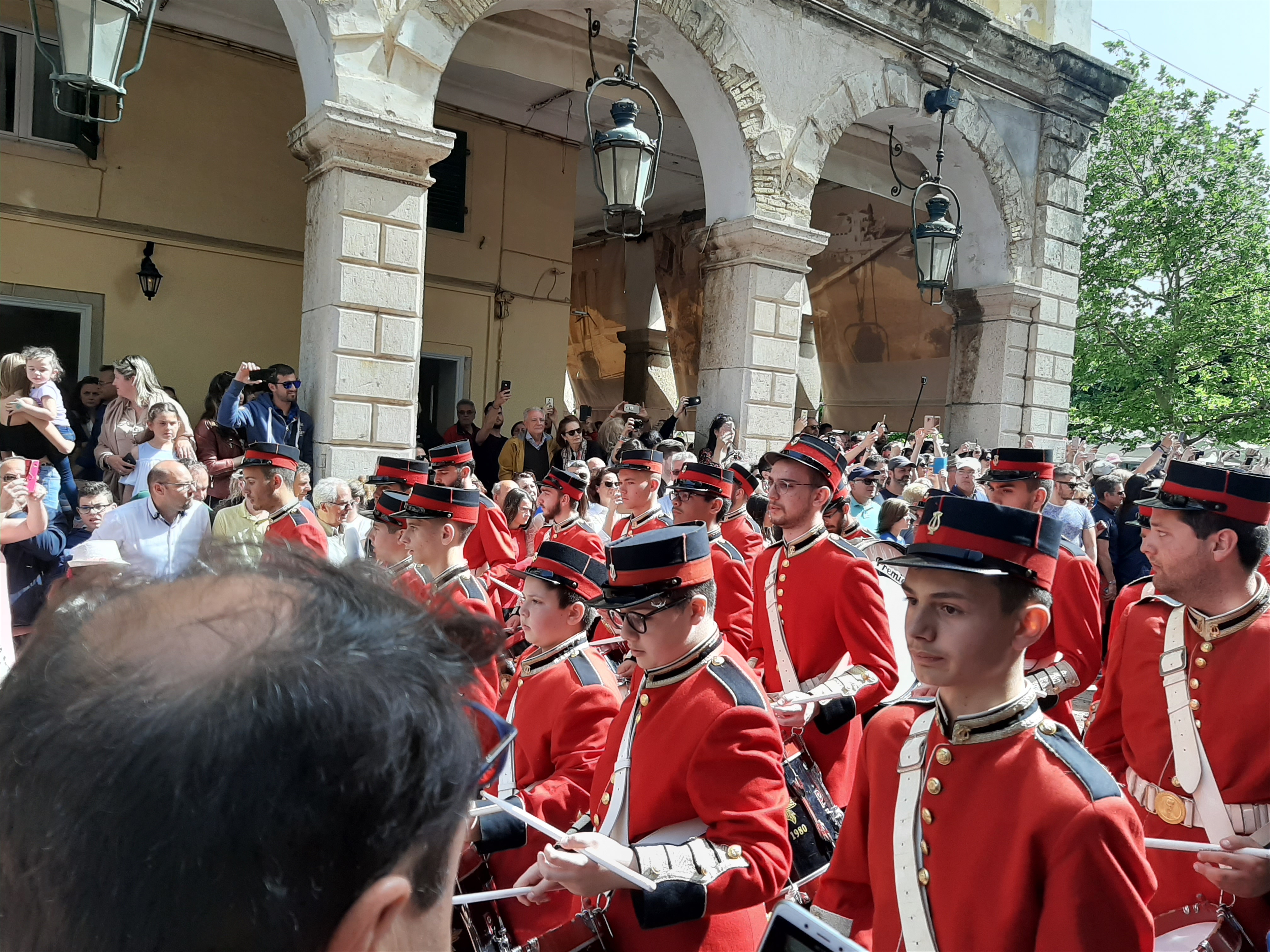 Στη συνέχεια ο συνάδελφος Λαμάκιας που έχει βαθιά γνώση των πολιτιστικών της Κέρκυρας μιας και έχει ο ίδιος ενεργή συμμετοχή, μας εξήγησε για τις τρεις φιλαρμονικές της Κέρκυρας – την Παλαιά, Καποδίστρια, Μάντζαρος – που παρά τις οικονομικές δυσκολίες συνεχίζουν να συντηρούνται με τεράστιες προσπάθειες από τους ανθρώπους του νησιού που έχει τεράστια πολιτιστική και μουσική παράδοση, να διατηρούν ένα εξαιρετικά υψηλό επίπεδο λόγω του πολύ αυστηρού πλαισίου λειτουργίας τους, αλλά και να… κονταροχτυπιούνται αφού η αντιπαλότητά τους αναμένει αναλλοίωτη με το πέρασμα των χρόνων! Μάλιστα, όπως μας εξήγησε ο συνάδελφος, θεωρείται αδιανόητο ένα μέλος της μίας φιλαρμονικής ορχήστρας να «πάρει μεταγραφή» για την άλλη! Ωστόσο εμάς σαν εξωτερικούς παρατηρητές δε μας επηρεάζουν αυτά και αντίθετα μας απέμενε να απολαύσουμε και τις τρεις φιλαρμονικές που έχουν όλες διακριθεί με μεγάλα διεθνή βραβεία και, όπως διαπιστώσαμε αργότερα, δίνουν πράγματι ένα καταπληκτικό μουσικό χρώμα σε όλες τις πασχαλινές εκδηλώσεις της Κέρκυρας!