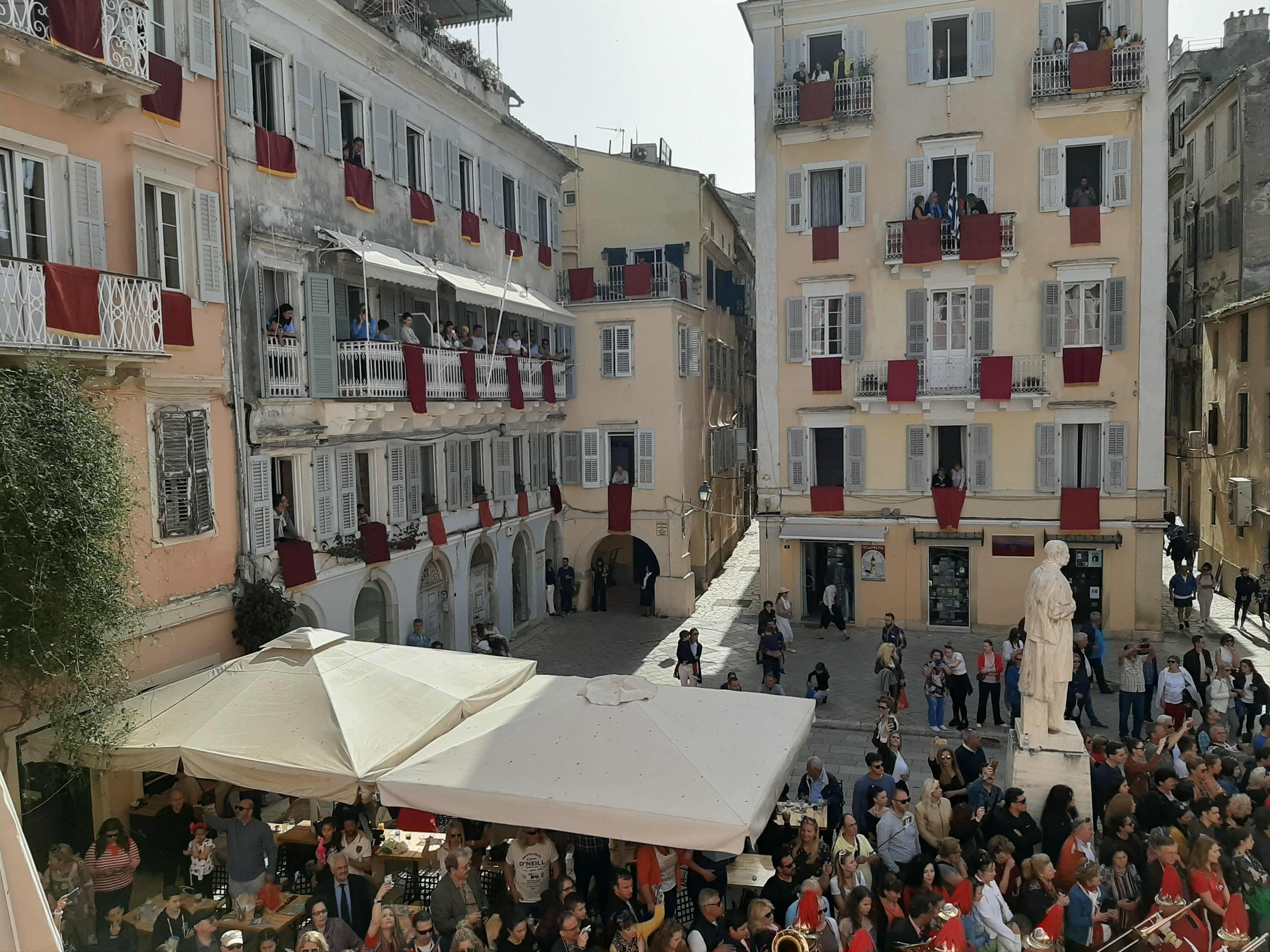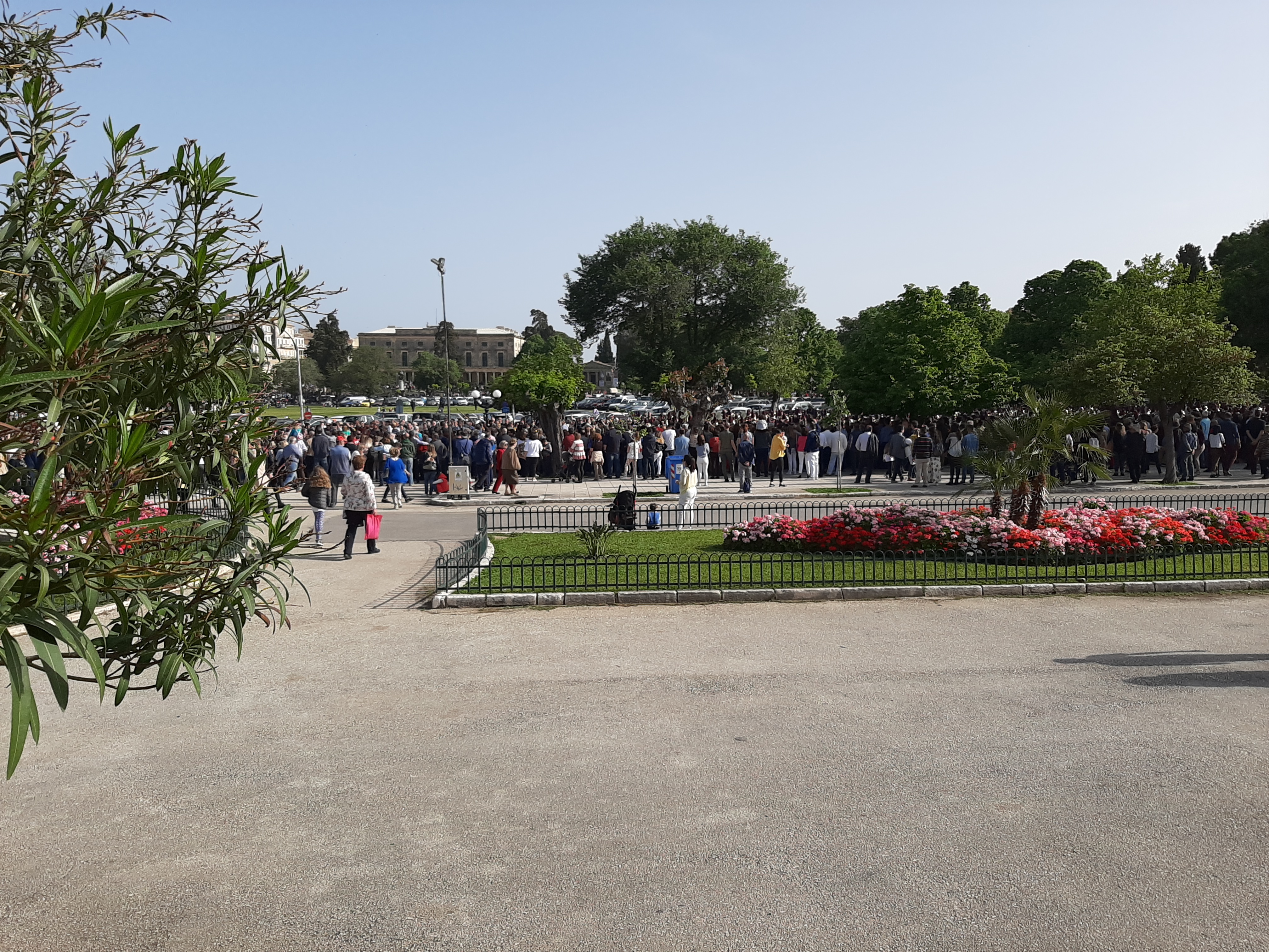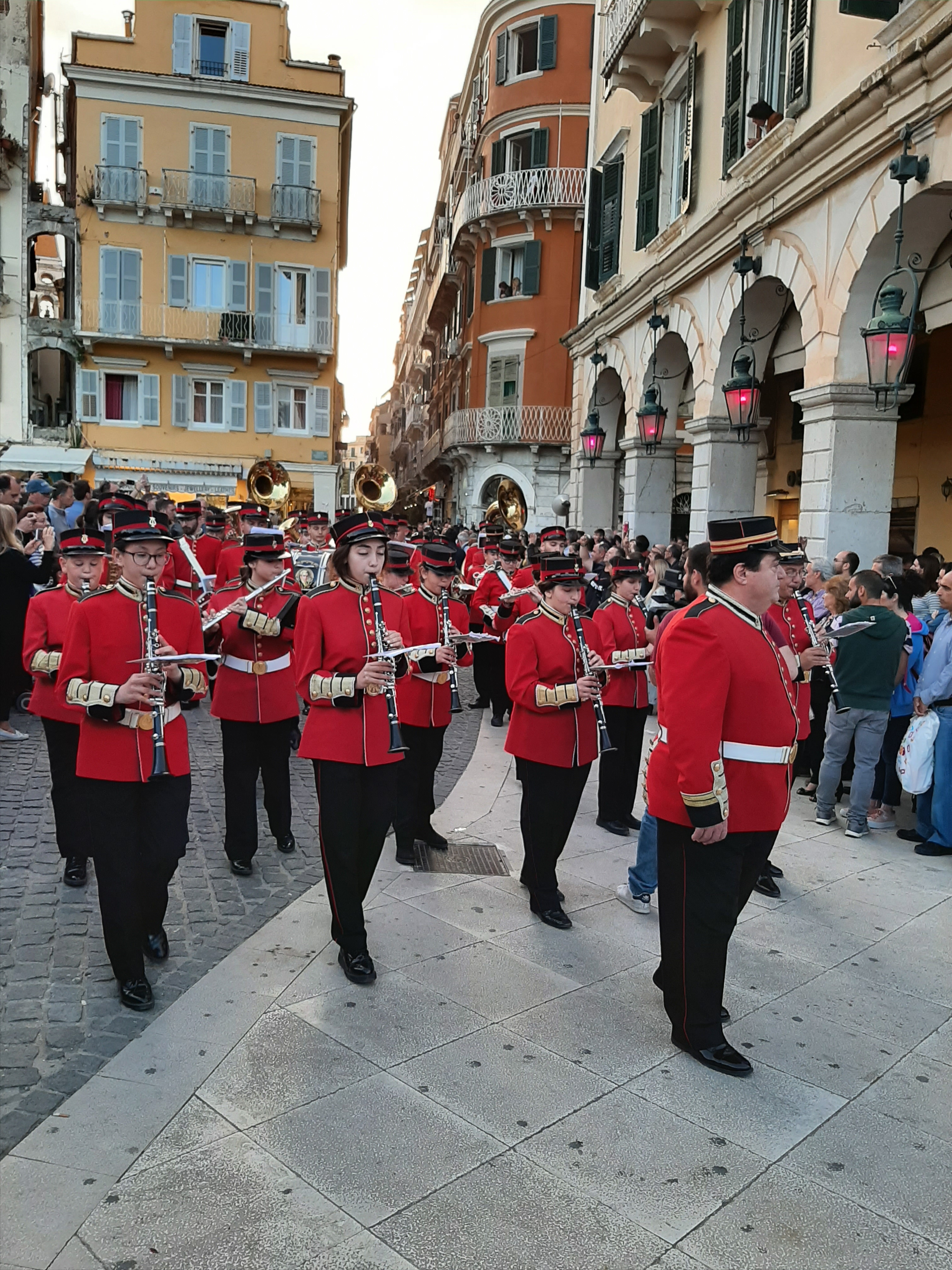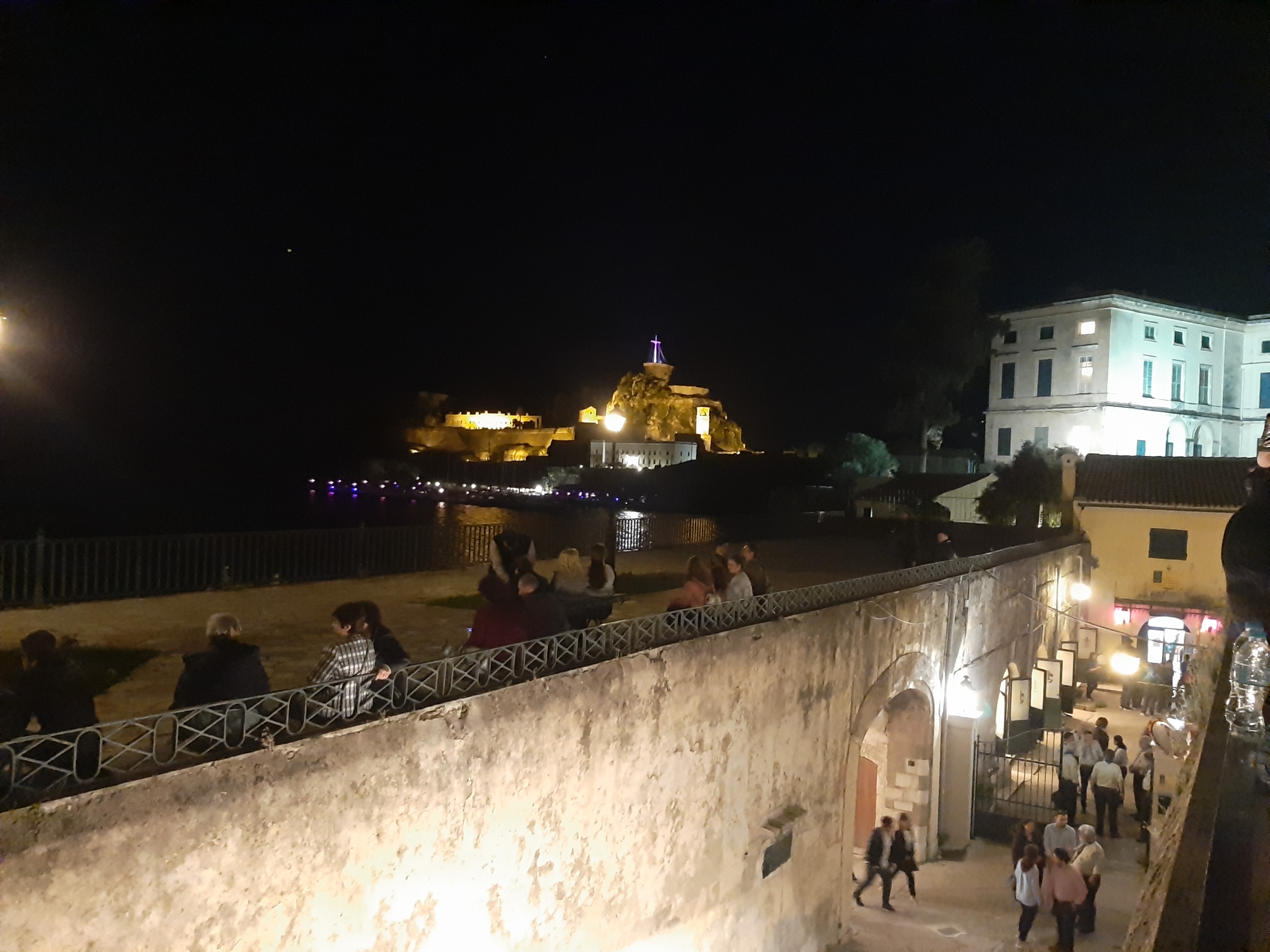 Στη συνέχεια ο συνάδελφος Λαμάκιας που έχει βαθιά γνώση των πολιτιστικών της Κέρκυρας μιας και έχει ο ίδιος ενεργή συμμετοχή, μας εξήγησε για τις τρεις φιλαρμονικές της Κέρκυρας – την Παλαιά, Καποδίστρια, Μάντζαρος – που παρά τις οικονομικές δυσκολίες συνεχίζουν να συντηρούνται με τεράστιες προσπάθειες από τους ανθρώπους του νησιού που έχει τεράστια πολιτιστική και μουσική παράδοση, να διατηρούν ένα εξαιρετικά υψηλό επίπεδο λόγω του πολύ αυστηρού πλαισίου λειτουργίας τους, αλλά και να… κονταροχτυπιούνται αφού η αντιπαλότητά τους αναμένει αναλλοίωτη με το πέρασμα των χρόνων! Μάλιστα, όπως μας εξήγησε ο συνάδελφος, θεωρείται αδιανόητο ένα μέλος της μίας φιλαρμονικής ορχήστρας να «πάρει μεταγραφή» για την άλλη! Ωστόσο εμάς σαν εξωτερικούς παρατηρητές δε μας επηρεάζουν αυτά και αντίθετα μας απέμενε να απολαύσουμε και τις τρεις φιλαρμονικές που έχουν όλες διακριθεί με μεγάλα διεθνή βραβεία και, όπως διαπιστώσαμε αργότερα, δίνουν πράγματι ένα καταπληκτικό μουσικό χρώμα σε όλες τις πασχαλινές εκδηλώσεις της Κέρκυρας!
