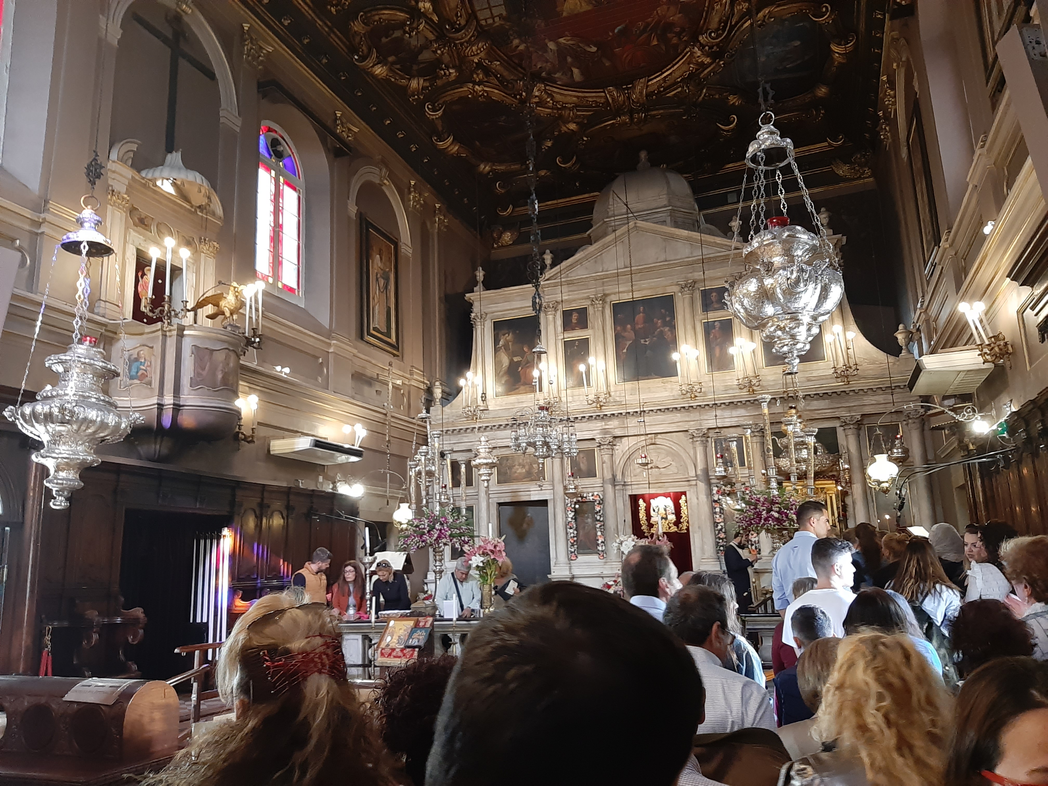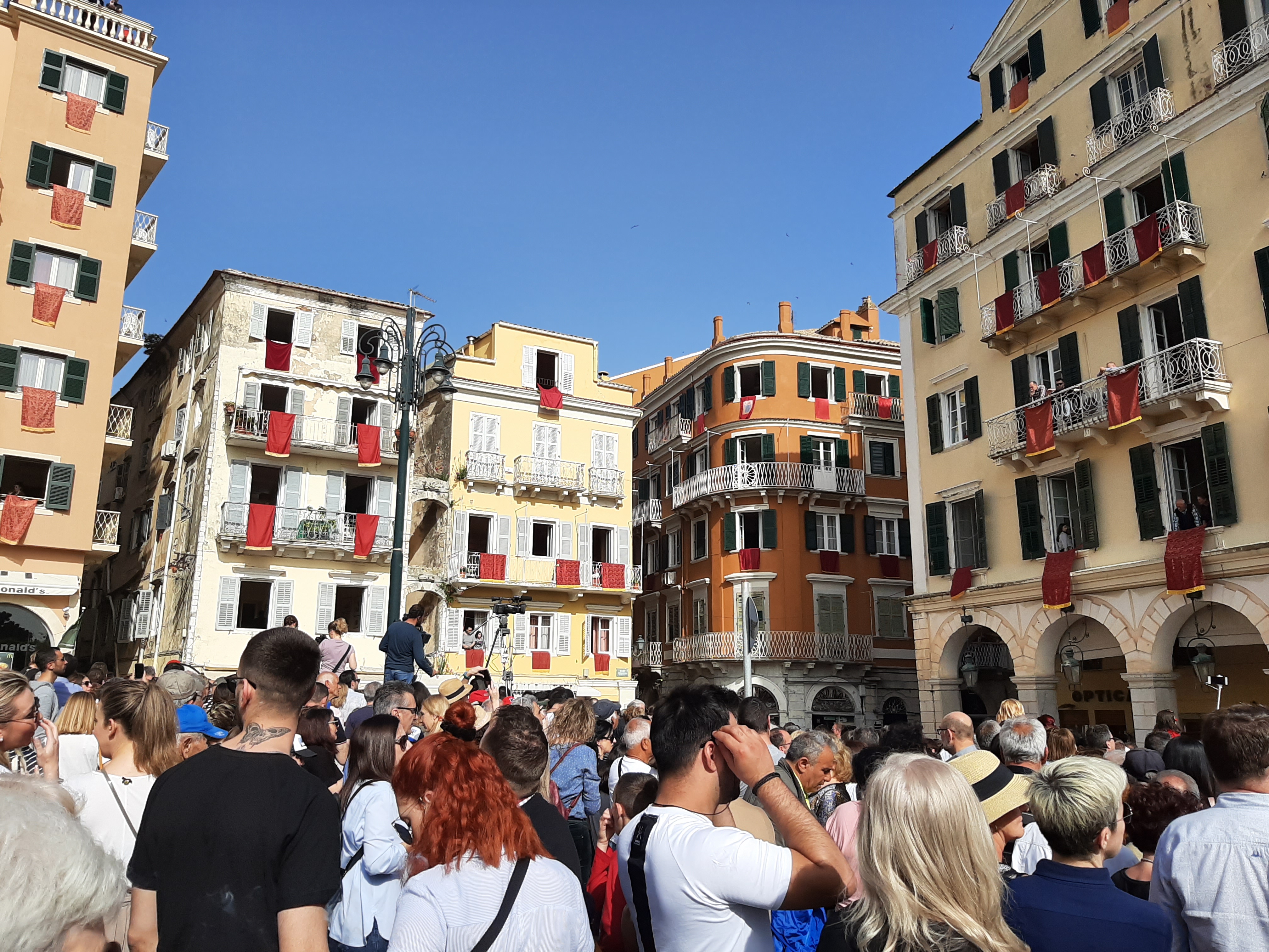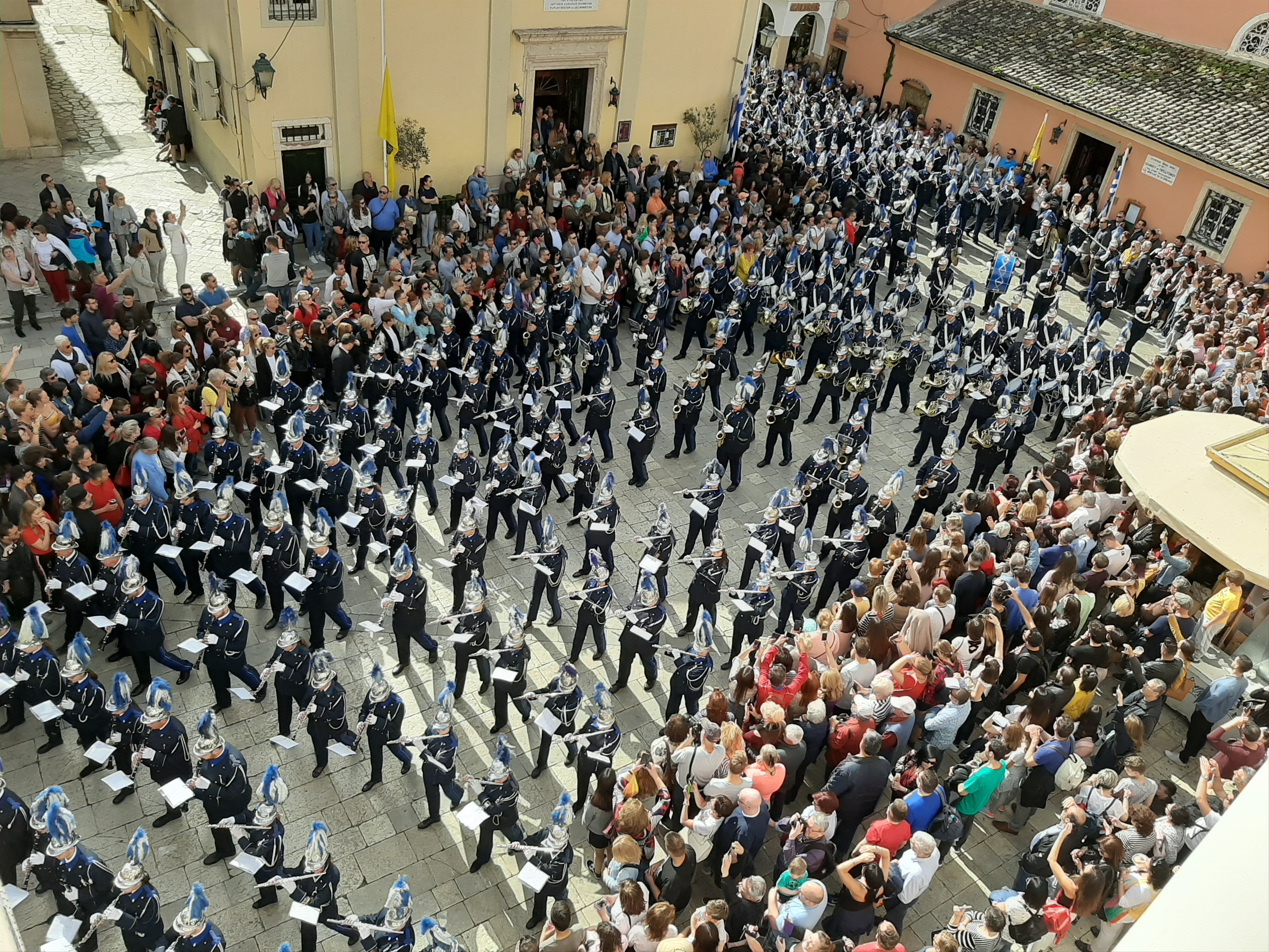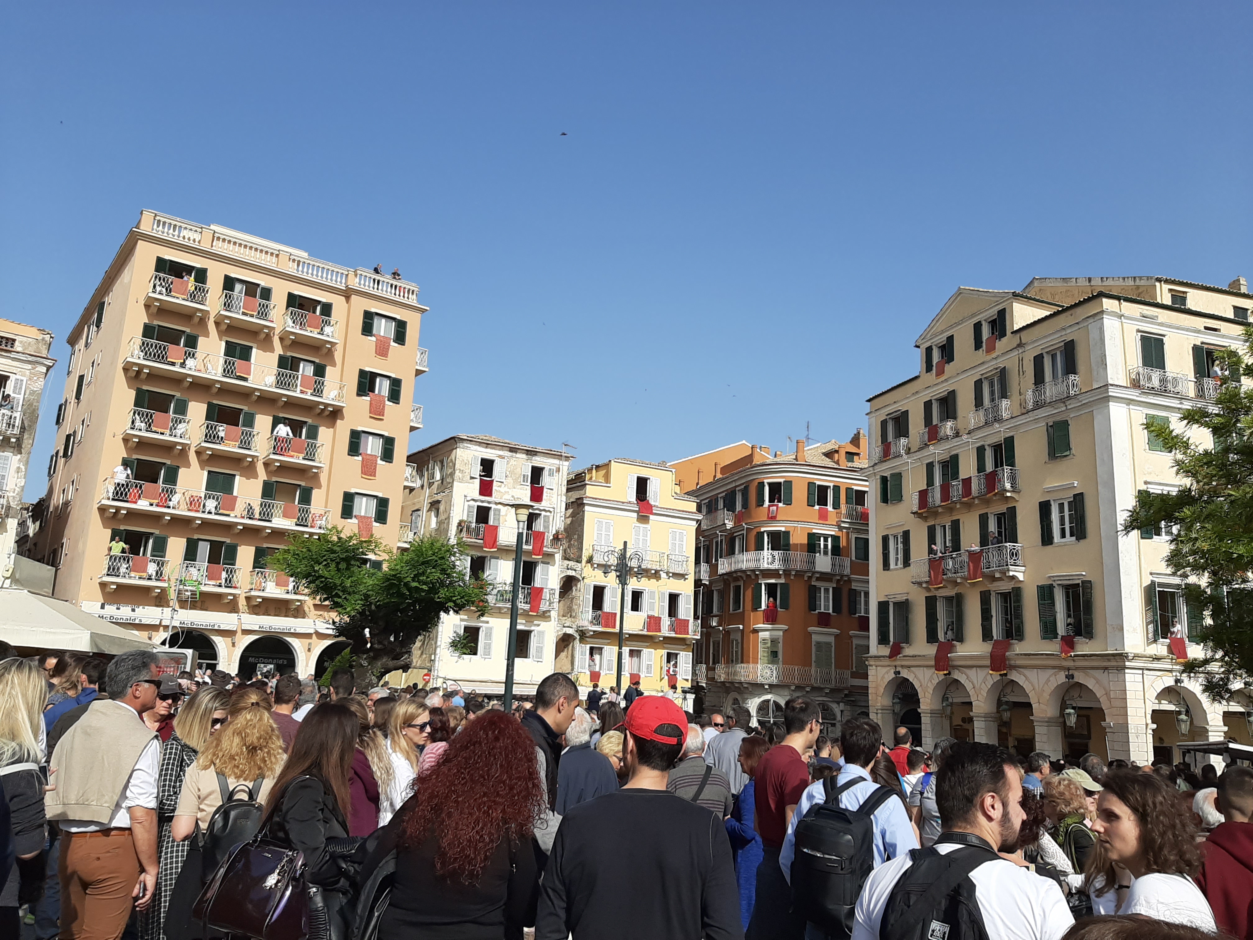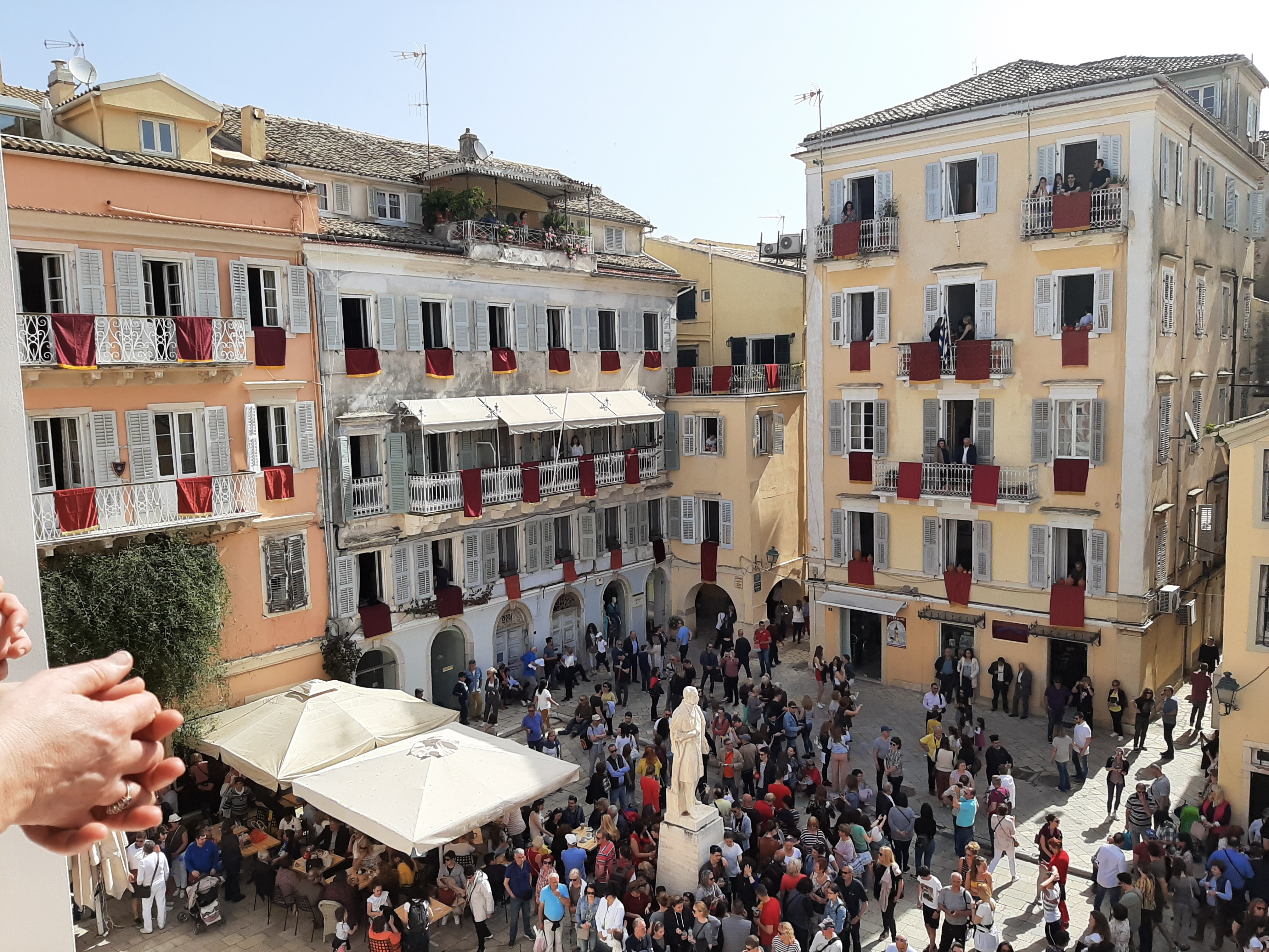 Στη συνέχεια ο συνάδελφος Λαμάκιας που έχει βαθιά γνώση των πολιτιστικών της Κέρκυρας μιας και έχει ο ίδιος ενεργή συμμετοχή, μας εξήγησε για τις τρεις φιλαρμονικές της Κέρκυρας – την Παλαιά, Καποδίστρια, Μάντζαρος – που παρά τις οικονομικές δυσκολίες συνεχίζουν να συντηρούνται με τεράστιες προσπάθειες από τους ανθρώπους του νησιού που έχει τεράστια πολιτιστική και μουσική παράδοση, να διατηρούν ένα εξαιρετικά υψηλό επίπεδο λόγω του πολύ αυστηρού πλαισίου λειτουργίας τους, αλλά και να… κονταροχτυπιούνται αφού η αντιπαλότητά τους αναμένει αναλλοίωτη με το πέρασμα των χρόνων! Μάλιστα, όπως μας εξήγησε ο συνάδελφος, θεωρείται αδιανόητο ένα μέλος της μίας φιλαρμονικής ορχήστρας να «πάρει μεταγραφή» για την άλλη! Ωστόσο εμάς σαν εξωτερικούς παρατηρητές δε μας επηρεάζουν αυτά και αντίθετα μας απέμενε να απολαύσουμε και τις τρεις φιλαρμονικές που έχουν όλες διακριθεί με μεγάλα διεθνή βραβεία και, όπως διαπιστώσαμε αργότερα, δίνουν πράγματι ένα καταπληκτικό μουσικό χρώμα σε όλες τις πασχαλινές εκδηλώσεις της Κέρκυρας!