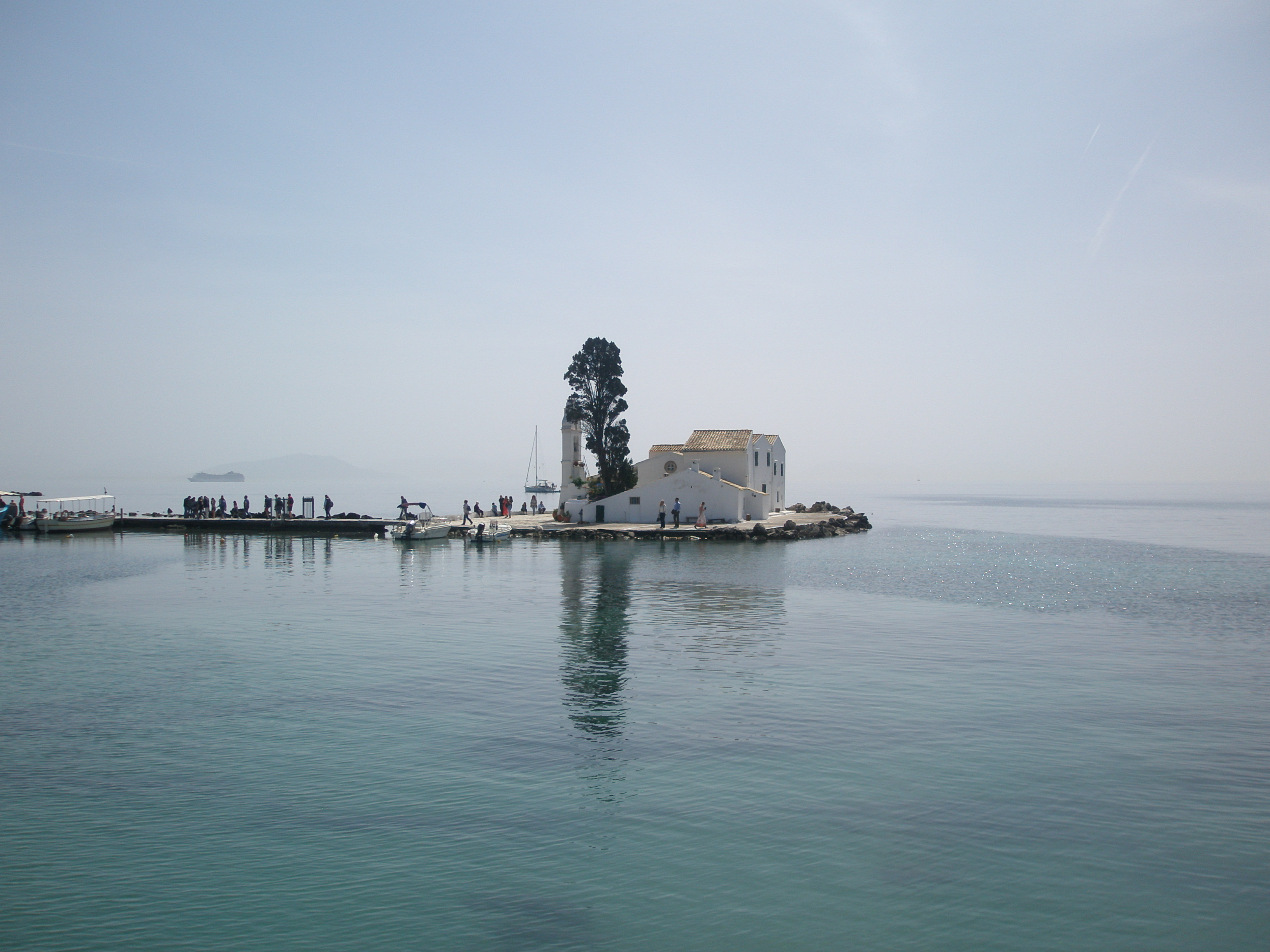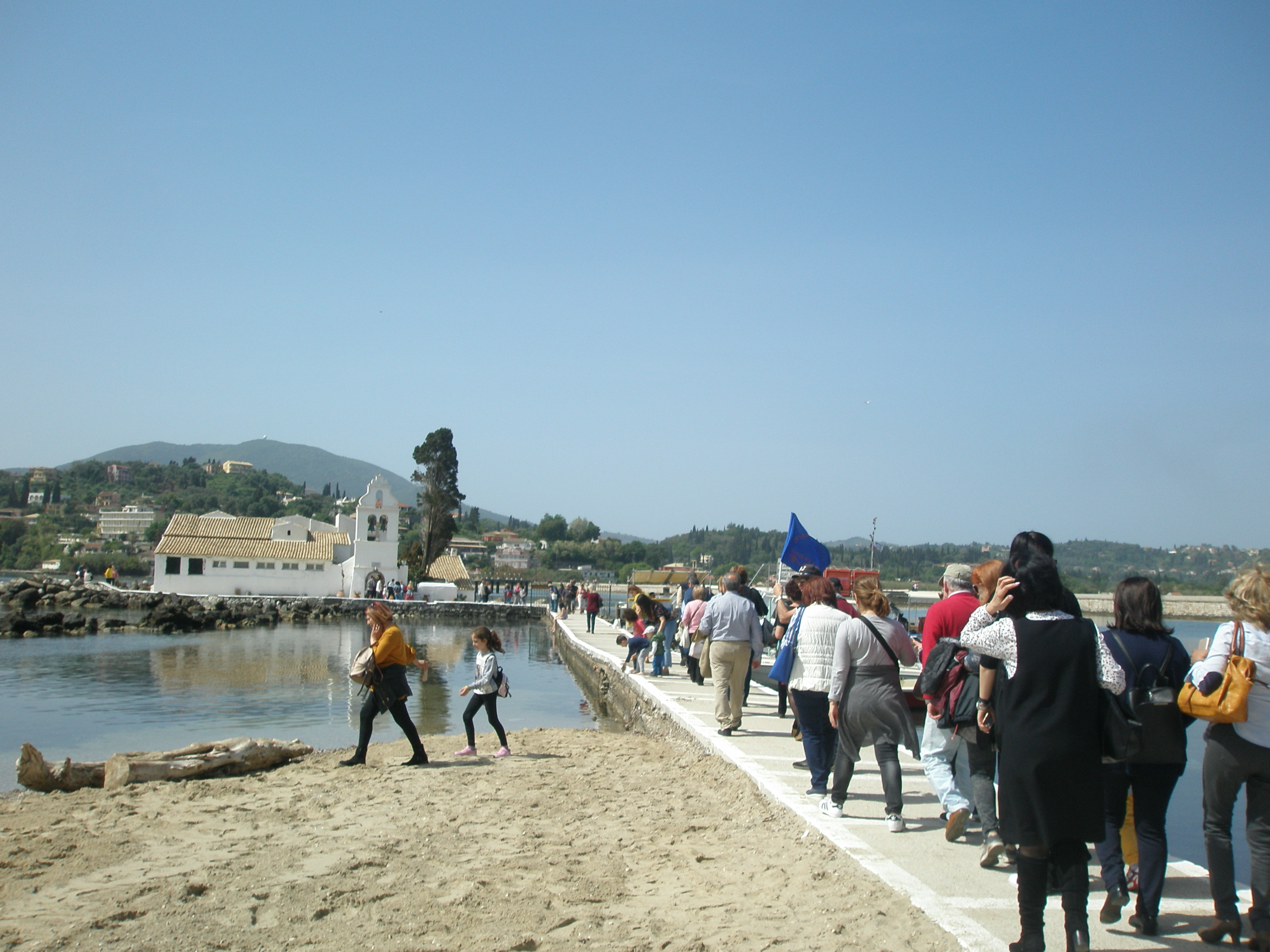 Μετά από αυτήν την πολύ όμορφη περιήγηση, κατευθυνθήκαμε στην Παναγία τη Βλαχέρνα και το ίσως πιο… πολυτραγουδισμένο μνημείο της Κέρκυρας, το διάσημο Ποντικονήσι. Η περιπλάνησή μας μοιραία προκάλεσε διάφορα σχόλια σχετικά με τις αξέχαστες ελληνικές ταινίες με πρωταγωνίστρια τη γυναίκα-σύμβολο της Κέρκυρας, την αείμνηστη Ρένα Βλαχοπούλου. Αφού βγάλαμε τις απαραίτητες αναμνηστικές φωτογραφίες μας, ανεβήκαμε τα σκαλοπάτια για να απολαύσουμε τη θέα που προσφέρει το Κανόνι και να πιούμε τον καφέ μας έχοντας το Ποντικονήσι και τη θάλασσα να απλώνονται στα πόδια μας.