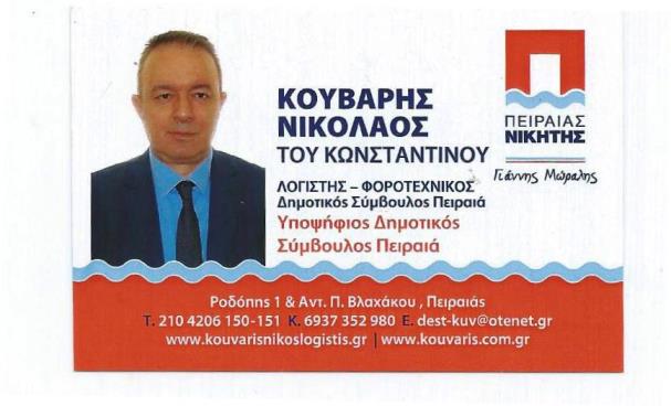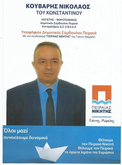 Είναι βέβαιο ότι ένας άνθρωπος με τις εμπειρίες και τις γνώσεις του Νίκου Κούβαρη μπορεί να συμβάλει στην ώθηση της οικονομίας και στη βελτίωση των συνθηκών διαβίωσης στην πόλη του Πειραιά.