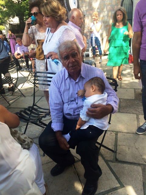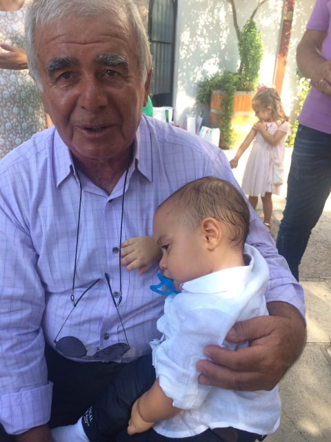 Ο ευτυχισμένος παππούς, συνάδελφός μας Τάσος Γεώργας, με τον “τιμώμενο” της τελετής, εγγονό του Ραφαήλ-Σταύρο