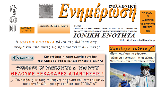 Ειδήσεις, ΕνημέρωσηΔιαβάστε το νέο τεύχος της εφημερίδας του Συλλόγου μας ! Σαράντος Φιλιππόπουλος10 Ιουνίου, 2020 10:23 Συνάδελφοι, κυκλοφόρησε το νέο τεύχος της εφημερίδας μας “Συλλογική Ενημέρωση” Φύλλο 74 . Καλό ταξίδι Γιώργο Αντίο Χρήστο
