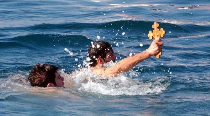 Σχεδόν αστραπιαία, όλοι τρέχουν προς τα εκεί, θα έλεγε κανείς «απωθώντας» ο ένας τον άλλον για να βρούνε το πολυπόθητο Ιερό Σύμβολο. Στα χαμένα όμως! Ο αγαθός γέροντας, βλέποντας αυτή την αγωνία και την ένταση στα πρόσωπα των παιδιών για να πιάσουν τον Σταυρό και το σεβασμό τους προς την Άγια αυτή Ημέρα, που αγιάζονται και φωτίζονται τα πάντα, θέλησε να δοκιμάσει την πίστη τους και επί πλέον ο ίδιος να διαπιστώσει, εάν όλοι τους, μπροστά στην Άγια αυτή Πράξη της Κατάδυσης, θεωρούν κατώτερης σημασίας την ταλαιπωρία τους μέσα στα παγωμένα νερά.