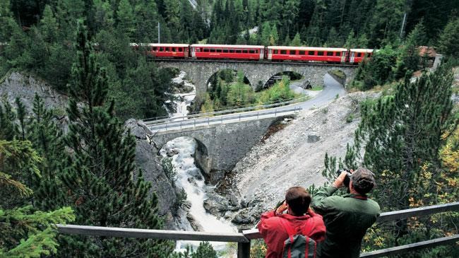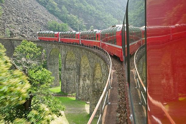 Με ταχύτητα μόλις 30 χιλιομέτρων την ώρα, διεκδικεί τον τίτλο της πιο αργής σιδηροδρομικής γραμμής της λίστας μας. Κι όμως, είναι βέβαιο πως κανένας από τους επιβάτες δεν θα ήθελε να ταξιδεύει πιο γρήγορα: σε αυτή τη διαδρομή από το Νταβός, στο St. Moritz και το ιταλικό Tirano, τον πρωταγωνιστικό ρόλο έχει το τοπίο. Δεν είναι τυχαίο άλλωστε ότι περιλαμβάνεται στη λίστα παγκόσμιας κληρονομιάς της Unesco. Το τρένο διασχίζει τις νότιες Άλπεις, περνάει 196 γέφυρες – μερικές από τις οποίες προκαλούν δέος – και 55 τούνελ ενώ η θέα από τα 2253 μέτρα είναι άκρως εντυπωσιακή. Υπολογίστε περίπου τέσσερις ώρες προς €42 η απλή διαδρομή.