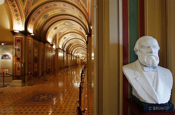 Η συγκλονιστική εισβολή των οπαδών του Τραμπ στο Καπιτώλιο των ΗΠΑ συντάραξε το αμερικανικό πολιτικό σύστημα και όλο τον κόσμο. Και αυτήν τη φορά ο Έλληνας πρωταγωνιστής της υπόθεσης δεν είχε να κάνει με τα ίδια τα γεγονότα, αλλά με την εξαίσια καλλιτεχνική του παρουσία που αποτυπώνεται και απλώνεται σε όλο το κτίριο του Καπιτωλίου, αφού ο ελληνικής καταγωγής Κωνσταντίνος Μπρουμίδης (1805-1880) είναι υπεύθυνος για τα περισσότερα, εκπληκτικά έργα τέχνης τα οποία κοσμούν το σύμβολο της αμερικανικής δημοκρατίας.