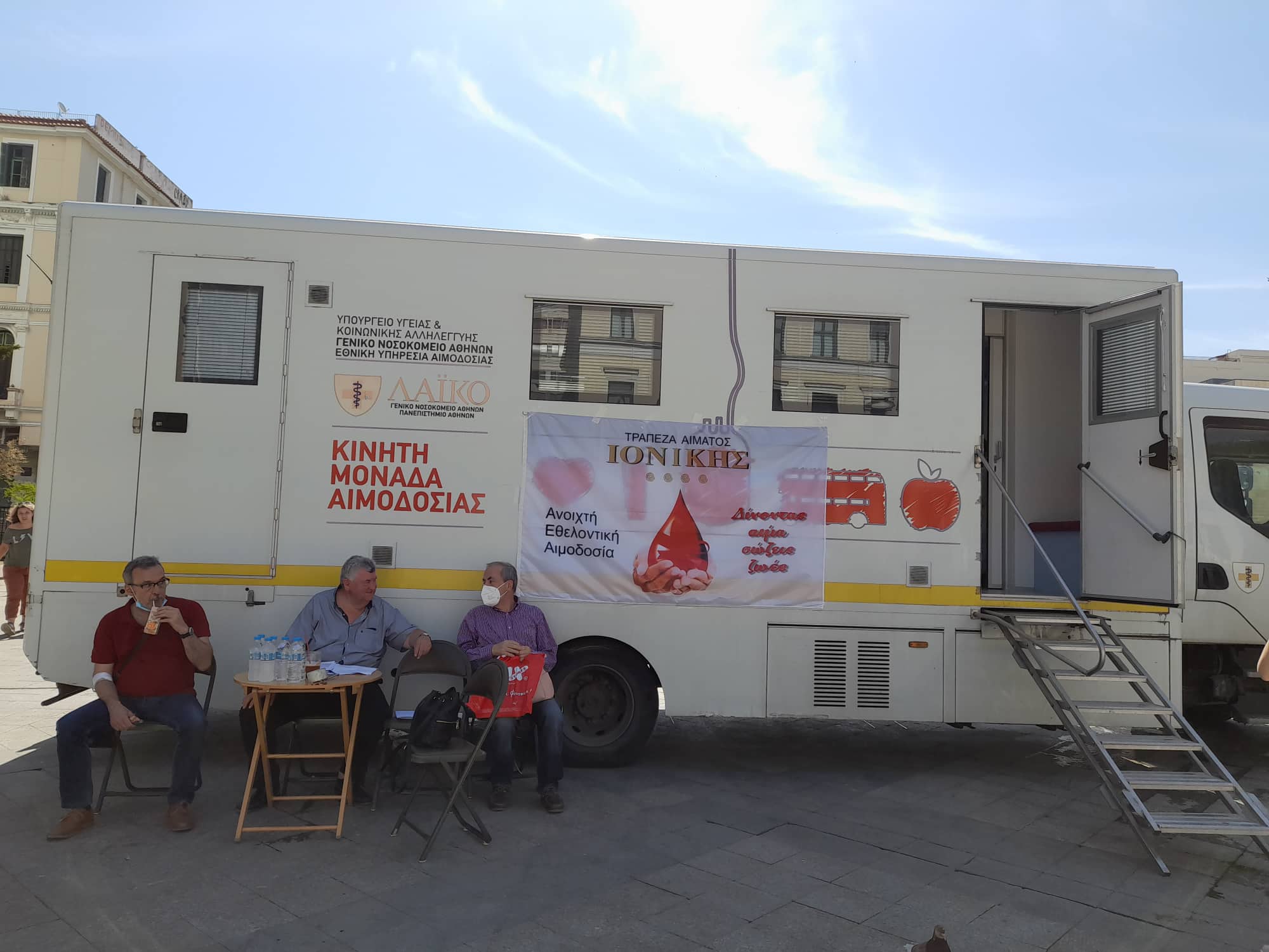 Την Τρίτη (31.5.22) η Τράπεζα Αίματος της Ιονικής διοργάνωσε την πρώτη ανοιχτή εθελοντική αιμοδοσία, κάτω από τα γραφεία των Συλλόγων μας στην πλατεία Κοτζιά, σε συνεργασία με την κινητή μονάδα του Γ.Ν.Α. Λαϊκού.