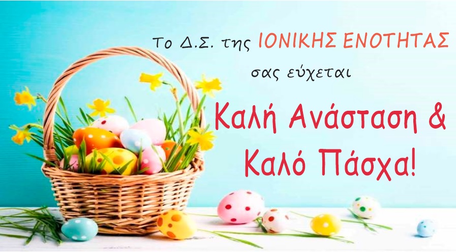 Ενημέρωση, ΚοινωνικάΤο Δ.Σ. της ΙΟΝΙΚΗΣ ΕΝΟΤΗΤΑΣ σας εύχεται Καλή Ανάσταση & Καλό Πάσχα ! Σαράντος Φιλιππόπουλος13 Απριλίου, 2023 11:43 Το Αναστάσιμο Φως να χαρίζει σε όλους Υγεία, Ελπίδα και Δύναμη! «Ιδού ο Νυμφίος έρχεται…» Πάθη, αμαρτίες και συγχώρεση στο πασχαλινό διήγημα