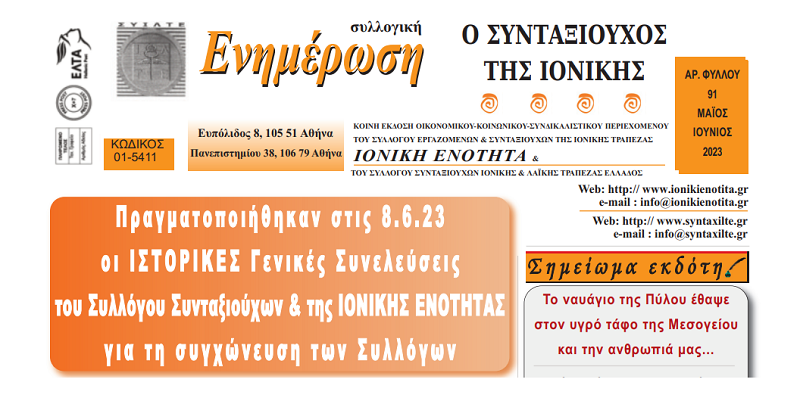 Ειδήσεις, Ειδήσεις ΣΥΙΛΤΕ, Ενημέρωση, ΣΥΙΛΤΕΔιαβάστε το νέο τεύχος της εφημερίδας μας ! Σαράντος Φιλιππόπουλος14 Ιουλίου, 2023 10:36 Συνάδελφοι, κυκλοφόρησε το νέο τεύχος της κοινής εφημερίδας της ΙΟΝΙΚΗΣ ΕΝΟΤΗΤΑΣ και του Συλλόγου Συνταξιούχων. Φύλλο 91 (πατήστε εδώ) ΥΣΤΑΤΗ επιστολή προς τους αρμοδίους για τη διευθέτηση χρονίζουσων εκκρεμοτήτων που ταλαιπωρούν τους συνταξιούχους συναδέλφους μας με αποκλειστική ευθύνη του e-ΕΦΚΑ – Επόμενο βήμα η δικαστική διεκδίκηση Καλό ταξίδι Νίκο
