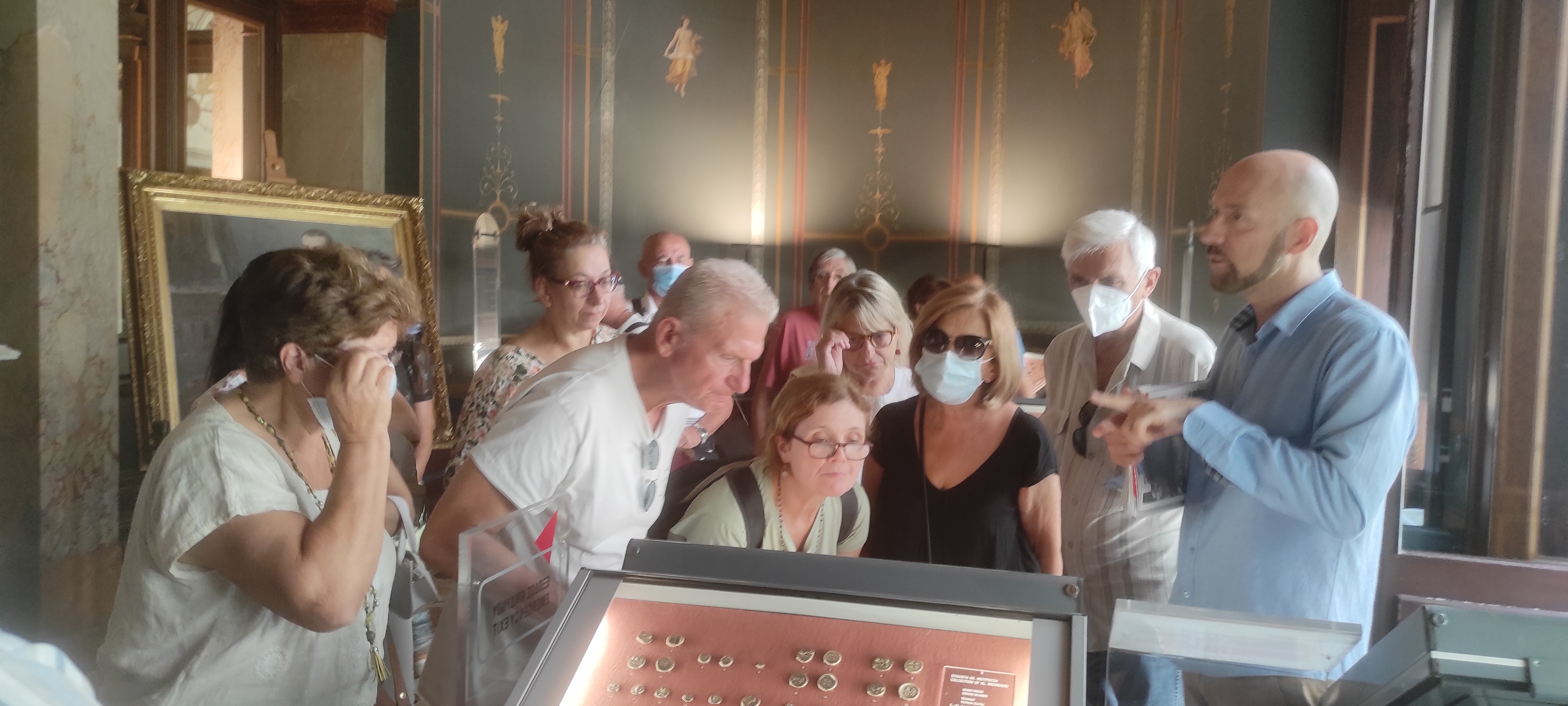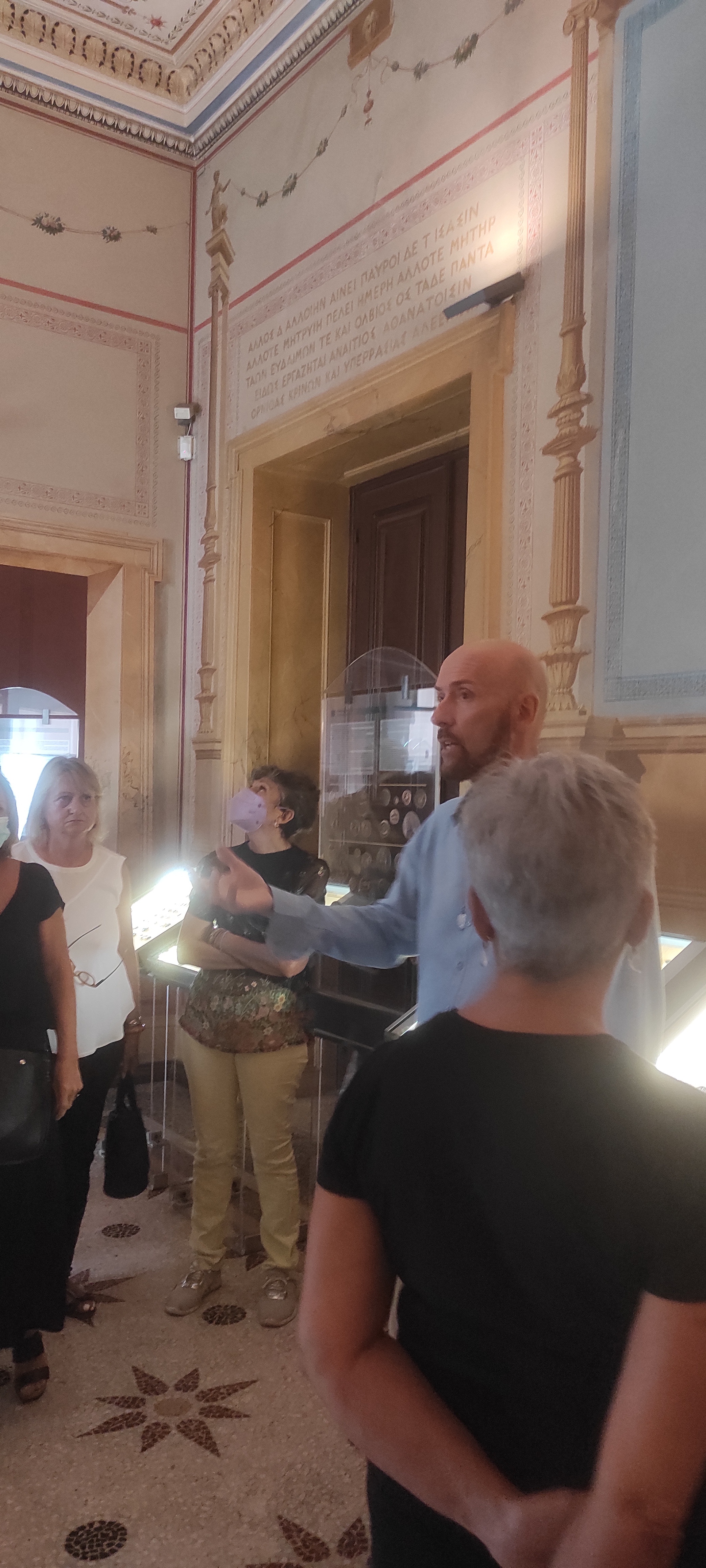 Η δίωρη ξενάγηση περιλάμβανε περιήγηση στη θαυμάσια ανακτορική οικία του Σλήμαν, αναφορά στο έργο του μεγάλου αρχιτέκτονα Τσίλλερ, ενώ βέβαια θαυμάσαμε τη νομισματική συλλογή του μουσείου με τα περισσότερα από 500.000 νομίσματα, μολυβδόβουλλα, σταθμία, μετάλλια και σφραγιδόλιθους, από τους αρχαίους χρόνους μέχρι σήμερα.