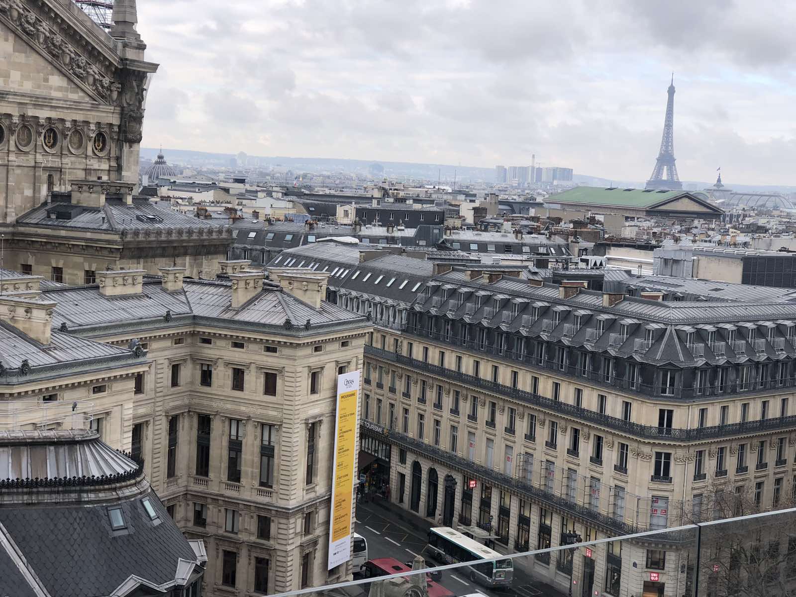 Αφού γεμίσαμε τις μπαταρίες μας με το πρωινό μας, ξεκινήσαμε να κατευθυνθούμε προς το κέντρο για τη δεύτερή μας μέρα στην πόλη του Φωτός που περιλάμβανε ορισμένα από τα πιο ενδιαφέροντα αξιοθέατα. Θαυμάσαμε την Όπερα και στη συνέχεια επισκεφθήκαμε το κεντρικό κτίριο του περίφημου πολυκαταστήματος Γκαλερί Λαφαγιέτ. Το ίδιο το κτίριο είναι ένα κομψοτέχνημα στο οποίο δεσπόζει ο τεράστιος Βιτρό θόλος, ενώ όλοι οι όροφοι είναι «»κεντημένοι» με μπρούντζο, γυαλί και ψηφιδωτά. Στα καταστήματα του Λαφαγιέτ βρίσκει κανείς πανάκριβα είδη πολυτελείας, τα οποία θαυμάσαμε… από μακριά και καταλήξαμε στην ταράτσα του κτιρίου, η οποία προσφέρει μία υπέροχη, πανοραμική θέα στο Παρίσι.