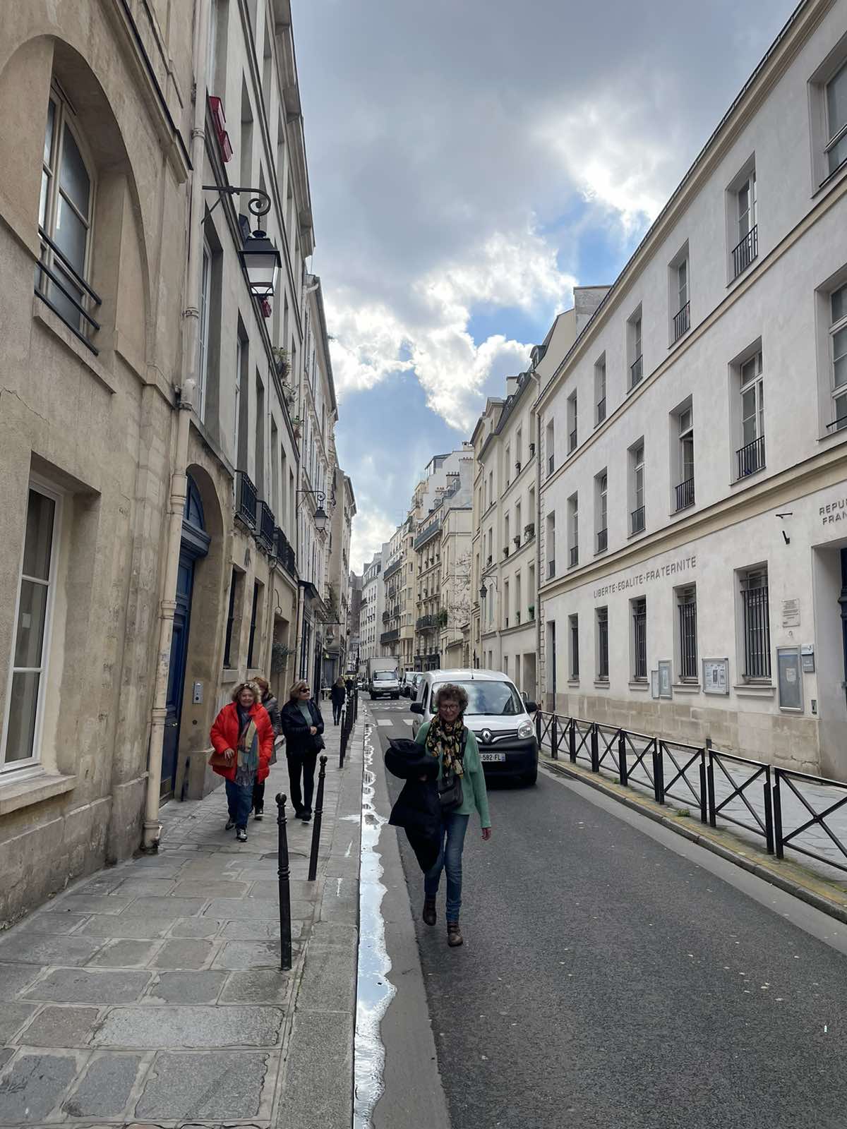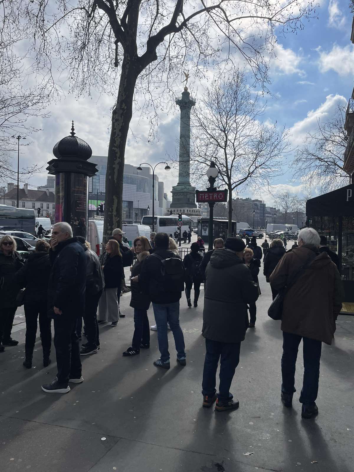Μετά από τις απαραίτητες φωτογραφίες, η ξεναγός μας μας παρέλαβε για να συνεχίσουμε το οδοιπορικό μας σε γειτονιές της πόλης. Περάσαμε από δρόμους με πανάκριβα μαγαζιά, αλλά και δρόμους ιστορικής σημασίας, επισκεφθήκαμε την πλατεία της Βαστίλλης, το σπίτι του Βίκτορ Ουγκό με το μοναδικό πάρκο που απλώνεται μπροστά του, την πλατεία του Δημαρχείου το οποίο στεγάζεται σε ένα υπέροχο κτίριο και η οποία πλέον έχει μετονομαστεί σε πλατεία απεργών γιατί εκεί είναι το επίκεντρο των διαδηλώσεων. Σειρά πήρε το Μουσείο Μοντέρνας Τέχνης Ζορζ Πομπιντού με την ιδιαίτερη αρχιτεκτονική του που δεσπόζουν ο μεταλλικός σκελετός του κτιρίου και οι διαφανείς ή έγχρωμοι σωλήνες που το περιβάλλουν.