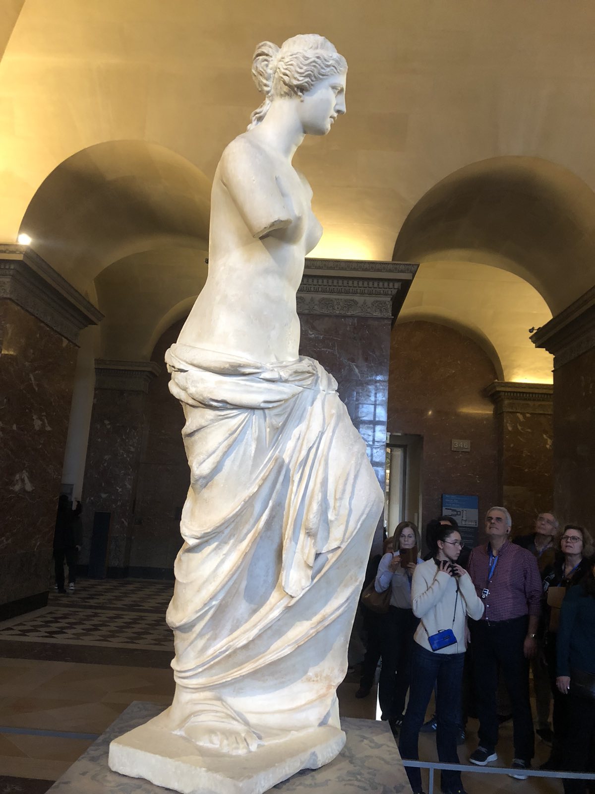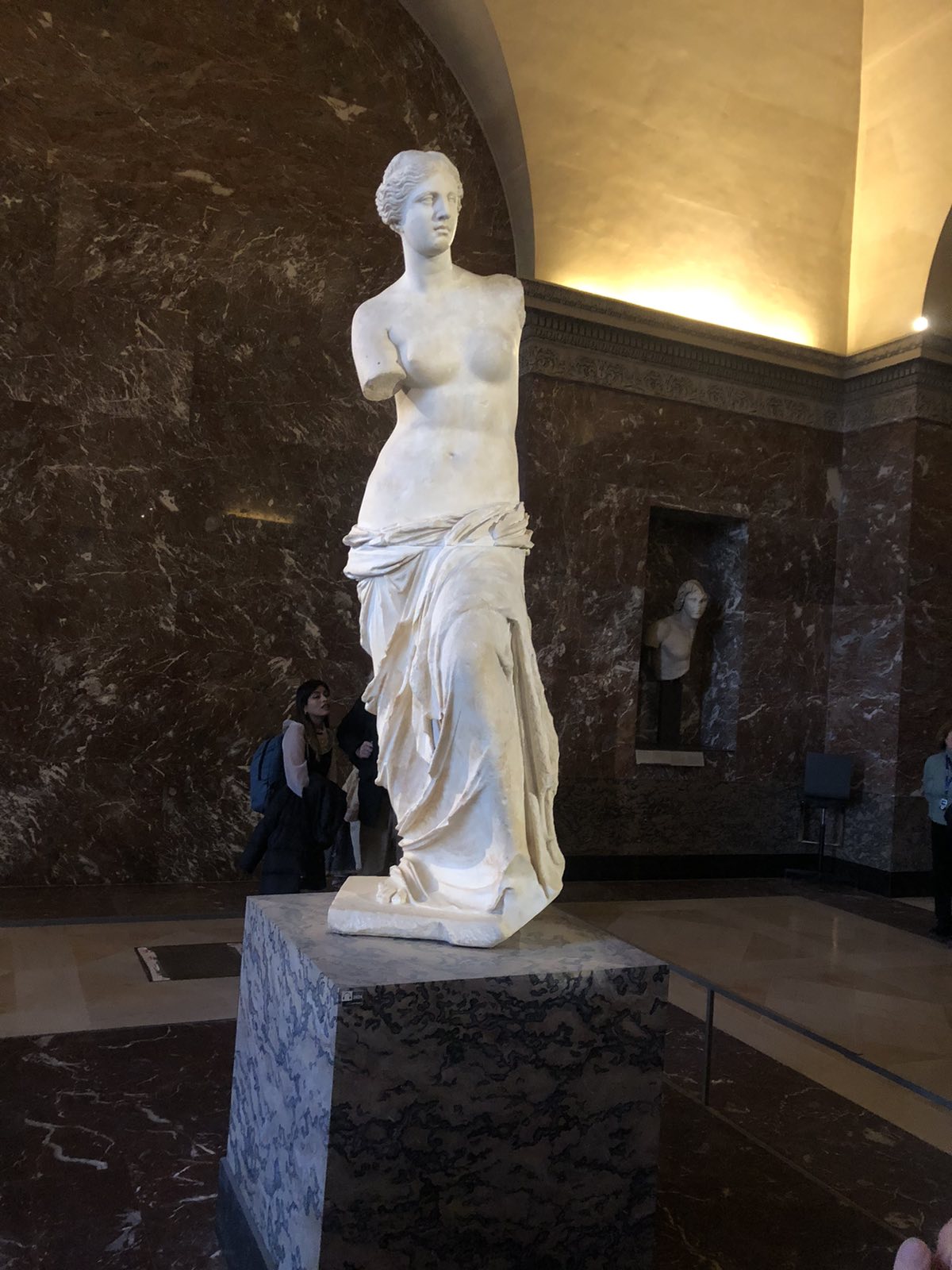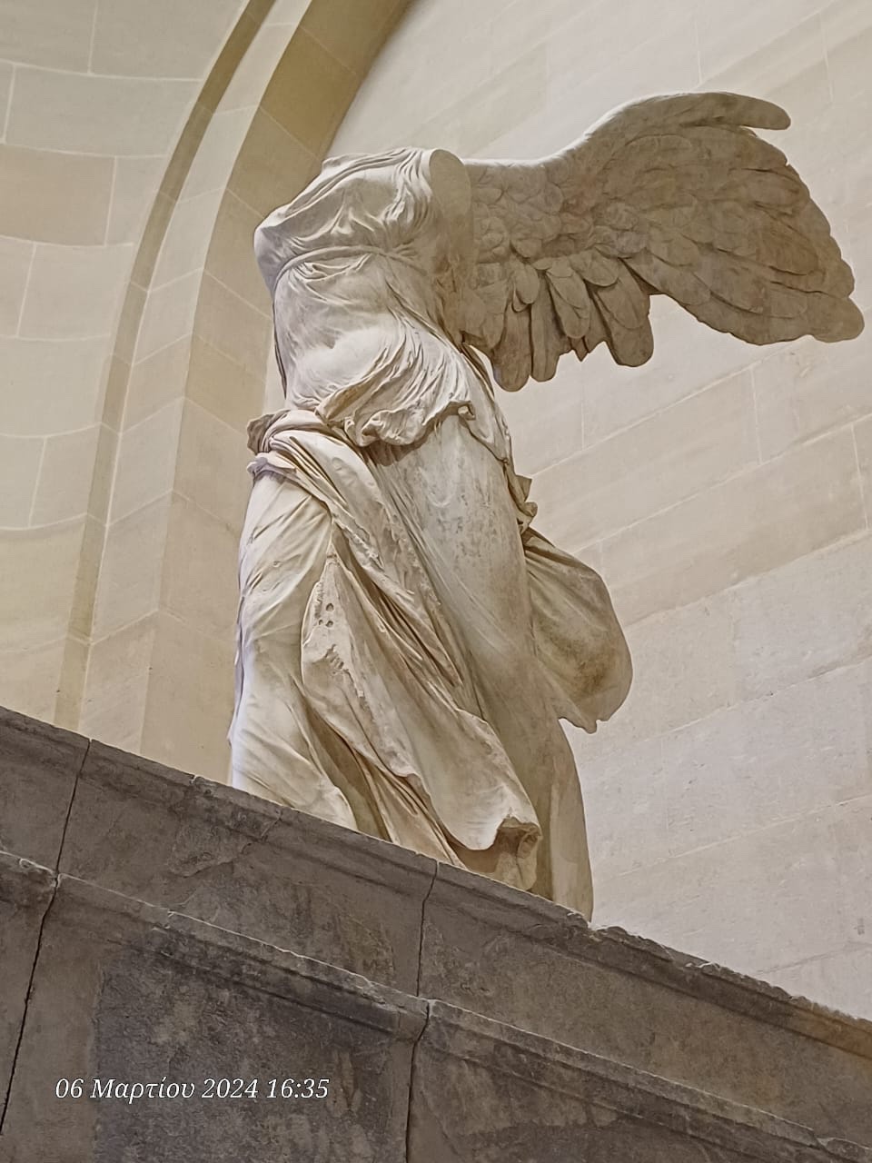 Αναφερόμαστε βέβαια στην Αφροδίτη της Μήλου, τη Νίκη της Σαμοθράκης και στην Τζοκόντα. Μάλιστα, αμέσως μόλις ανέβει τις σκάλες του Μουσείου ο επισκέπτης, αυτό που αντικρίζει πρώτα είναι το επιβλητικό άγαλμα της Νίκης της Σαμοθράκης με τα ανοιγμένα φτερά της να δεσπόζουν στο χώρο. Κυριολεκτικά μας έπιασε ρίγος και βεβαίως αφιερώσαμε αρκετό χρόνο στο έκθεμα αυτό για να το θαυμάσουμε και να φωτογραφηθούμε. Η δε Αφροδίτη της Μήλου έχει ουσιαστικά το δικό της ξεχωριστό δωμάτιο στο Μουσείο (συνοδεύεται μόνο από μία κεφαλή του Μεγάλου Αλεξάνδρου).