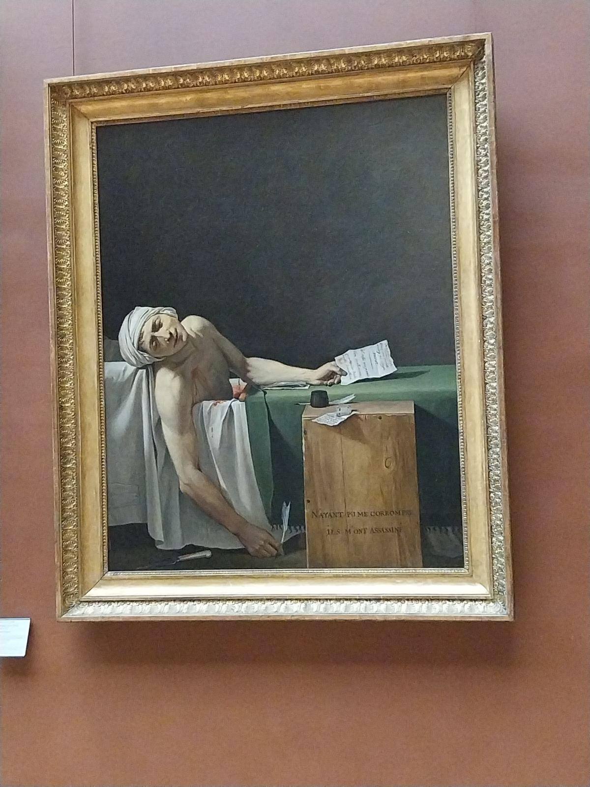 Επίσης, ένα υπέροχο έργο είναι και ο πίνακας του ίδιου ζωγράφου, «Ο θάνατος του Μαρά» που απεικονίζει με ανατριχιαστική λεπτομέρεια το νεκρό επαναστάτη Ζαν Πολ Μαρά μετά τη δολοφονία του.