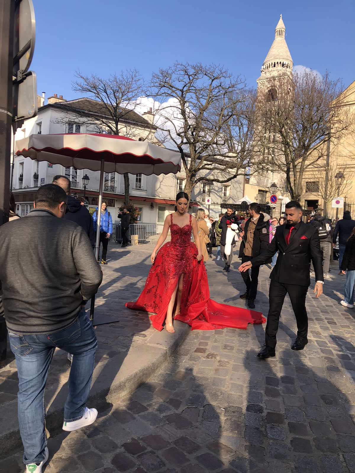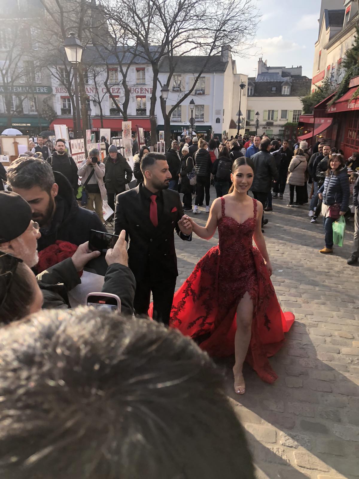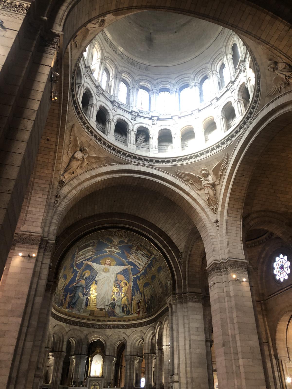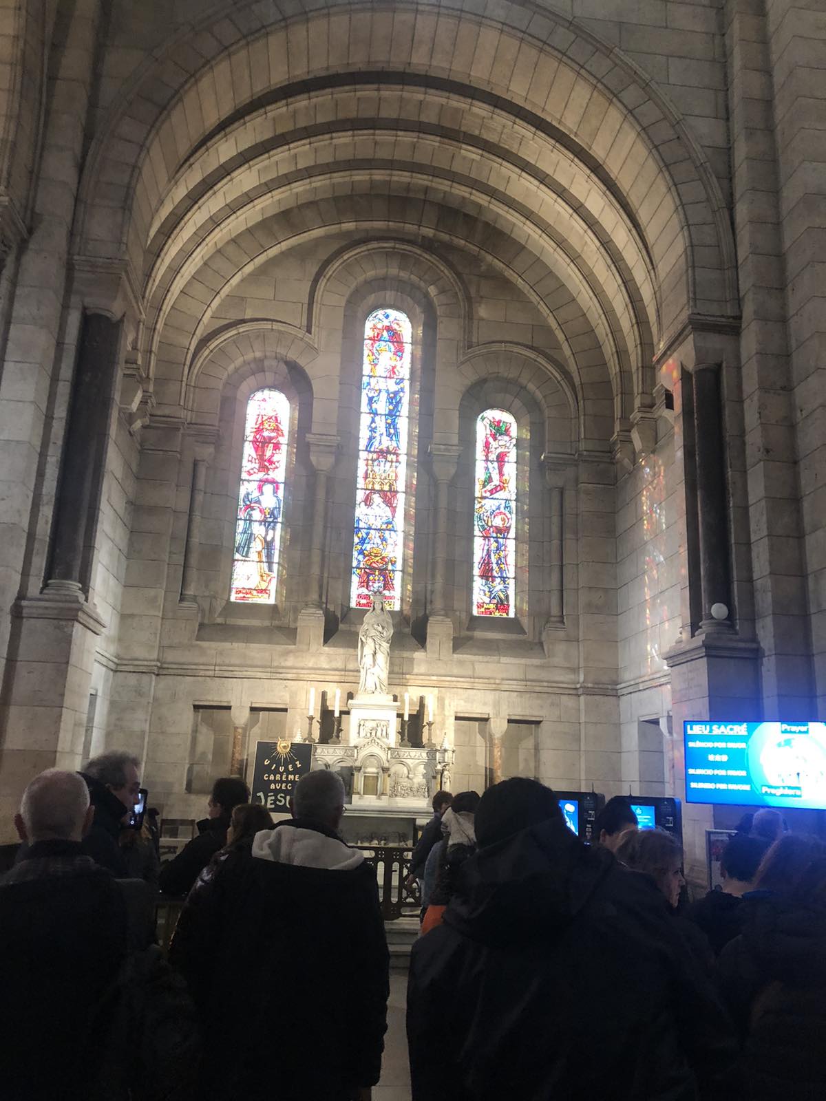 Είχε φτάσει όμως πια μεσημέρι και με το πούλμαν μας ξεκινήσαμε για την πλέον φημισμένη συνοικία του Παρισιού, τη γραφική Μονμάρτρη, η οποία ουσιαστικά απλώνεται στον ομώνυμο λόφο. Πήραμε το τελεφερίκ και αρχικά είδαμε την υπέροχη βασιλική της Σακρέ Κερ (της Ιερής Καρδιάς). Από το λόφο ψηλά αγναντέψαμε τη μοναδική θέα του Παρισιού και του Σηκουάνα. Αφού επισκεφθήκαμε την εκκλησία που αποτελεί η ίδια ένα έργο τέχνης με υπέροχες τοιχογραφίες, βιτρό κ.λπ., ξεκινήσαμε την περιήγησή μας στη συνοικία. Είναι μία πολύβουη γειτονιά, με «καλλιτεχνικό αέρα». Στην κεντρική πλατεία διάφοροι καλλιτέχνες εξέθεταν τα έργα τους, ενώ αρκετοί ζωγράφοι ήταν επί τω έργω. Πολύ όμορφα καφέ και μαγαζιά και βεβαίως… ξεχυθήκαμε όλοι να εφοδιαστούμε σουβενίρ για εμάς και τους αγαπημένους μας.