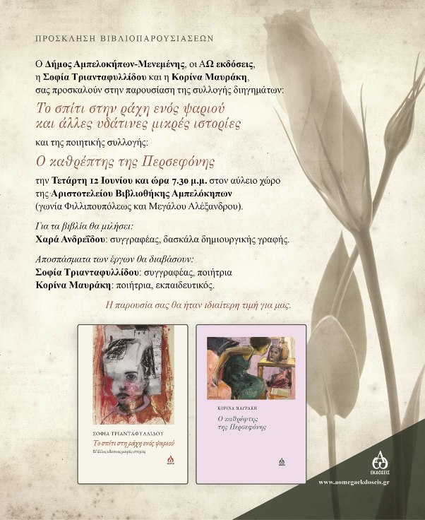 Μαζί με το έργο της Σοφίας, θα παρουσιαστεί και η ποιητική συλλογή «Ο καθρέφτης της Περσεφόνης» της Κορίνας Μαυράκη.
