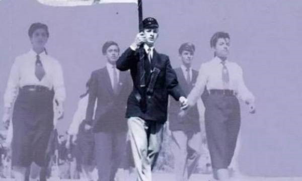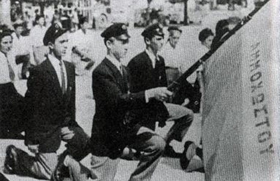 μπροστά στους πάνοπλους εγγλέζους, σημαιοφόρος άφοβος στην πύλη του σχολείου.