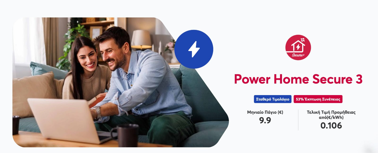 Το προϊόν Power Home Secure 3.0 απευθύνεται σε όλους τους οικιακούς καταναλωτές ηλεκτρικής ενέργειας, που επιθυμούν σταθερή και ξεκάθαρη τιμή ρεύματος με μοναδικές εκπτώσεις!