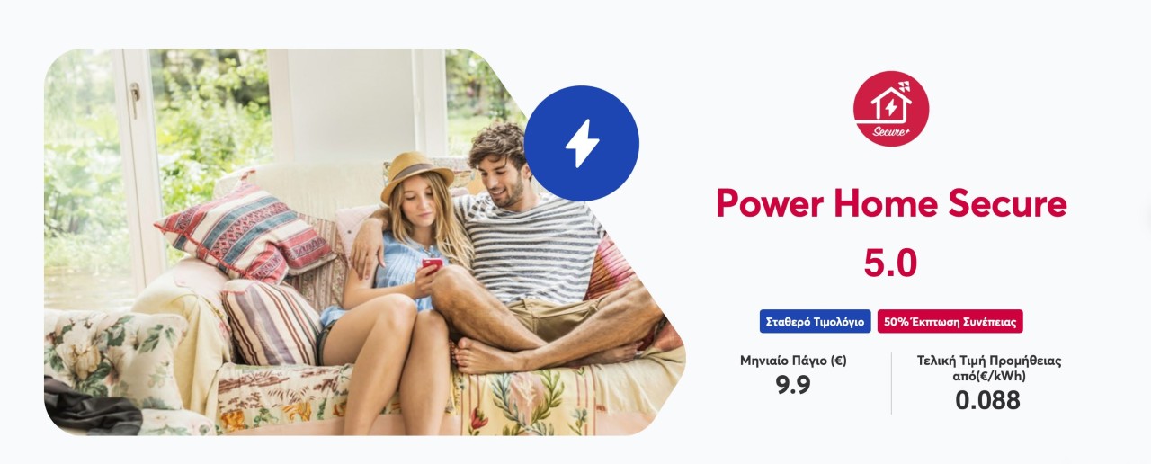 Το προϊόν Power Home Secure 5.0 απευθύνεται σε όλους τους οικιακούς καταναλωτές ηλεκτρικής ενέργειας, που επιθυμούν σταθερή και ξεκάθαρη τιμή ρεύματος με μοναδικές εκπτώσεις!