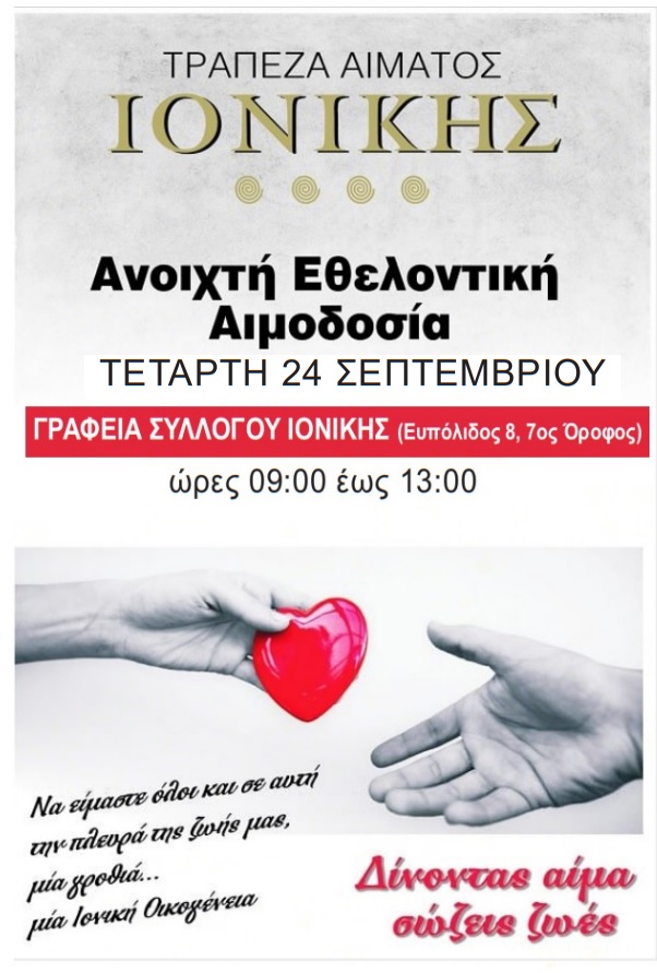ΟΛΟΙ ΣΤΗΝ ΕΘΕΛΟΝΤΙΚΗ ΑΙΜΟΔΟΣΙΑ ΤΗΣ ΙΟΝΙΚΗΣ