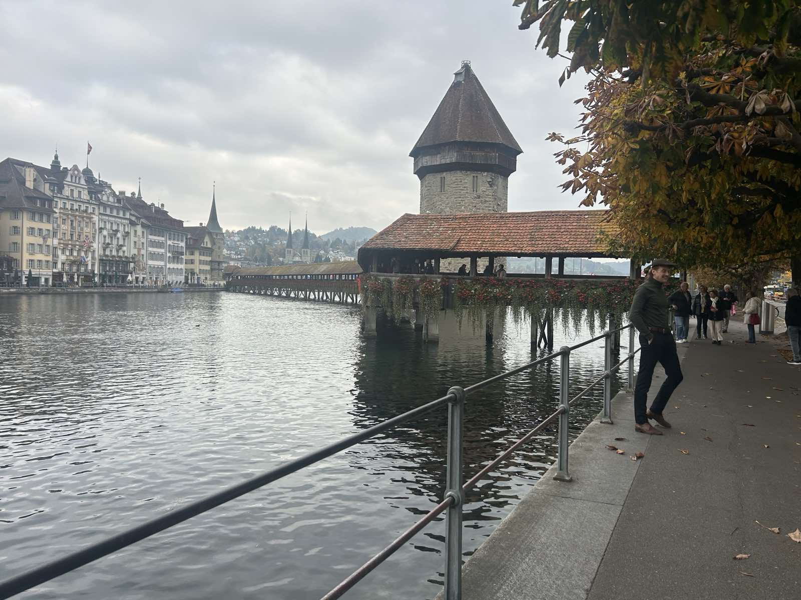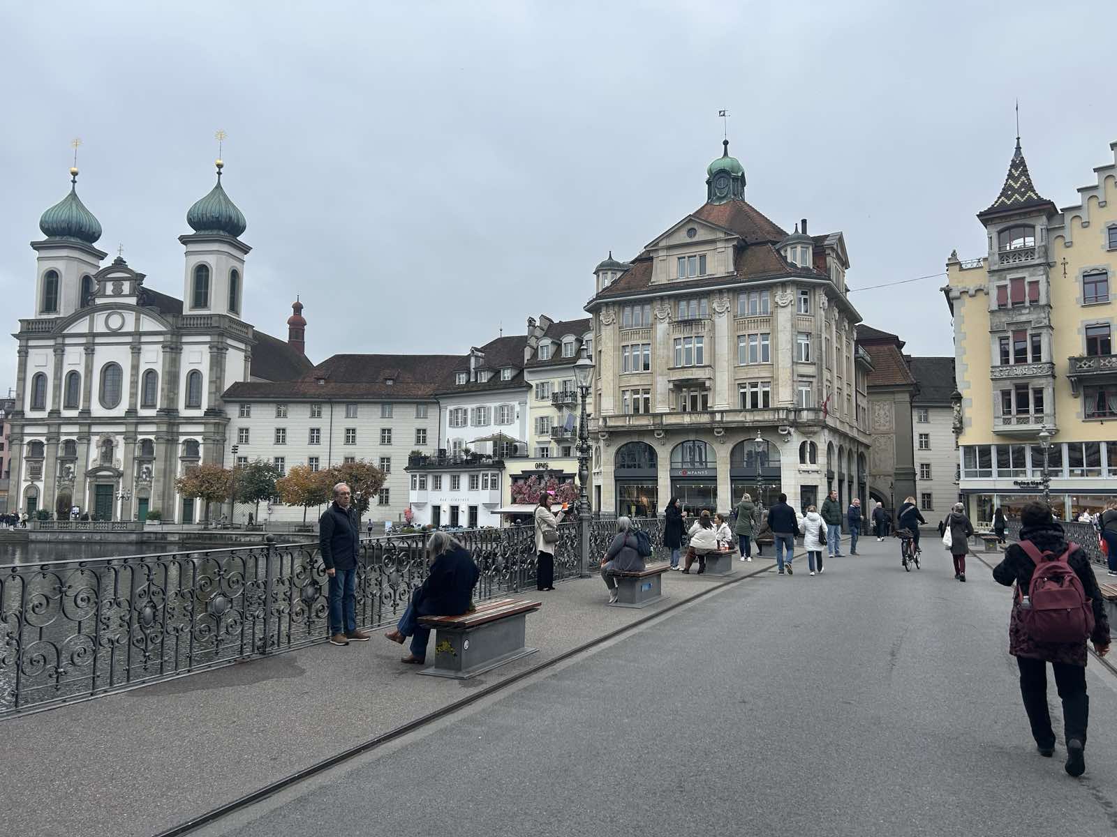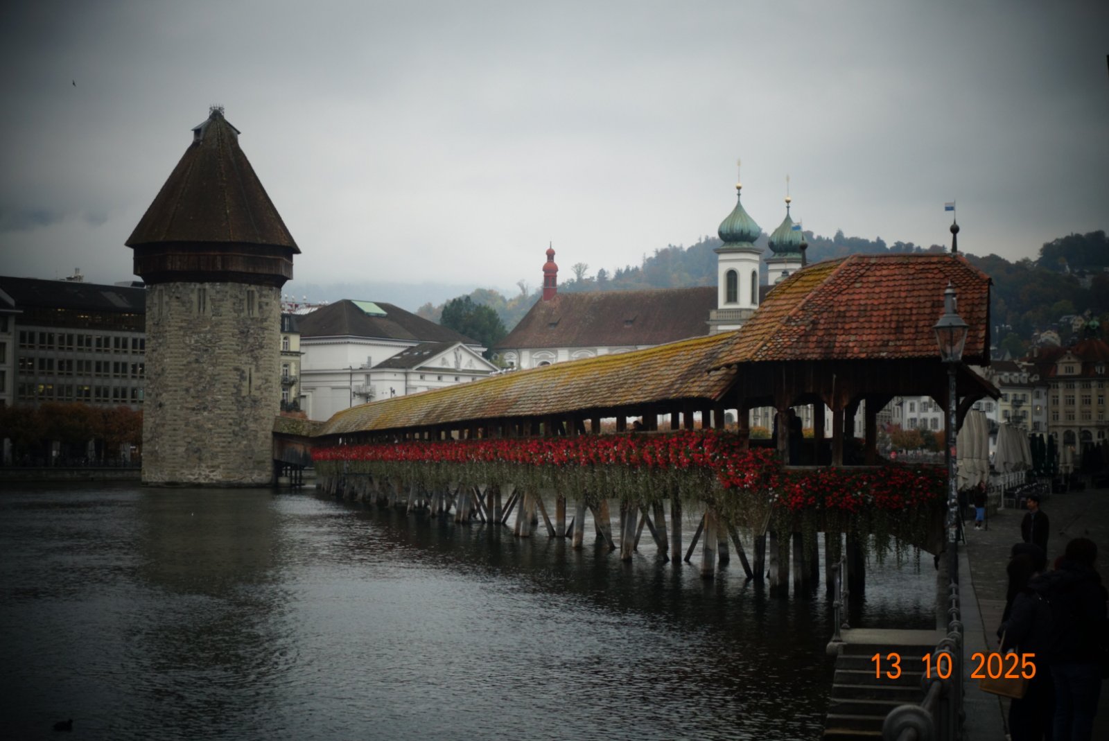 Το πρωί, μετά το πρωινό, μας περίμενε μια πραγματική έκπληξη: η Λουκέρνη απλωνόταν μπροστά μας σαν πόλη από παραμύθι. Οι ανθοστόλιστες γέφυρες, οι ζωγραφισμένες ξύλινες στέγες, η ήρεμη λίμνη και τα πυργόσπιτα συνθέτουν ένα μαγευτικό τοπίο. Επισκεφθήκαμε την περίφημη Κάπελμπρικε, τη σκεπαστή γέφυρα με τις ζωγραφισμένες σκηνές από την ιστορία της πόλης και φωτογραφηθήκαμε με φόντο τη λίμνη και τις κορυφές των Άλπεων.