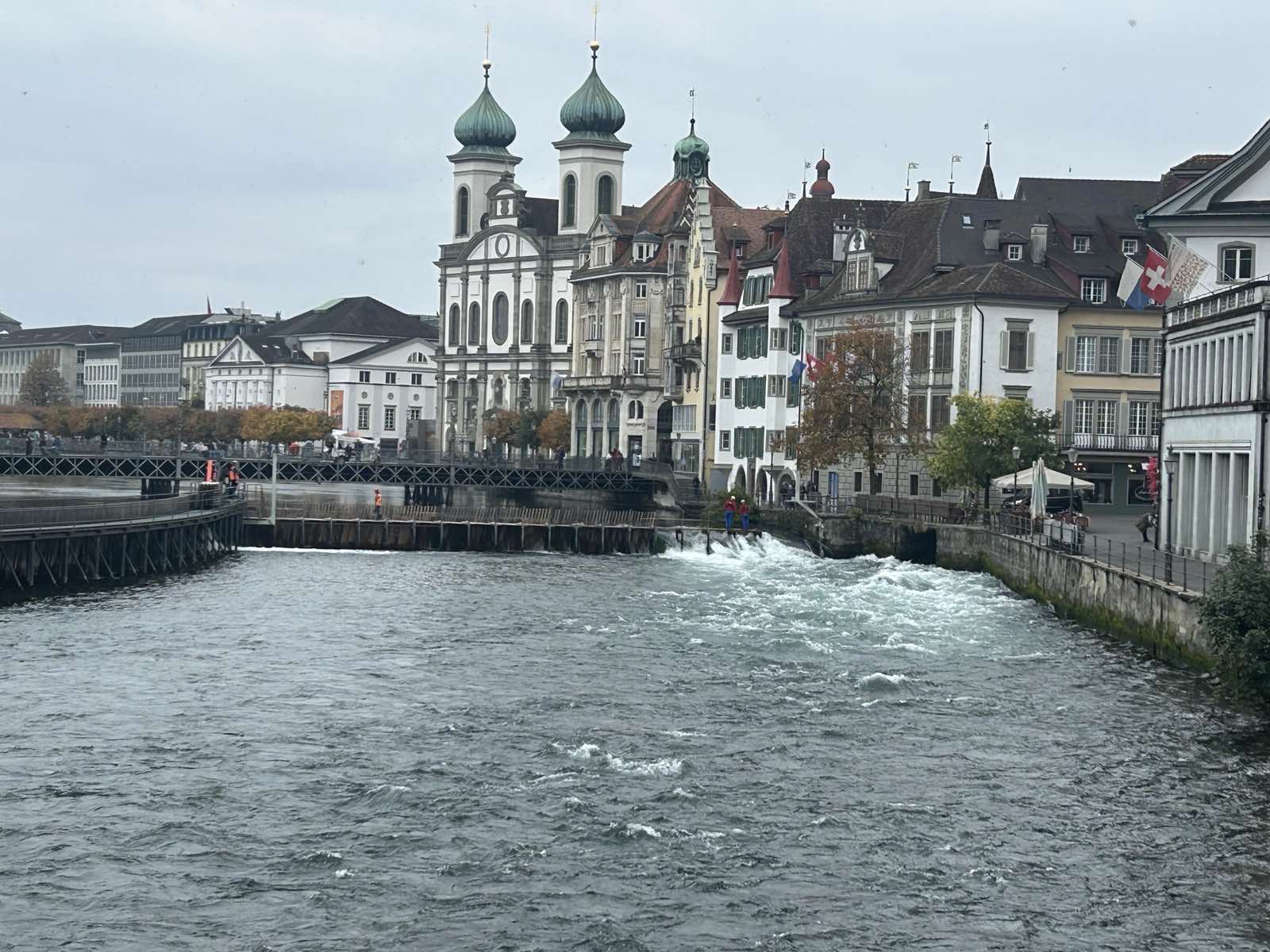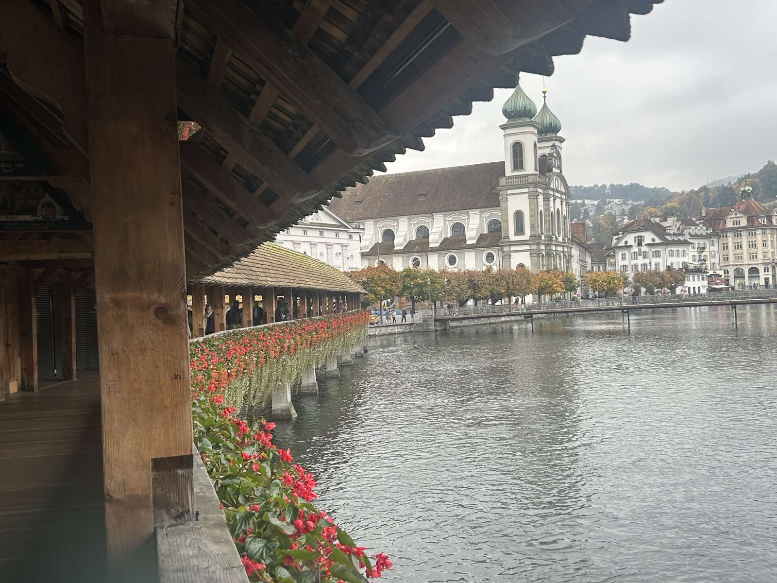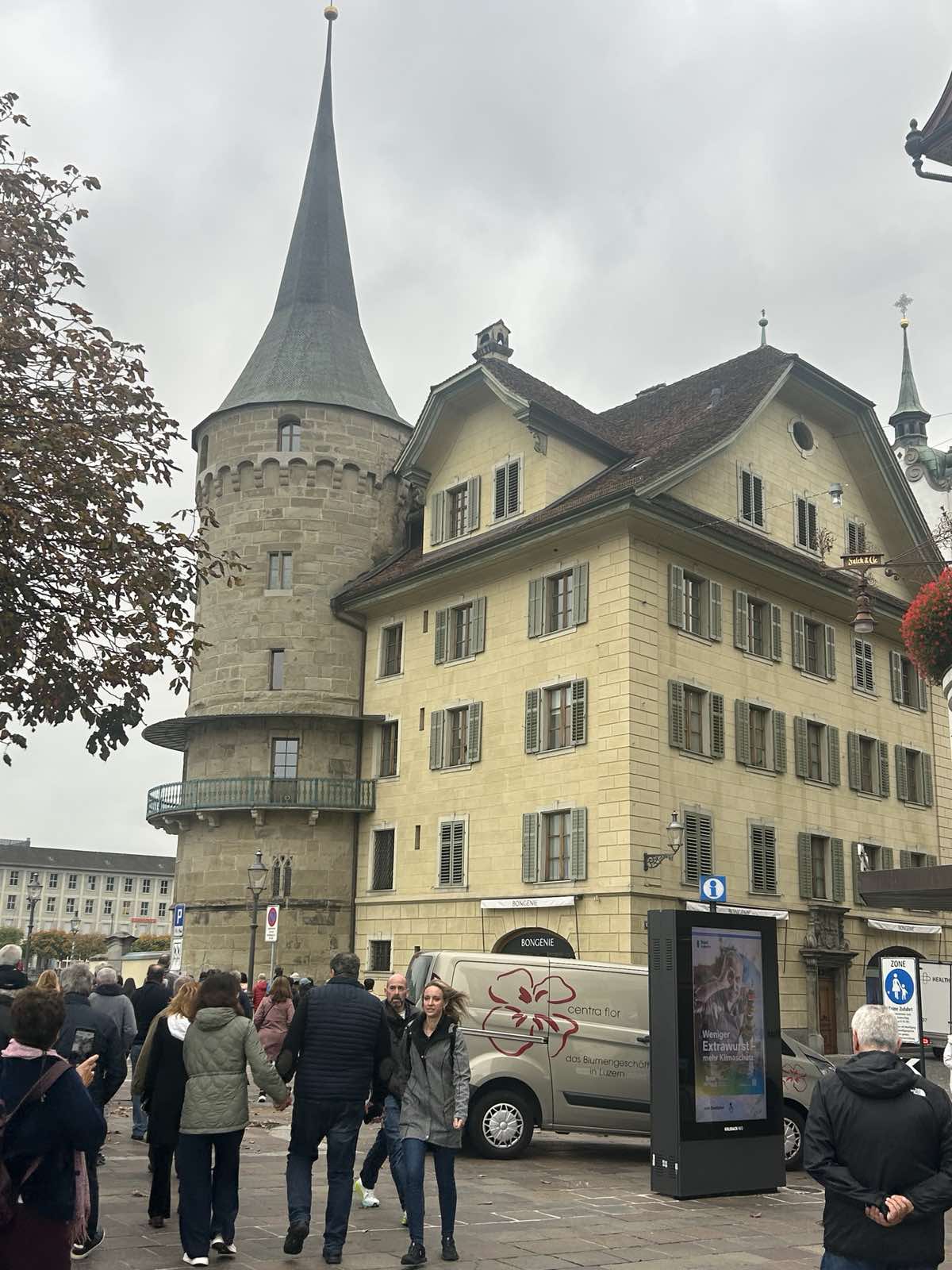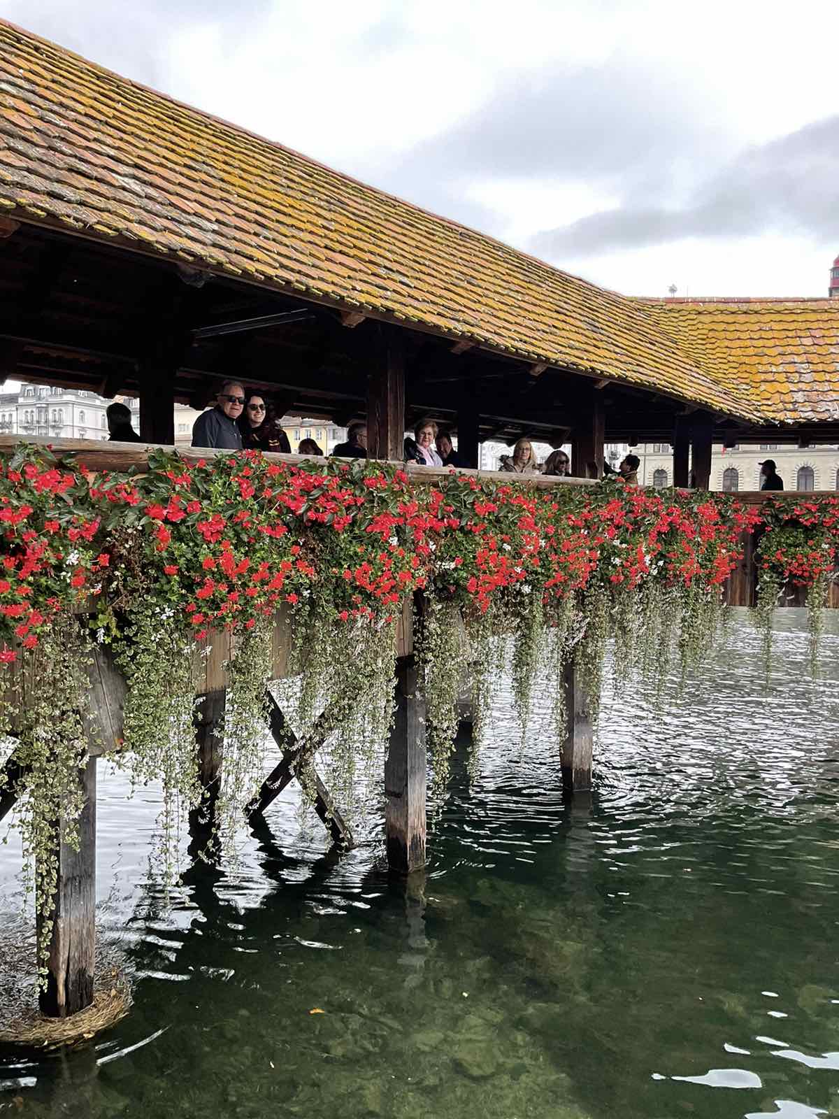 Το πρωί, μετά το πρωινό, μας περίμενε μια πραγματική έκπληξη: η Λουκέρνη απλωνόταν μπροστά μας σαν πόλη από παραμύθι. Οι ανθοστόλιστες γέφυρες, οι ζωγραφισμένες ξύλινες στέγες, η ήρεμη λίμνη και τα πυργόσπιτα συνθέτουν ένα μαγευτικό τοπίο. Επισκεφθήκαμε την περίφημη Κάπελμπρικε, τη σκεπαστή γέφυρα με τις ζωγραφισμένες σκηνές από την ιστορία της πόλης και φωτογραφηθήκαμε με φόντο τη λίμνη και τις κορυφές των Άλπεων.